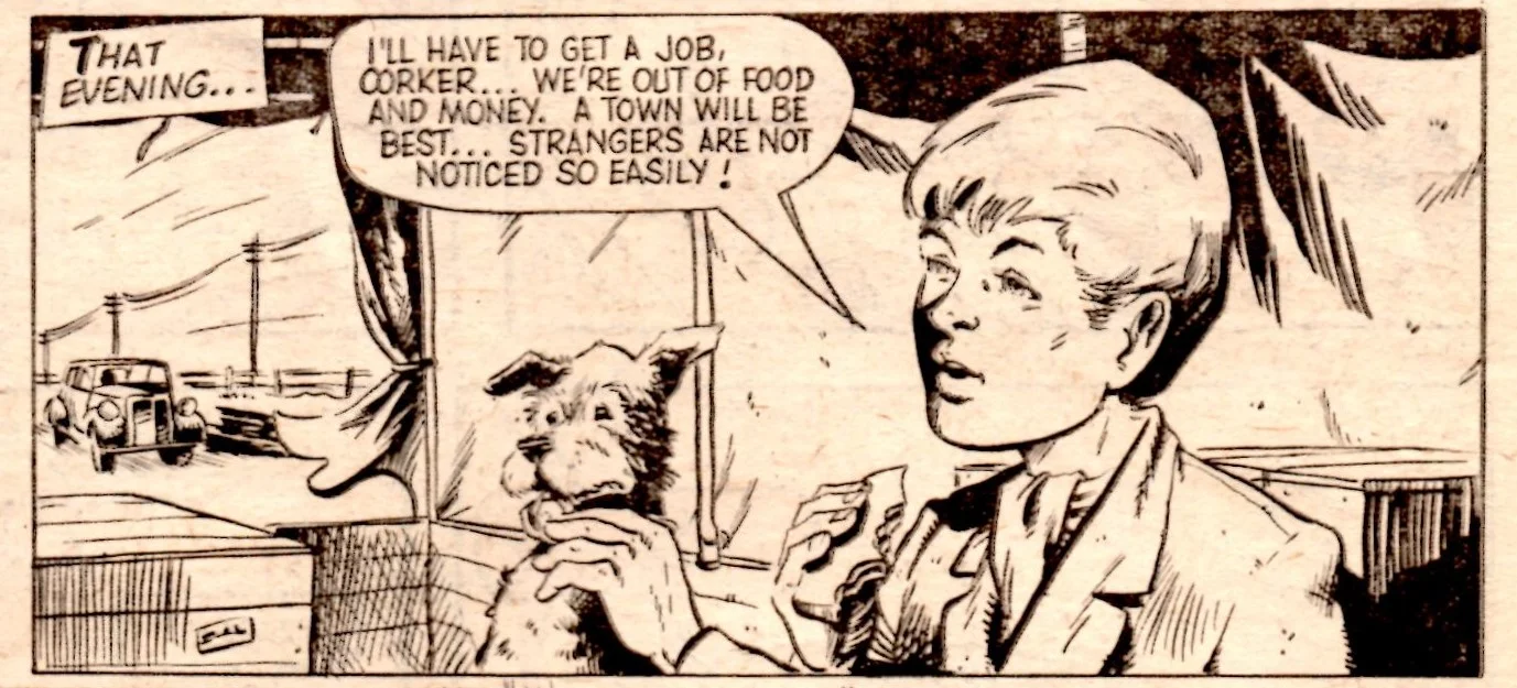 The contents of The Mystery Comic were fairly regular fare. The first story, Tub, about an obese boy, is as awkward to read today as Lily Pop and Gunga Jim. Why, Dad, Why? was about a lad who constantly asked his long-suffering, short-fused dad to explain everything. The Mystery Comic had its own adventure serial – Mystery Boy – which followed the travels across 1940 Britain, in search of his identity, of a young boy who had lost his memory when a crashing German bomber fell into the train in which he was evacuating London.