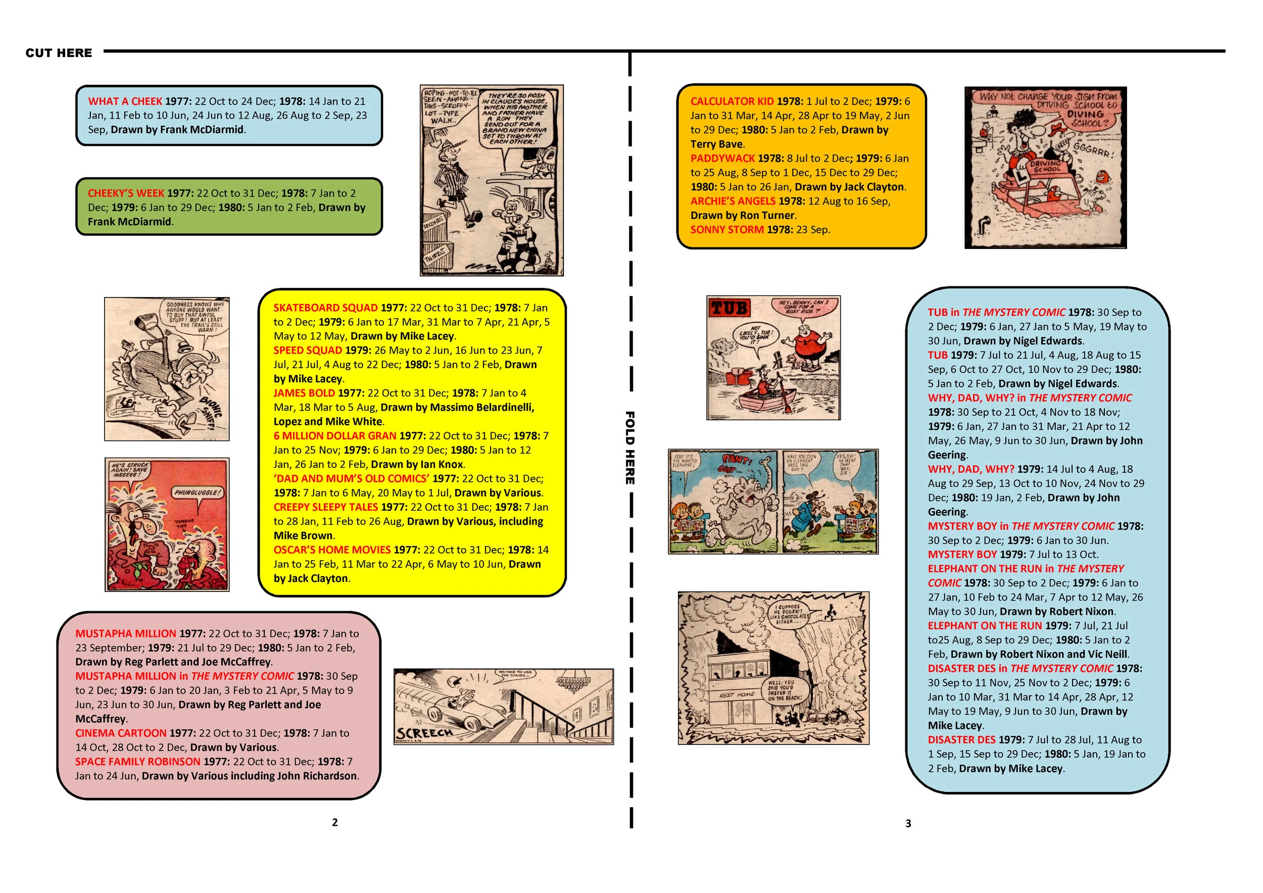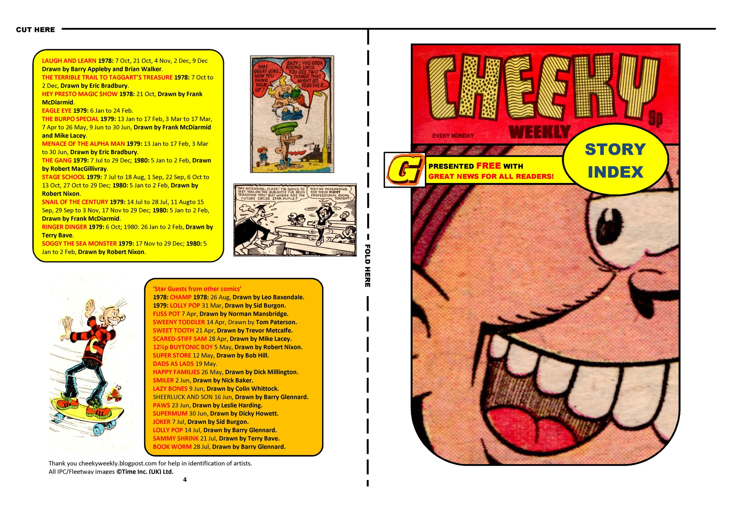 It's time for another FREE GIFT! This week it's your very own cut-out-and-keep Cheeky Story Index. Just cut along the horizontal line and fold along the vertical line, pals! You can download it and print it off to start your very own Great News For All Readers! story index library here.