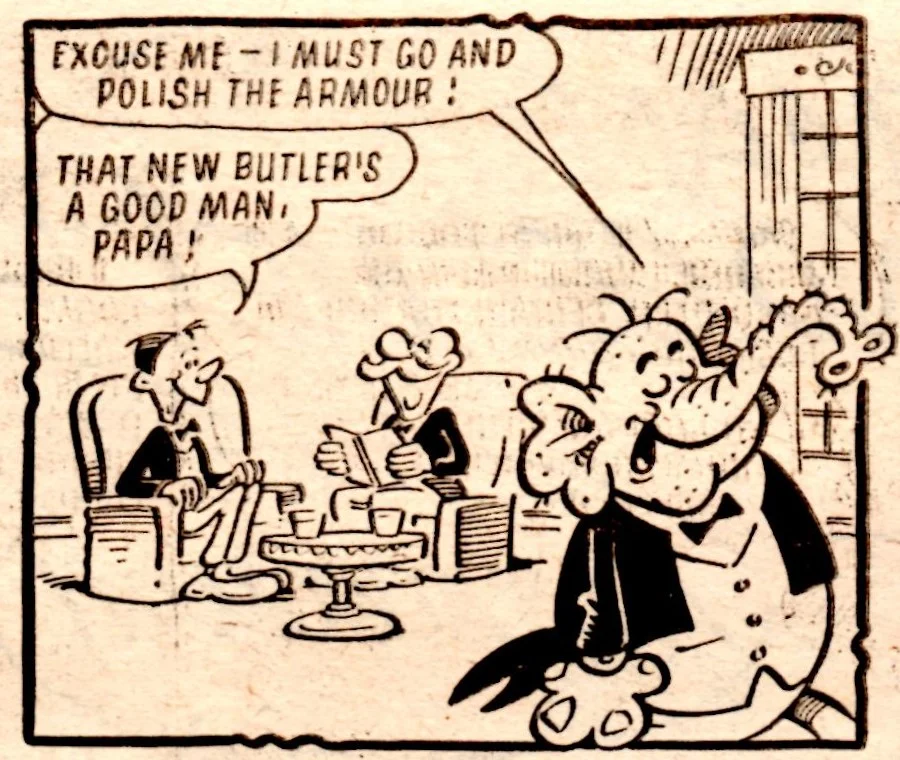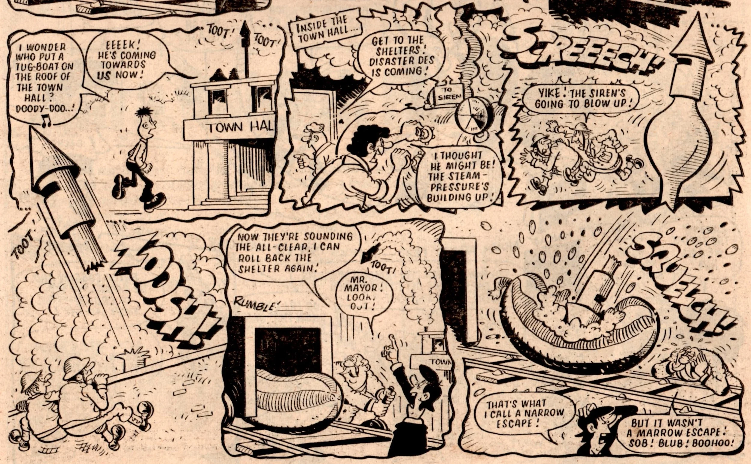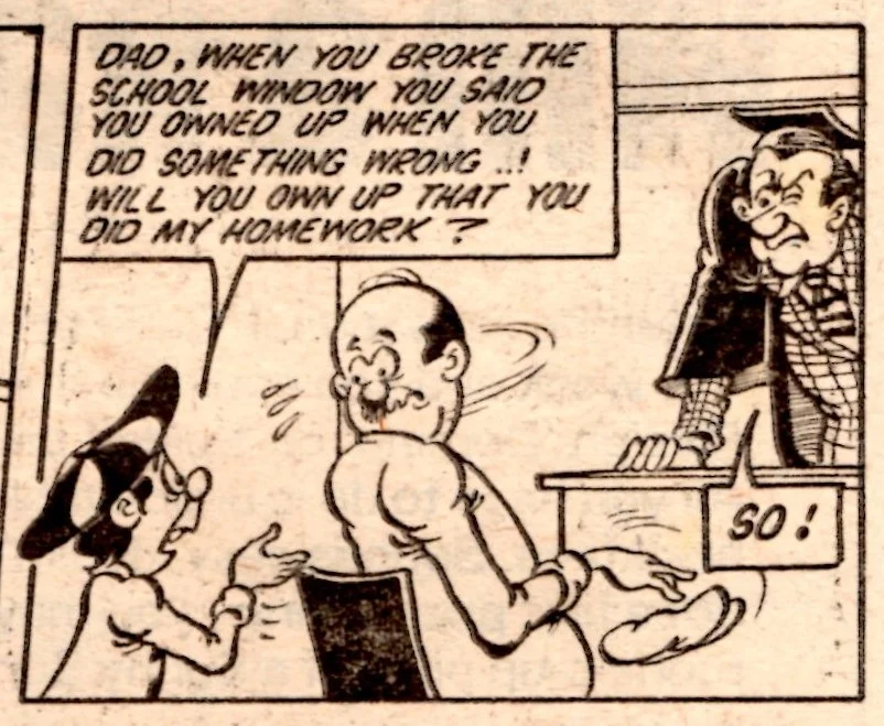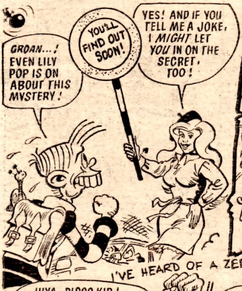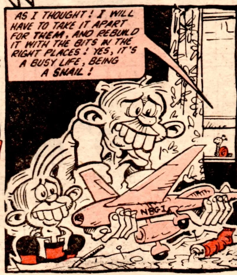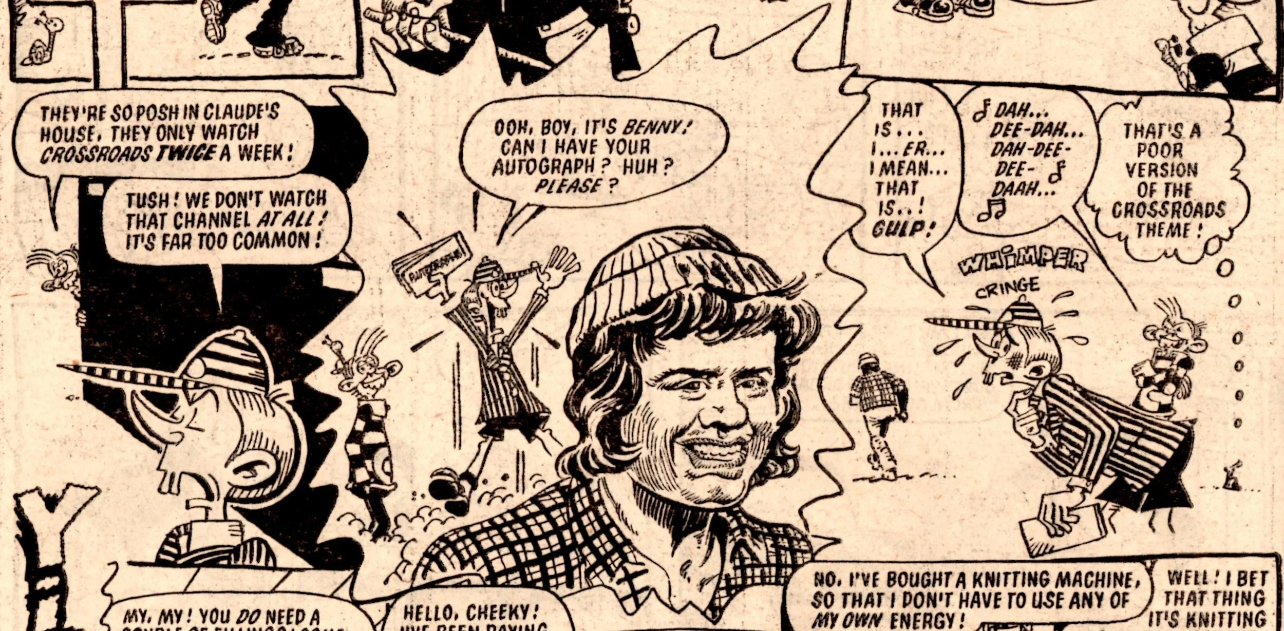 On this day, 2 February 1980 … the tombstone-teethtastic Cheeky was extracted from newsagents’ shelves for the final time, as the world’s most gregarious paperboy prepared to be merged into Whoopee! Cheeky never liked to do things as other comics would do, and so this is the most unusual of all pre-merger issues. There is something quite haunting about the way Cheeky is trolled about his impending fate – from the front cover through a number of interior pages to the final double-page reveal at the end – by mysterious sign-brandishing hands and even a number of his fellow regular characters who have all discovered the news before him.