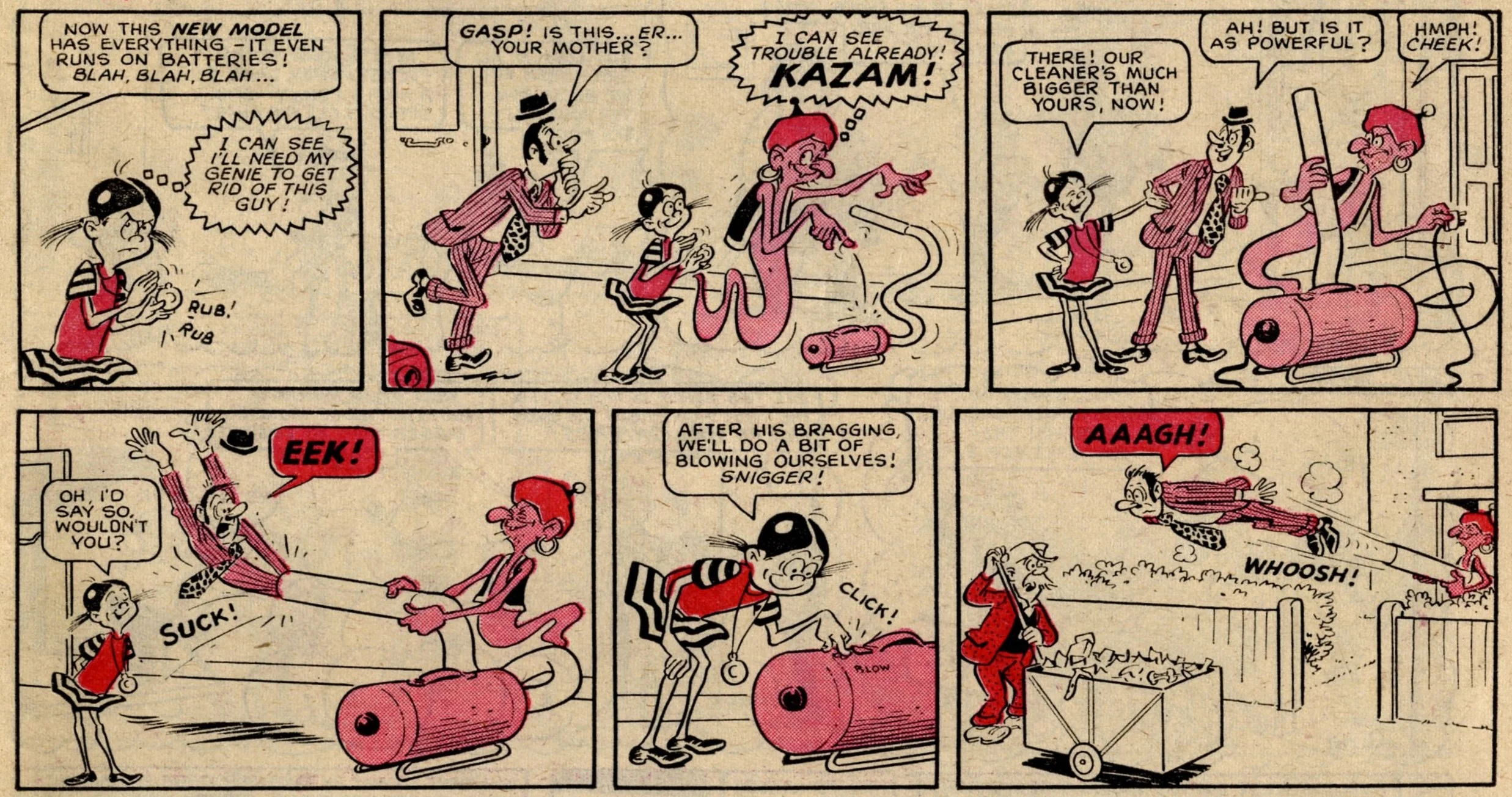 Irmantas tells the story of this harsh, gladiatorial contest in thrilling style here. Thank goodness the contest ended the way it did, or we could have lost one of British comics’ most brilliant characters. Rather like Denmark (1992 European Championship winners, having replaced war-torn Yugoslavia at the last minute), Goran Ivanisevic (in 2001, Wimbledon’s first and only wild-card champion), Jeremy Corbyn (who only made the 2015 Labour leadership ballot by a grizzled whisker) and Zayn Malik (whose mum had to drag him out of bed to attend the 2010 X Factor auditions), the romper-suited infant infernale would go on to become Whoopee!’s front-cover star and number one character.