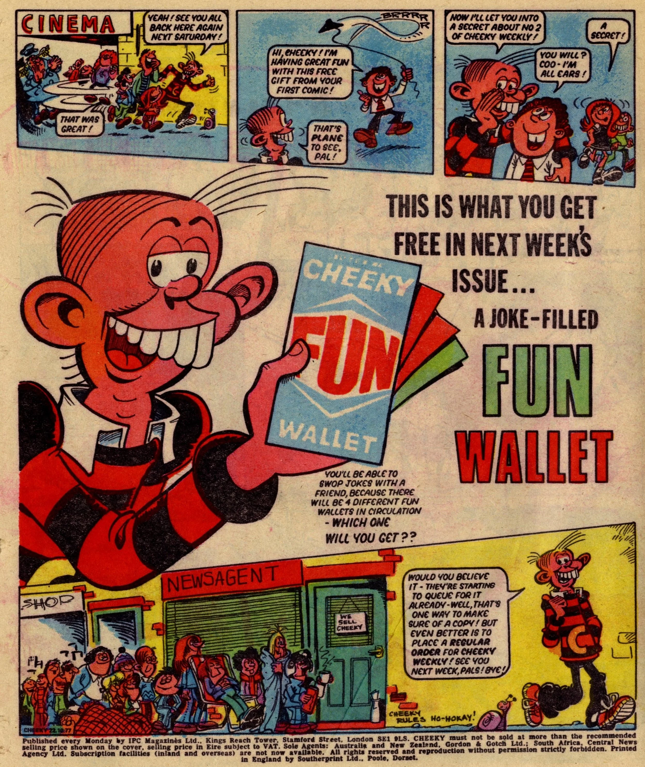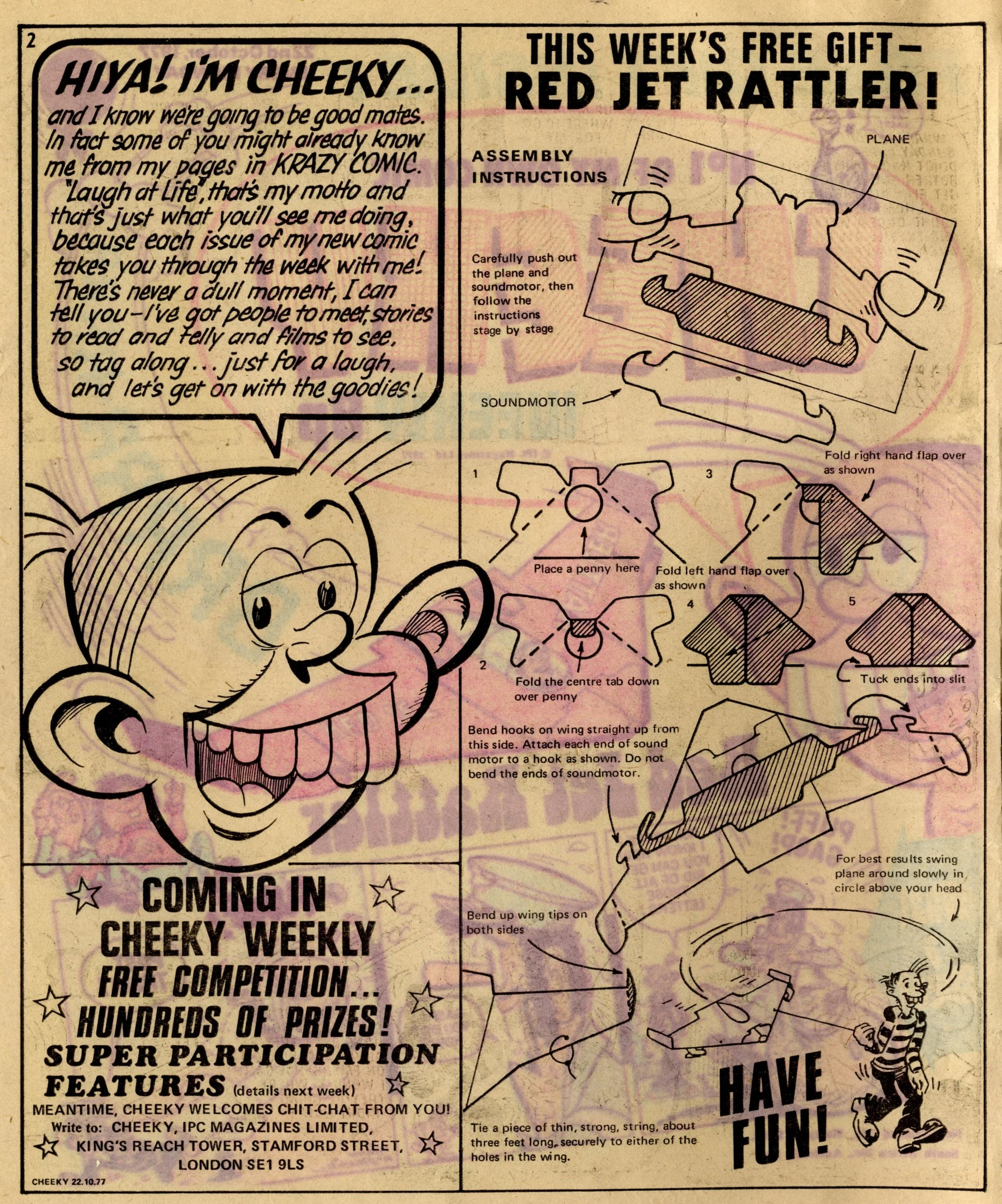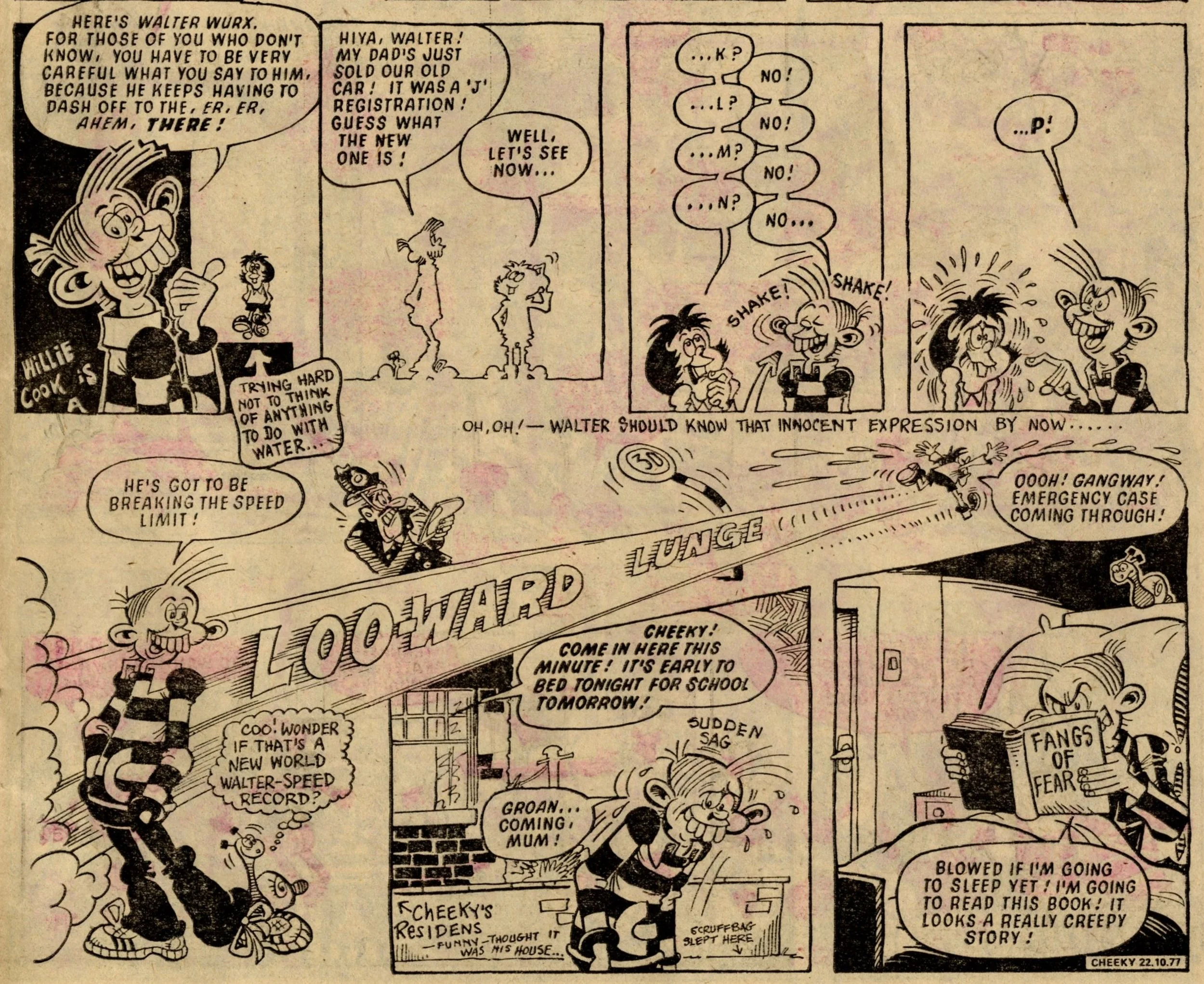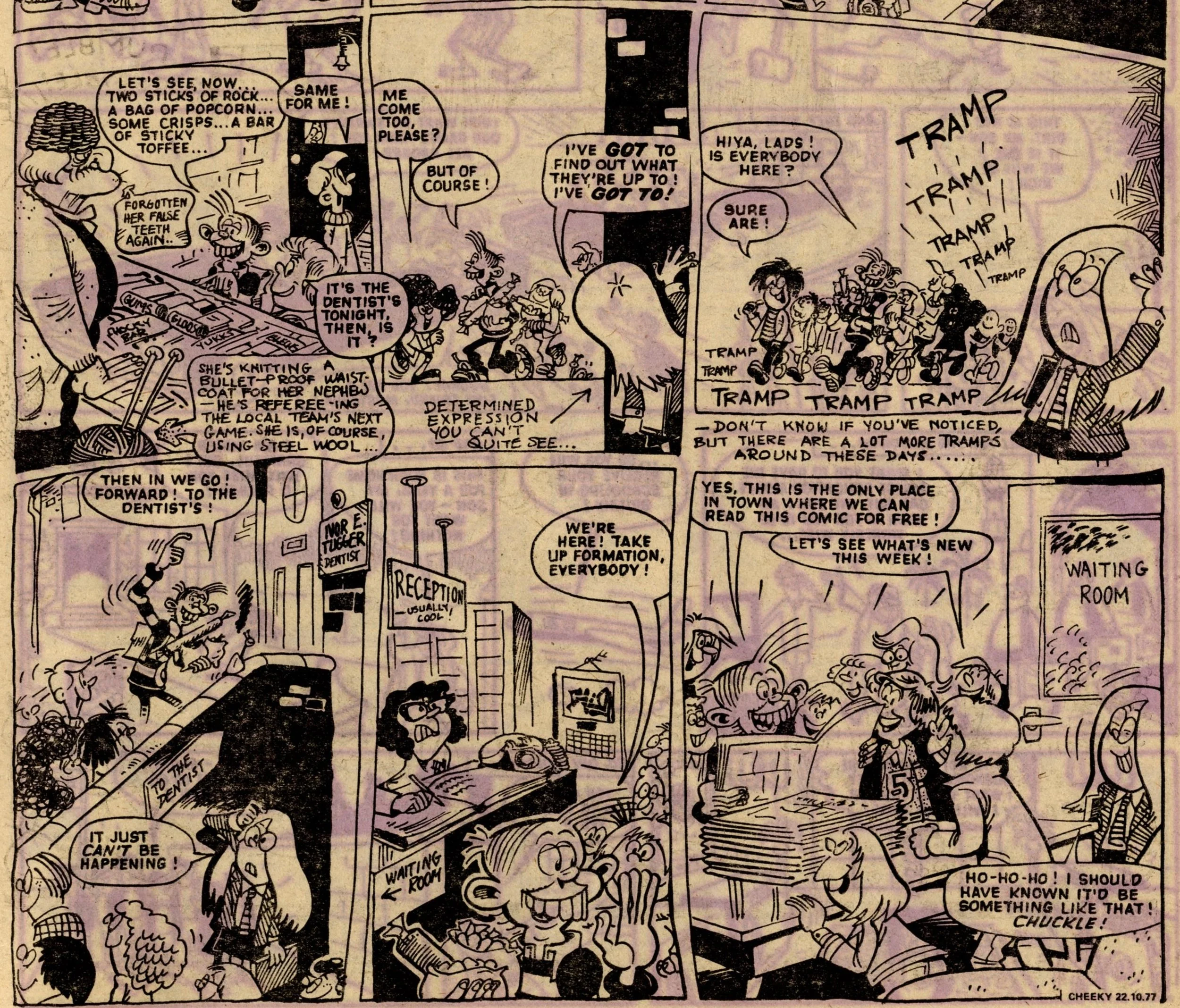 On this day, 22 October 1977 … ‘“Laugh at Life!”, that’s my motto,’ announced Cheeky, at the start of his very own comic. And laugh we still do. There’s something infectiously brilliant about Cheeky. I’ve written before about its problematic aspects but there’s so much energy, so many quick-fire gags, such mischief and optimism and ingenuity, that it remains a joy to turn back to whenever its turn on the ‘On this day’ schedule comes around.