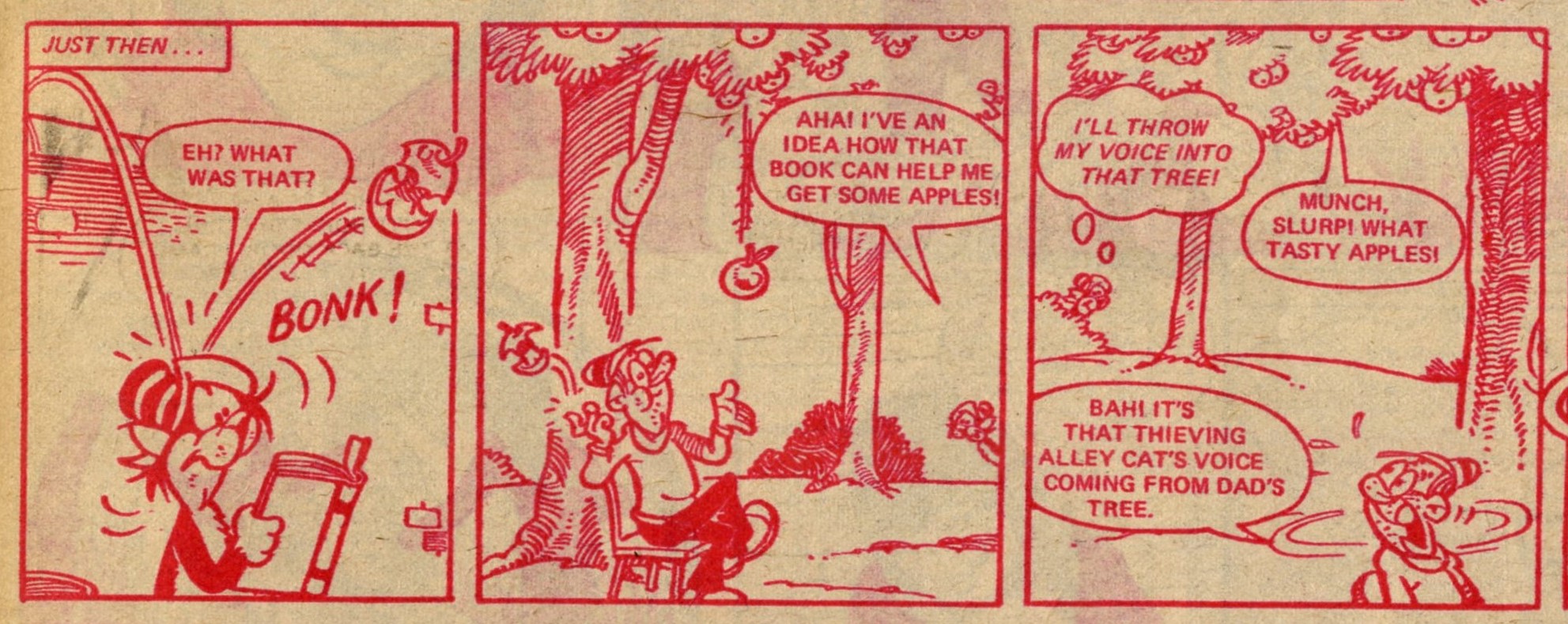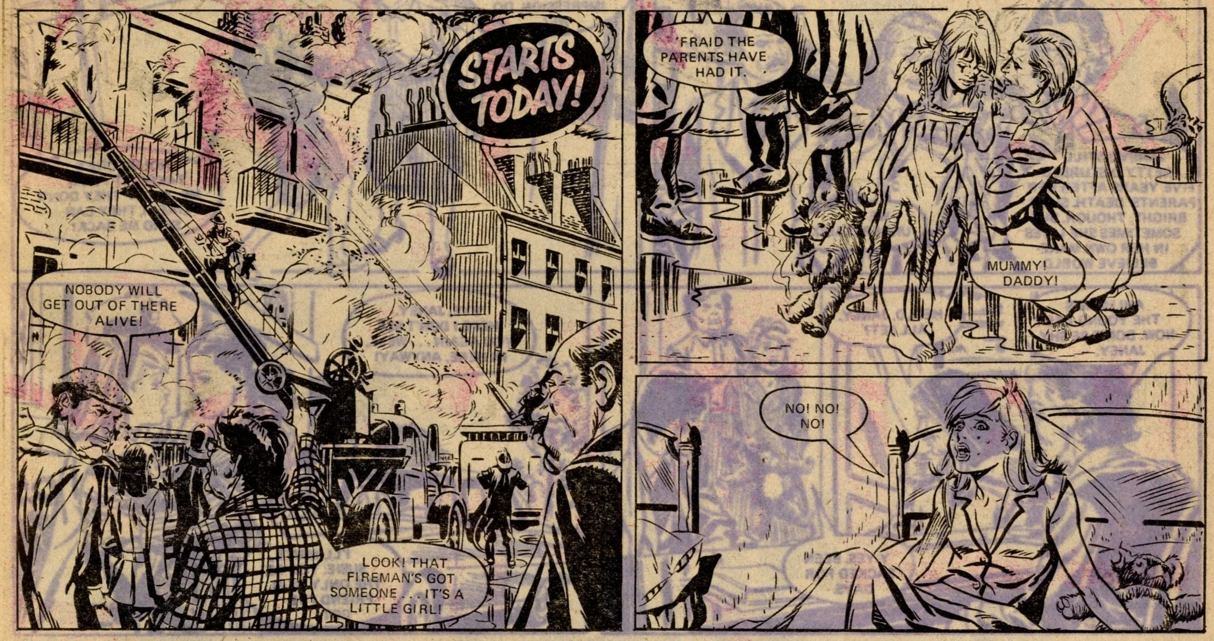 Finally, apologies to all for the show-through that makes some of the scans below difficult to read; I’m not sure whether the comics were like this at the time or whether it’s an effect of ageing.