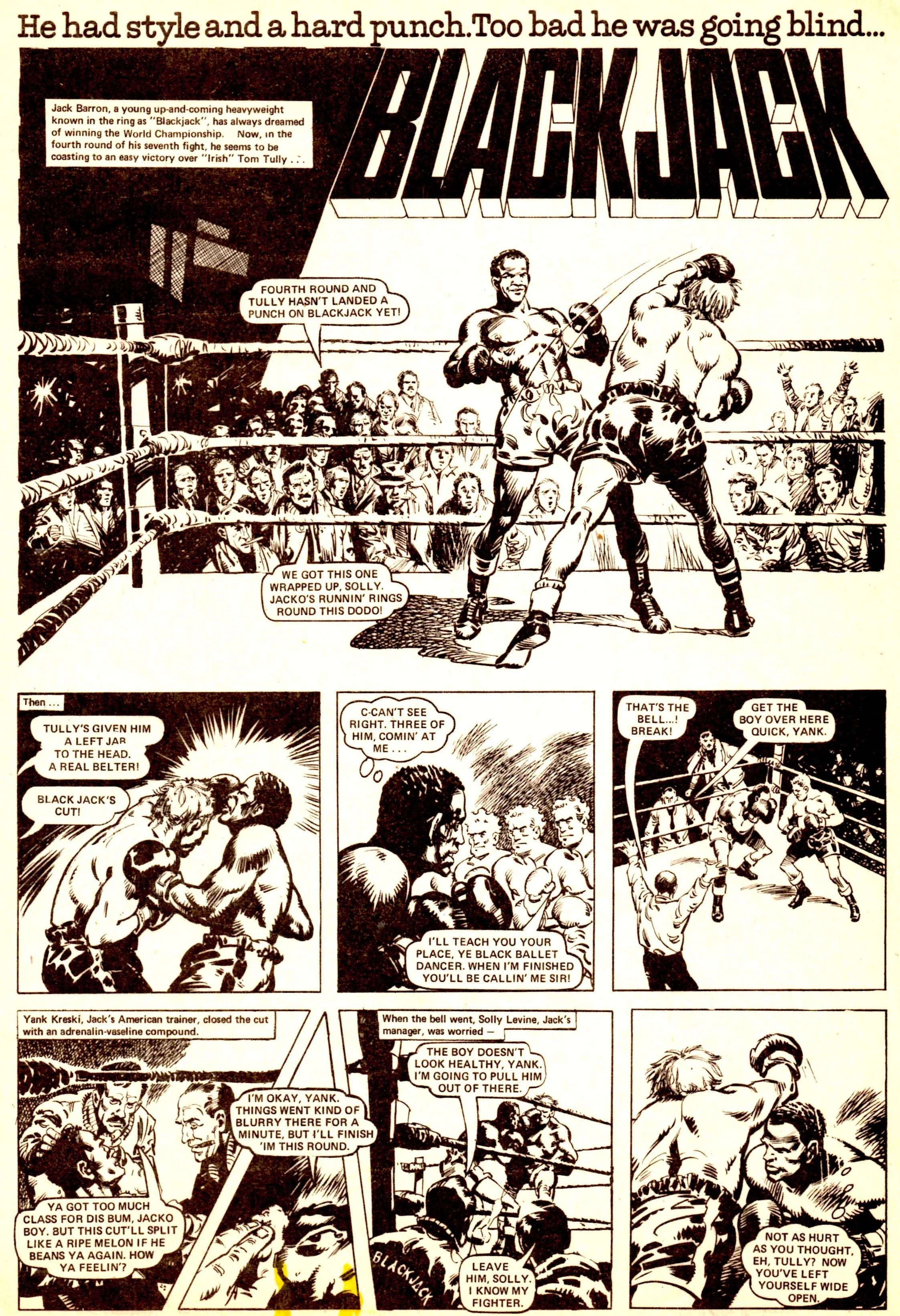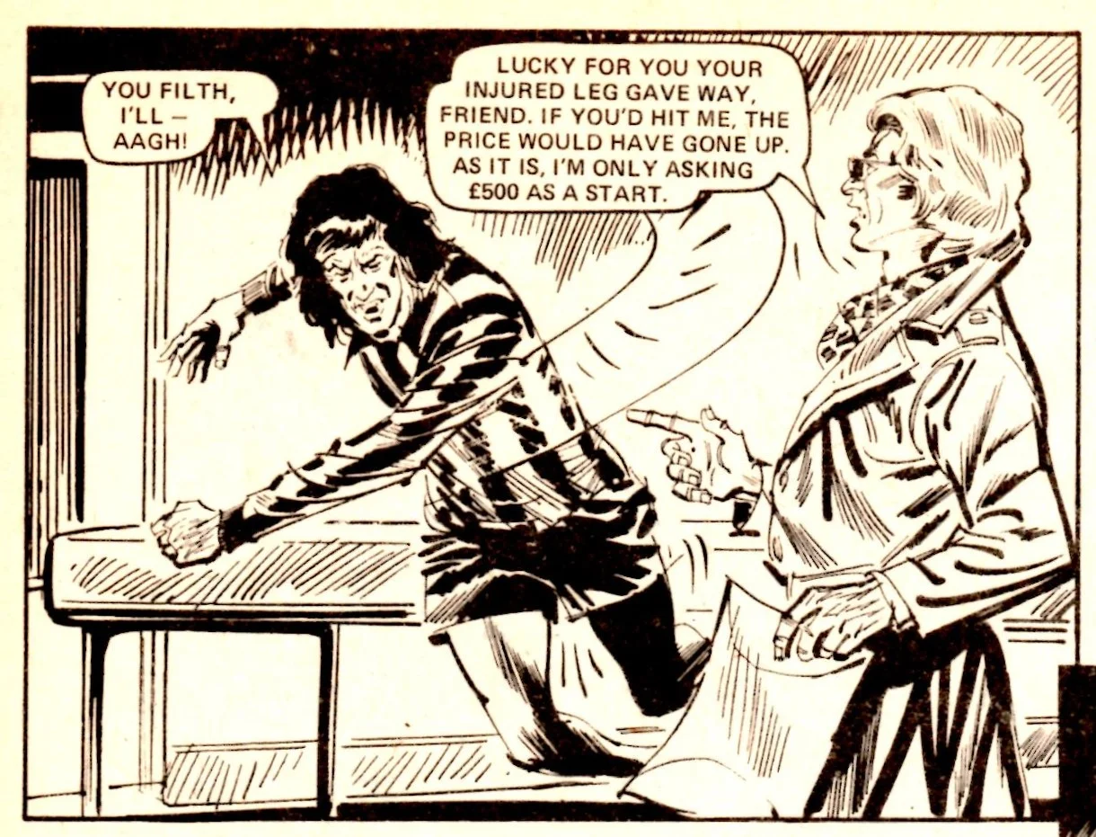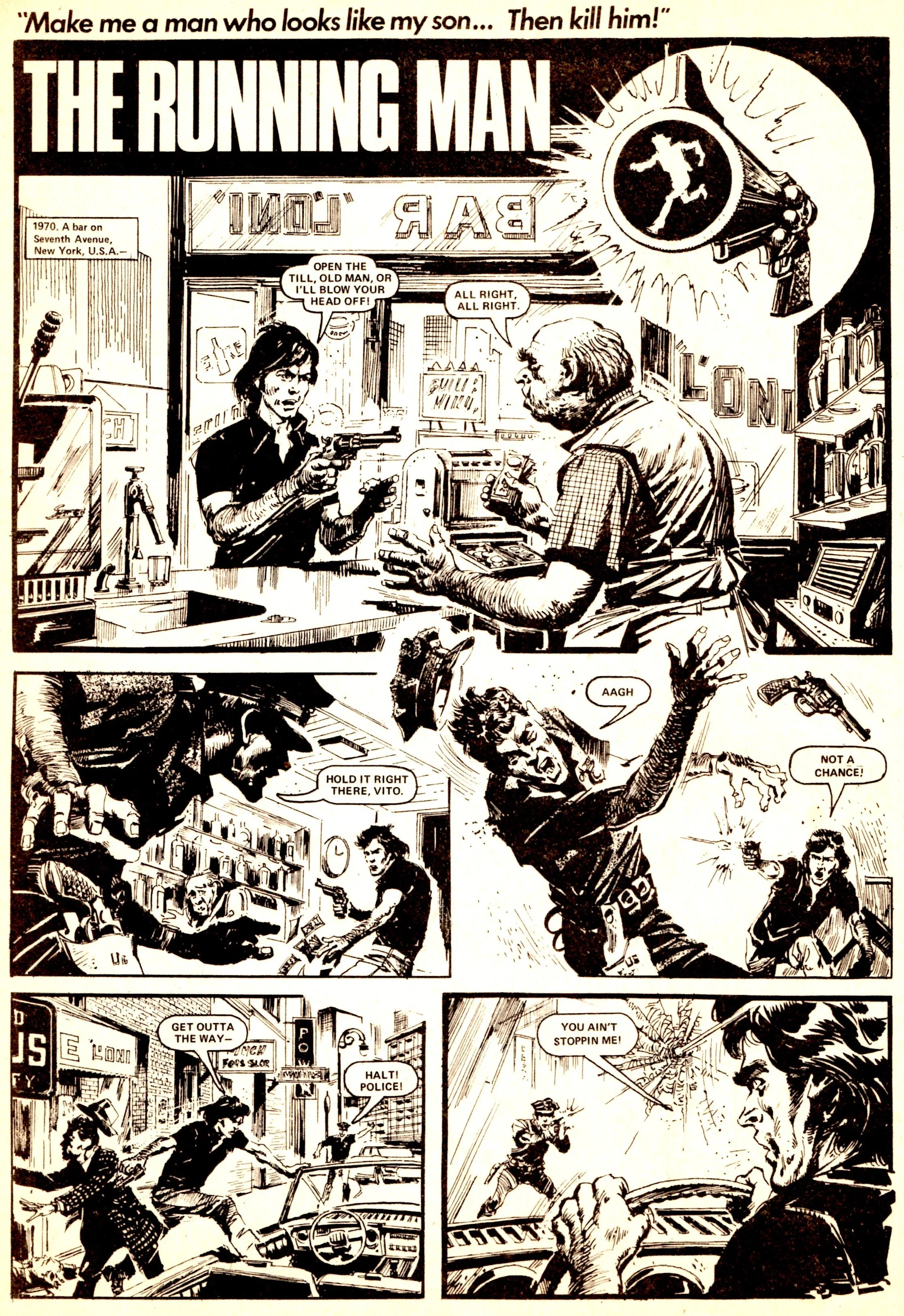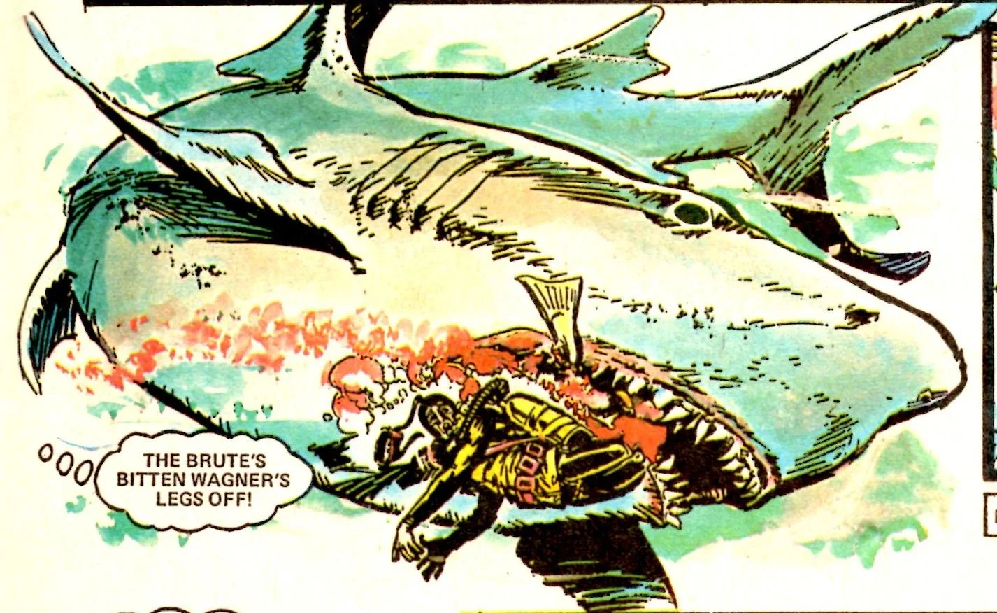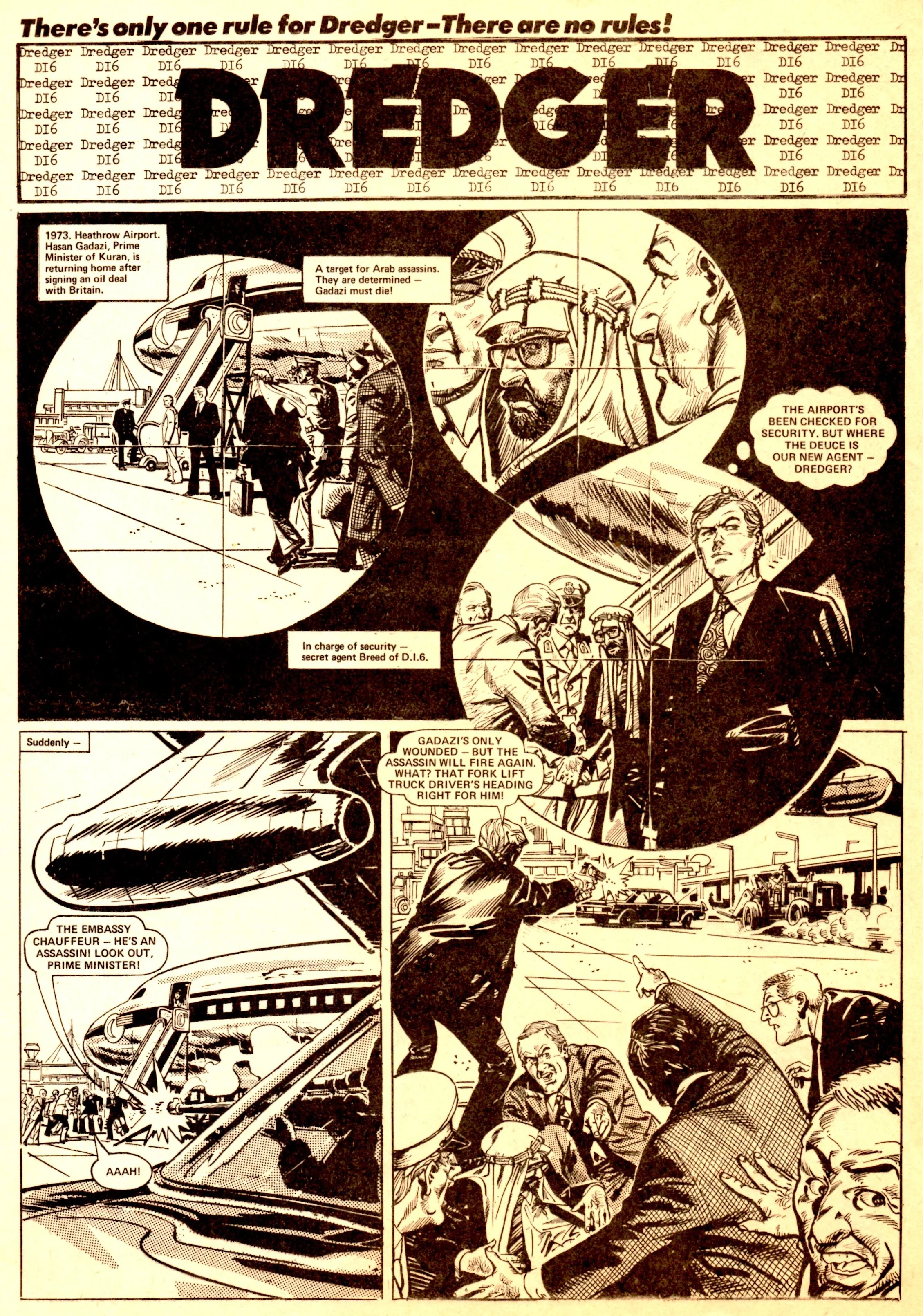 Look out below for the first appearances of psychotic government agent Dredger, chin-pierced great white shark Hook Jaw, and Hellman of Hammer Force, the heroic German Panzer tank commander, plus name-checks for script legends Tom Tully and John Wagner, and future Tharg Steve MacManus’ debut as real-life daredevil Action Man (and keep your Action Man Eagle Eyes alert for Steve’s forthcoming memoir, which promises fantastic insights to the days before they took our Action away).