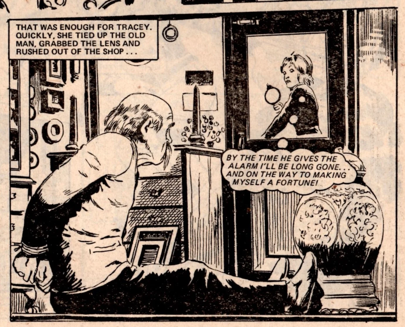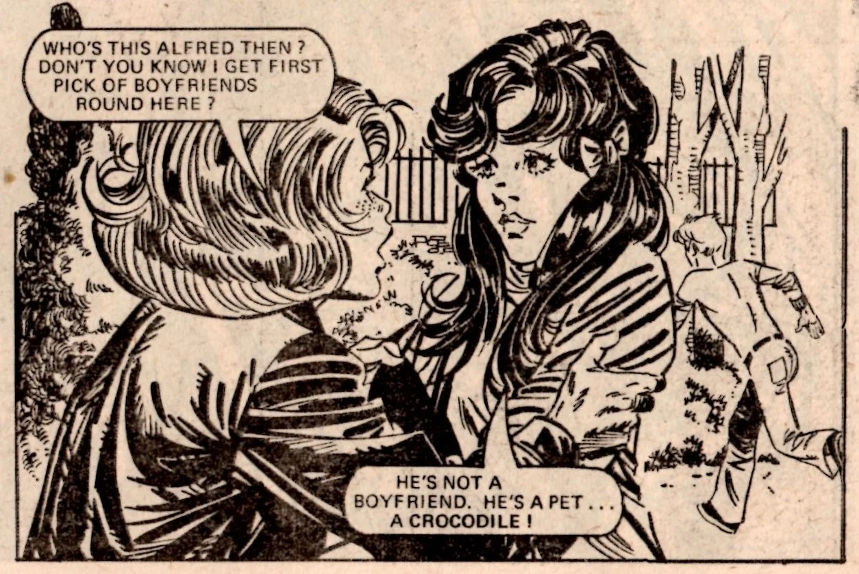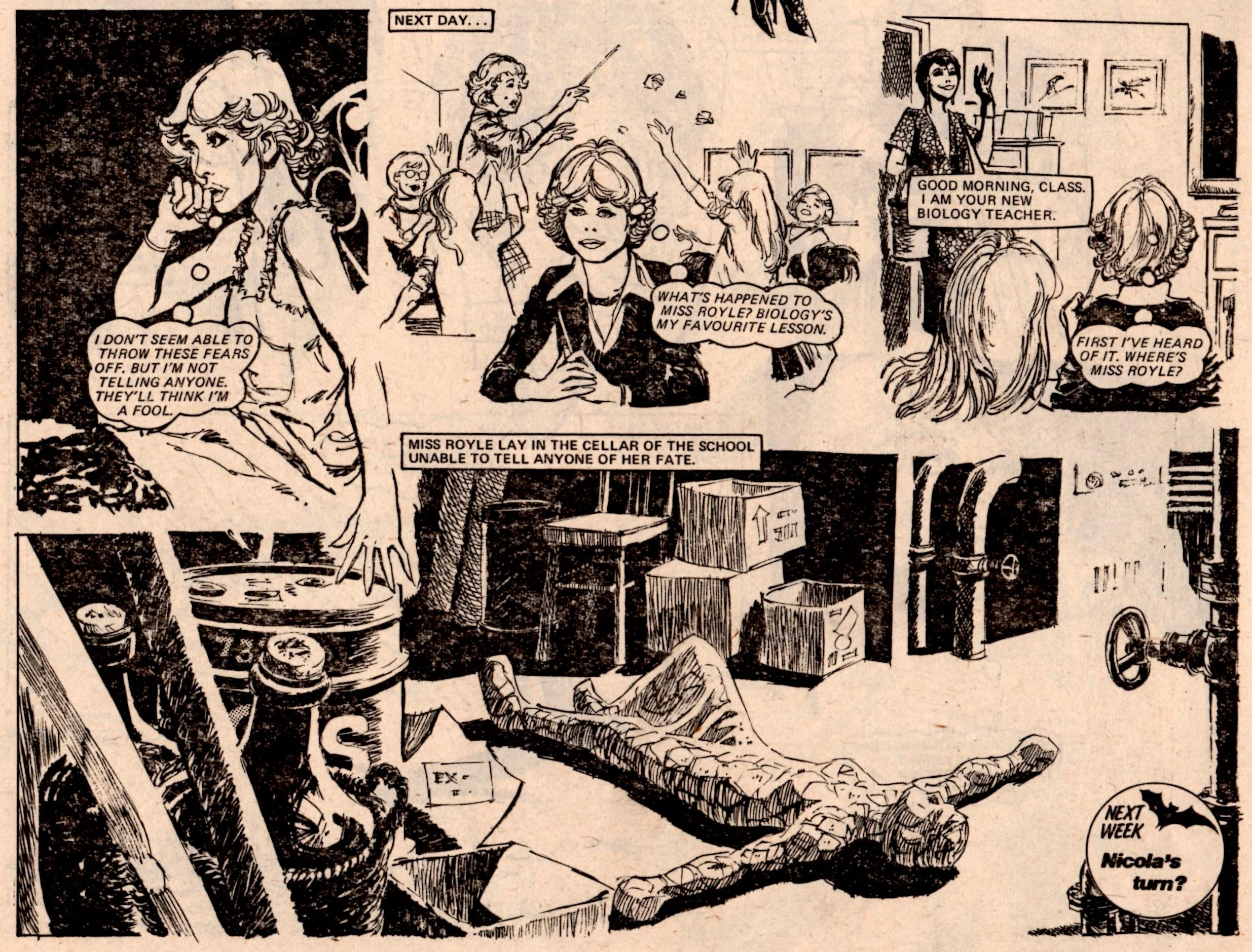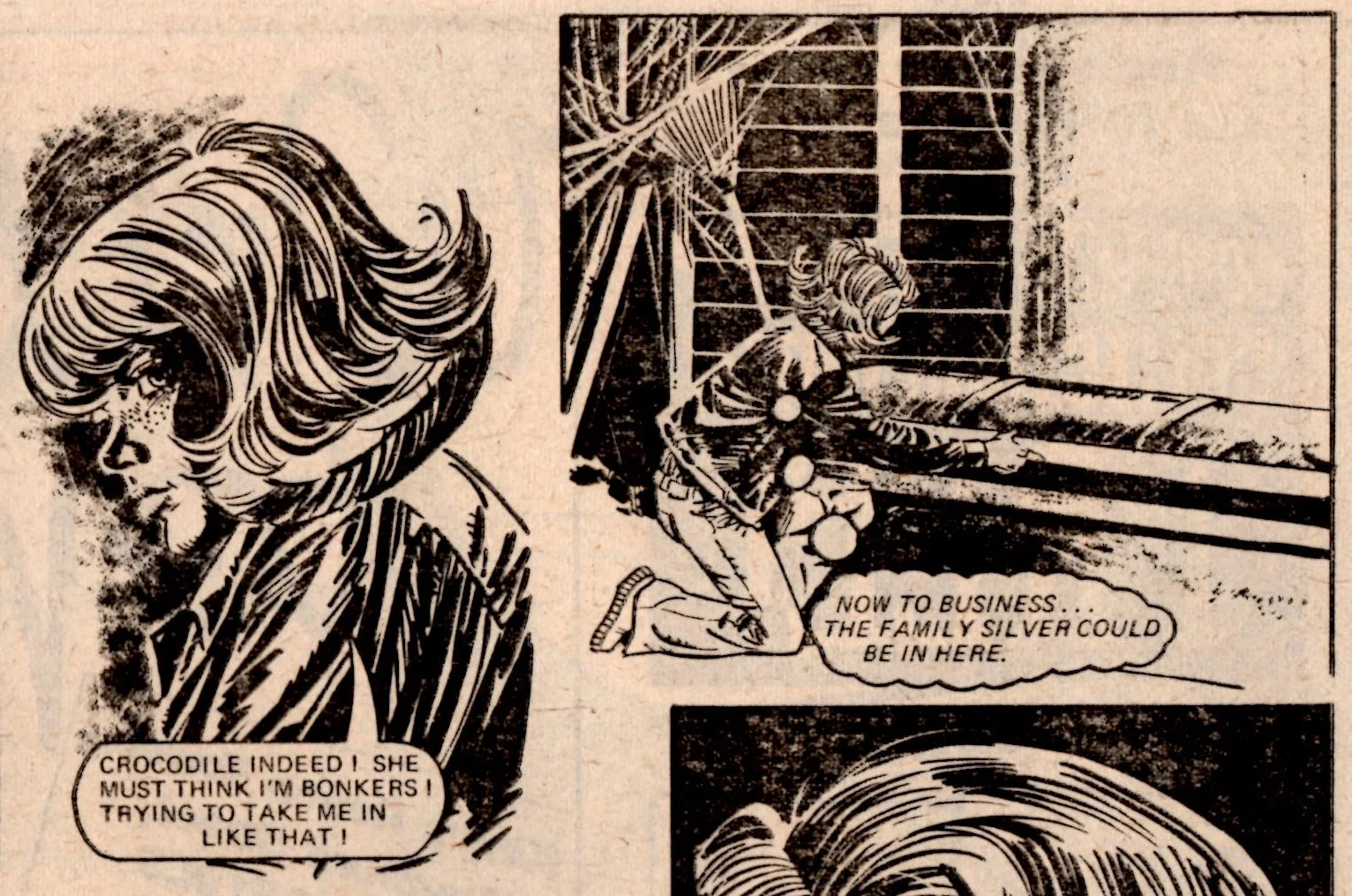 On this day, 24 February 1979 … ‘Here in the Wilderness of Willows the mists have parted for the moonlight to reveal this week’s clutch of shuddermakers.’ The shuddermakers in this mid-run issue of Misty included: Nine Lives of Nicola, in which Nicola Scott, last priestess of the cat-goddess Bast, was under spiritual attack from the serpent empire; Slave of Time, in which Lisa fell in thrall to a carriage clock that was the source of time itself; Whistle and I’ll Come, in which Toni Ballard becomes separated from her ghost-dog Albert; The Island, in which school-trippers Angie and Sue explore the mysteries of Carr Bay Island; Croc in the Box, in which bullied Sue Gurney has a not-so-imaginary friend in the attic; and Going … Going … Gone!, in which pickpocket Tracey Trantor steals a mirror with the power to make her invisible (what could possibly go wrong?!).