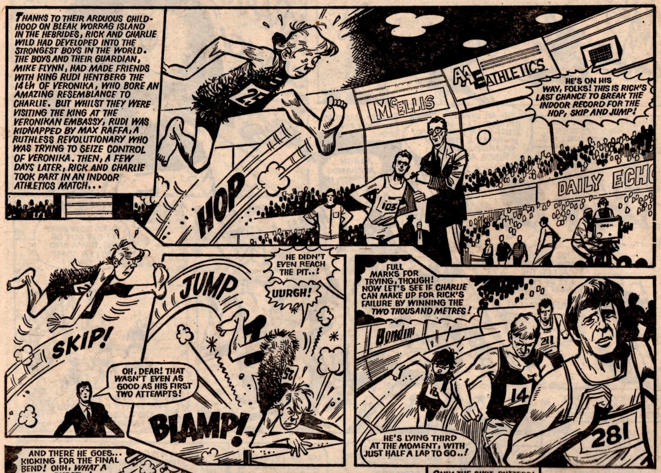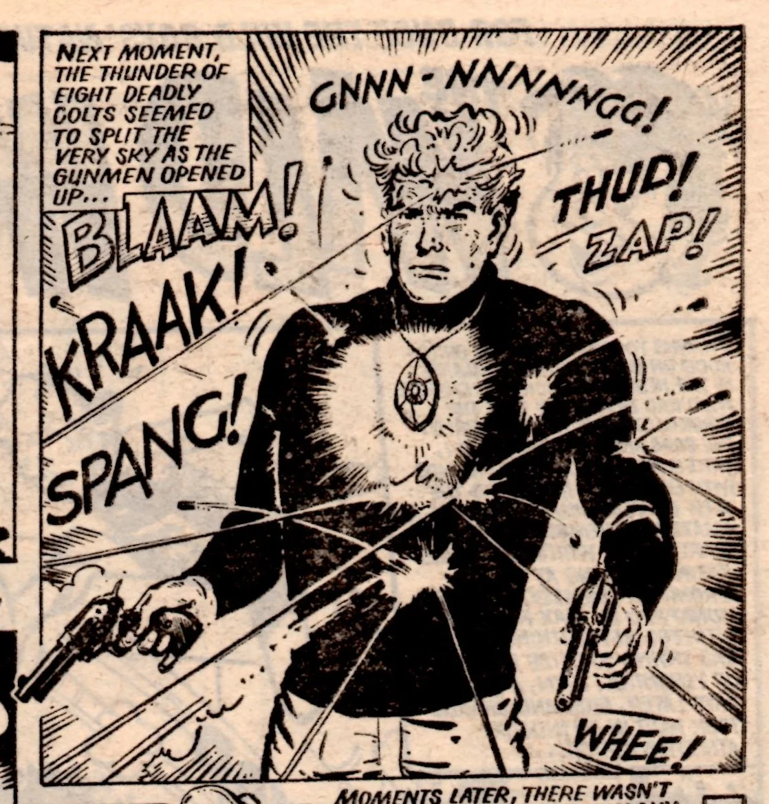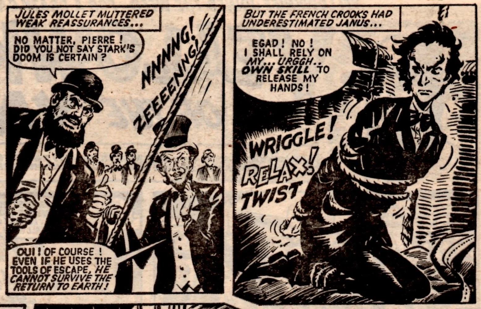 On this day, 2 March 1974 ... that David Attenborough off of the wildlife programmes on the telly might have seen giant turtles and the flying snake of Borneo, but has he ever seen Victorian elasticated escapologist extraordinaire Janus Stark free himself from bondage in the basket of a hot air balloon, reanimated Ancient Egyptian Kid Pharaoh defy drowning while chained to a chunky chum at the heel, time-travelling tough guy Tim Kelly (Kelly's Eye) bounce back a bombardment of bullets in a Wild West wrangle, or a clutch of callow cadets from the School of Spies recce a rotten research station? Probably, in fact, if IPC sent him a courtesy copy of this issue of Valiant.