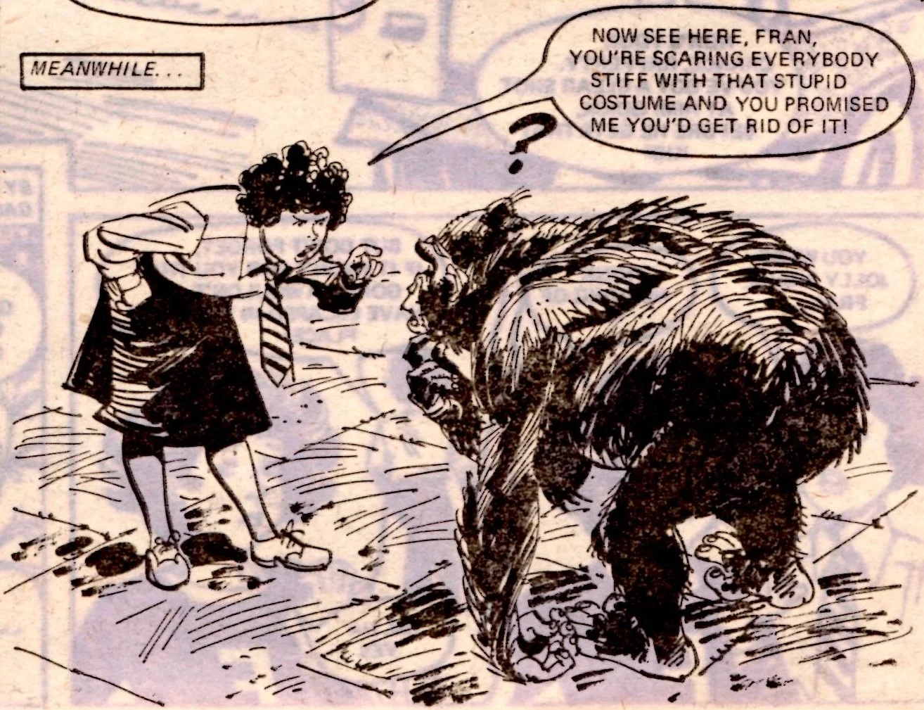 In the realms of fantasy, swimsuited Tina Williams was subjected to magical tests on an enchanted mountain as she sought to earn her way home in The Girl Who Never Was, while Sea-sister spirit girl Helen rode out on the waves to rescue Jane Bush’s marooned father. There were fun times in the school staff room for Sue Lawton and her magical handbag in Sue’s Fantastic Fun-bag, and in the playground for Fran’s buddy Sally and an escaped gorilla in Fran’ll Fix It!