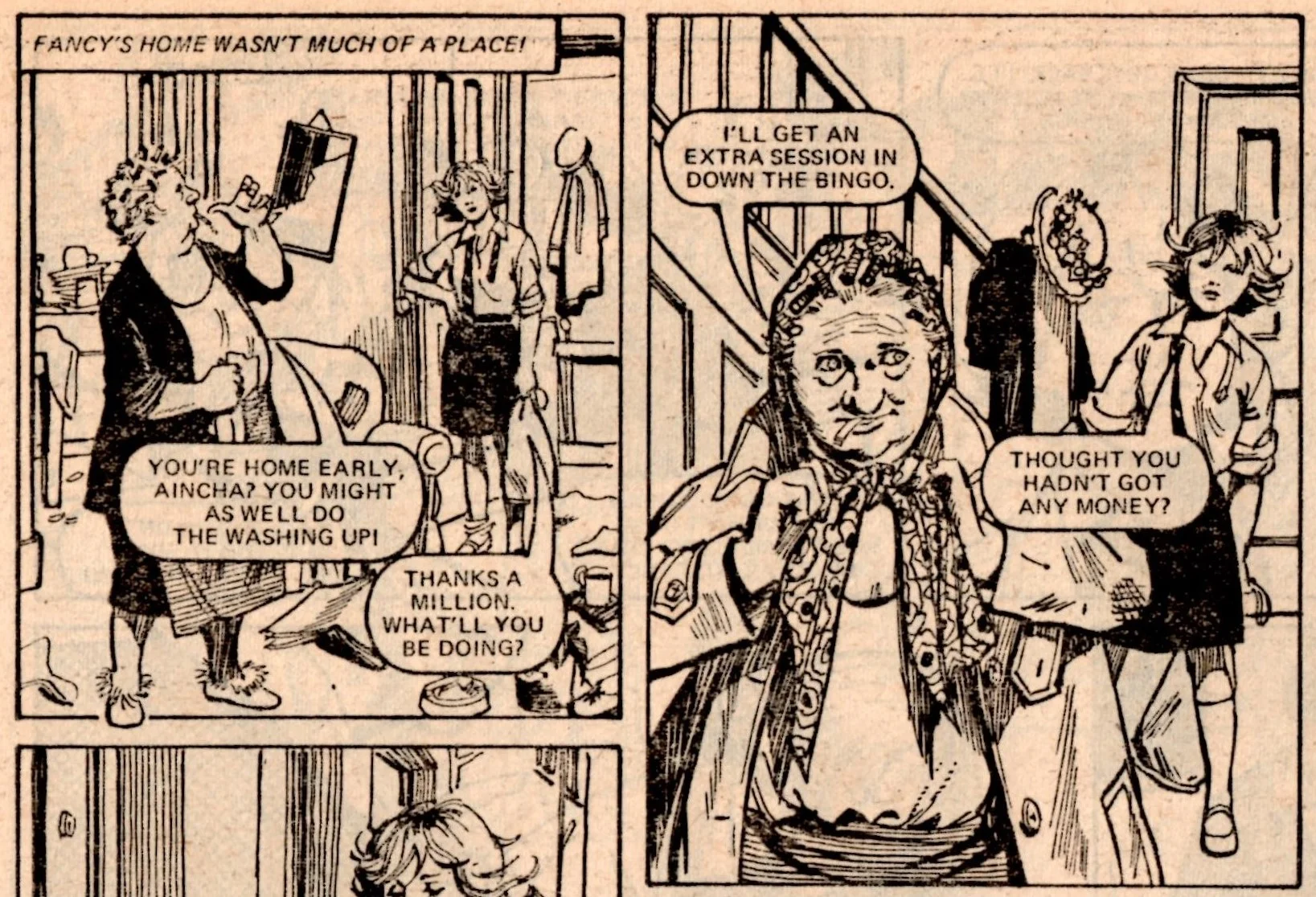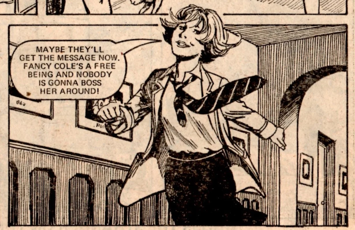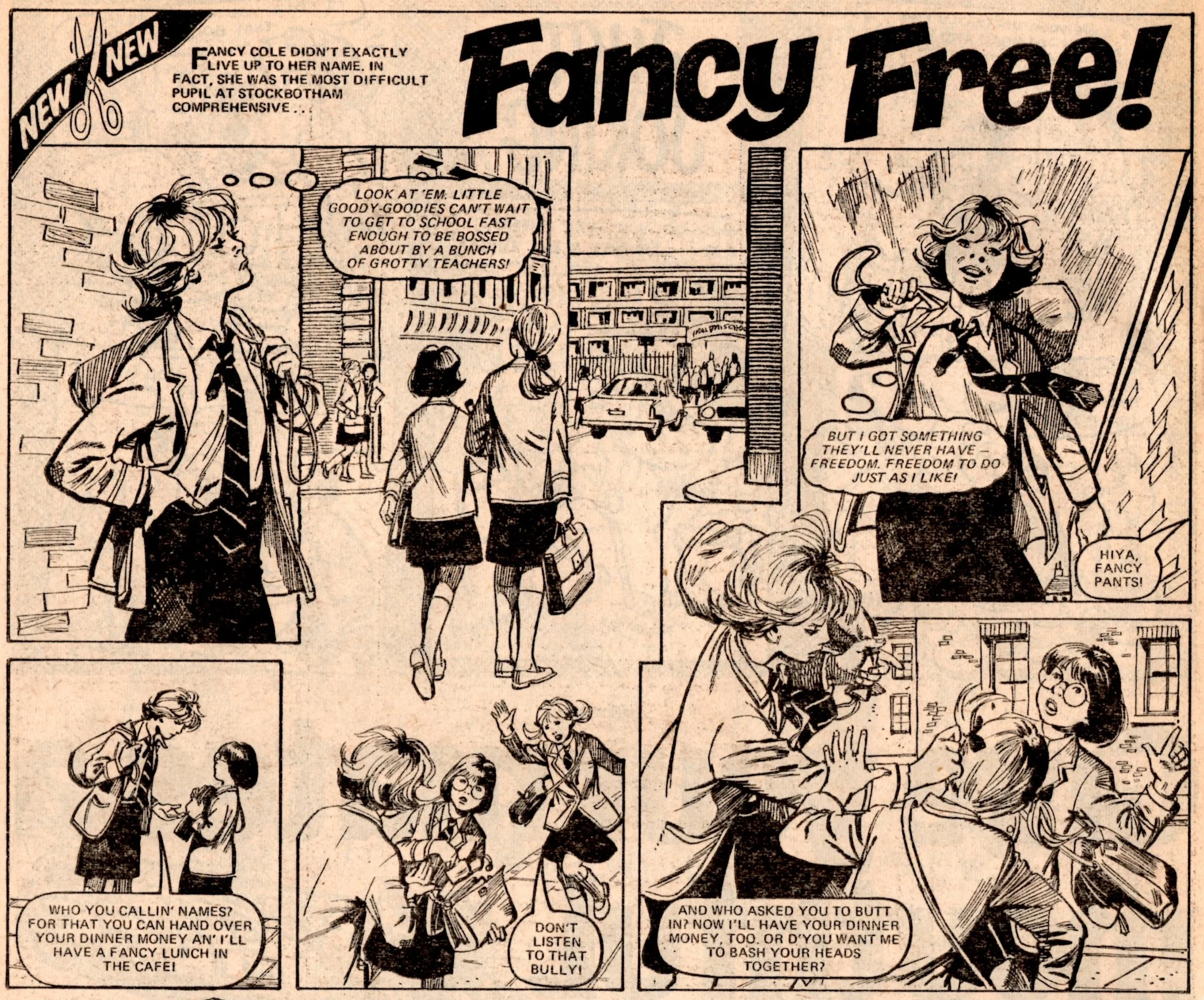 Fancy Free! also starts off in a school setting although the ending of this instalment suggests it’s going to move out onto the moors as the protagonist Fancy Cole decides to run away from a misfit life. Like Grange Hill, or Crowe Street Comp in Eagle, a soapy school-based storyline will always appeal to me, school being where all the dramas of my real life played out for so many years. Fancy, descibed as ‘the most difficult pupil at Stockbotham Comprehensive’, and soon revealed to have a troubled home life, appears first as cocky and a bully yet I feel immediately sympathetic towards her, a mark of great storytelling.