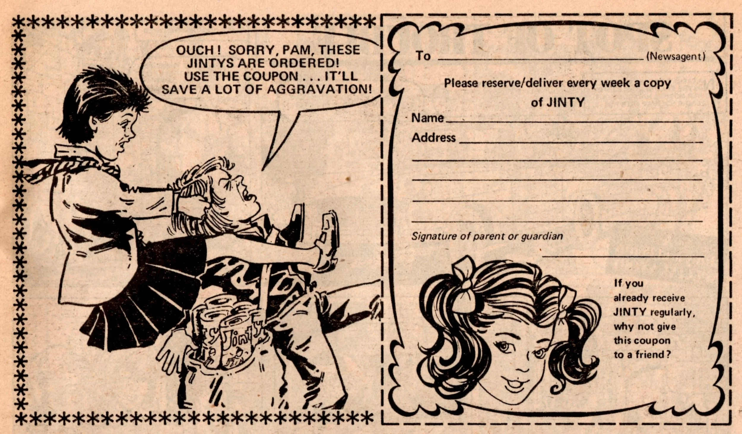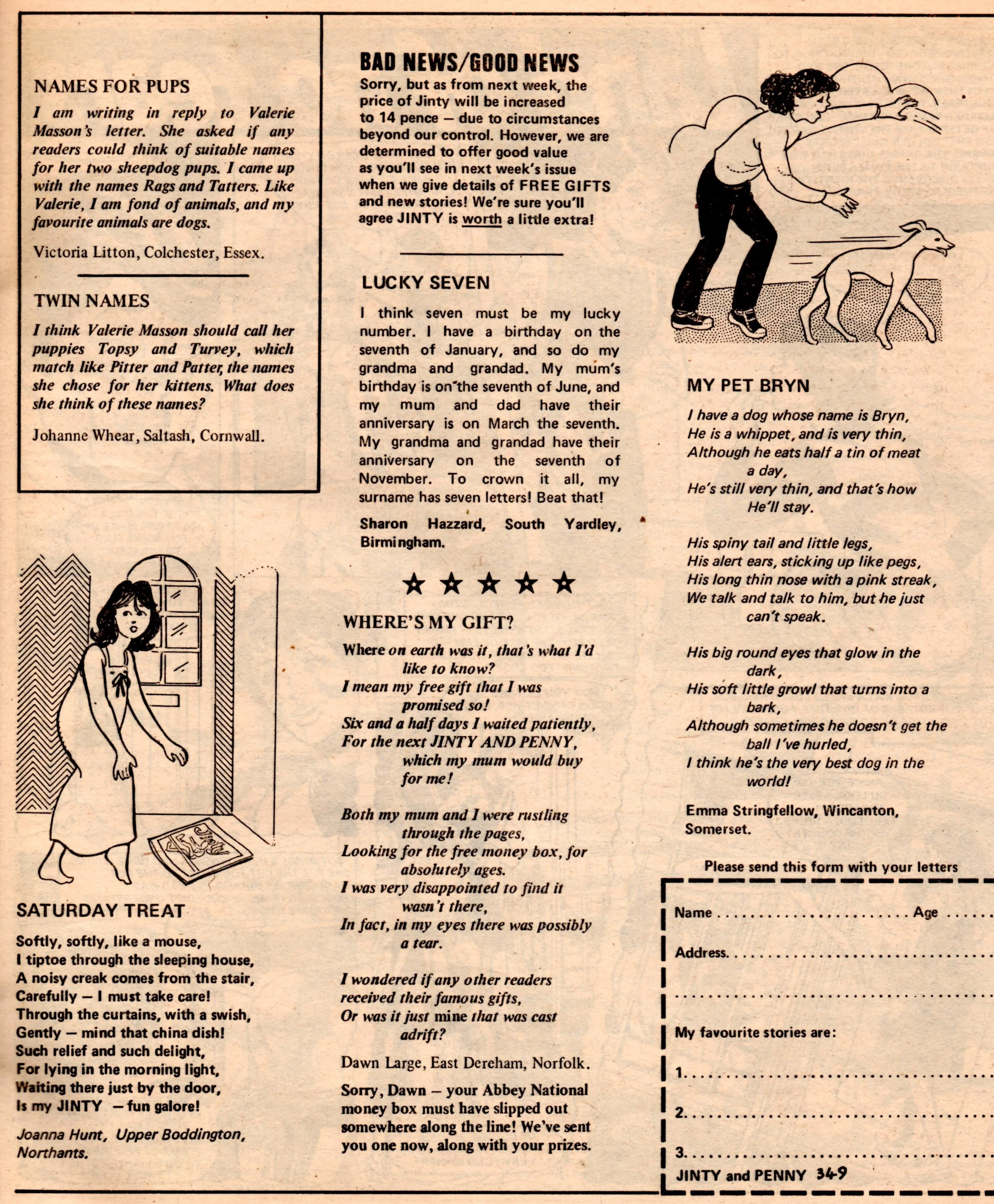 On this day, 28 March 1981 … I’ve enjoyed reading this issue of Jinty although I’m sad to see that it comes fairly late in the comic’s run. Jinty would be merged into Tammy before the end of the year, leaving the combined comic as IPC’s the last girl standing (depending whether you consider Girl and Dreamer to be comics or magazines). I’m sure there were unarguable commercial reasons for this but it’s a shame because the scripting and art seem to me to be as good as ever.