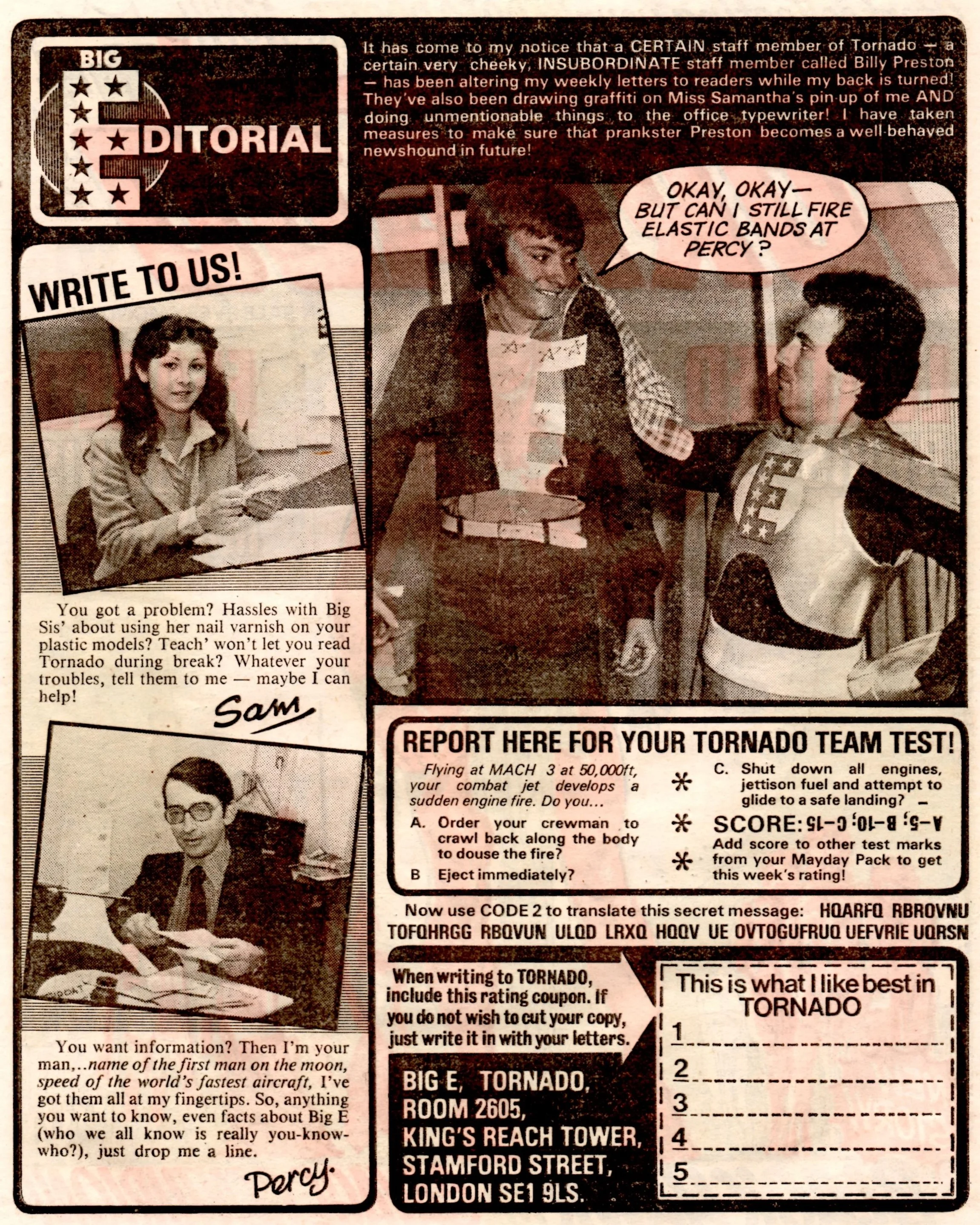 There’s the start of a very cool Carlos Ezquerra ‘Tornado’s Gallery of Heroes’ in this issue – including a Wulf-like Viking. It’s ‘the longest poster ever in British comics’, so I won’t be posting a full scan of this one!