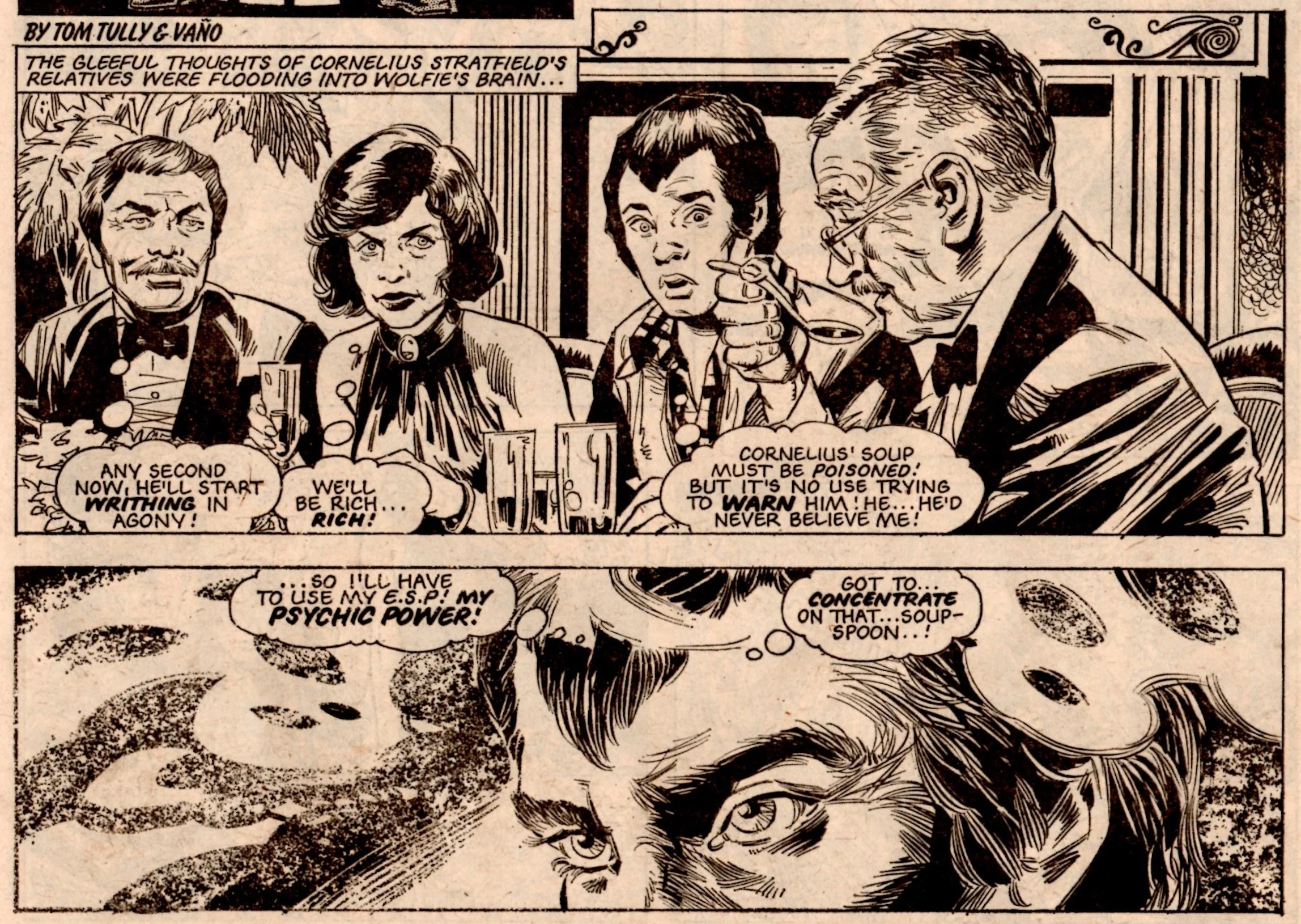 Tornado continues to deliver strong fare here. Since I wrote about the first issue the comic has also taken on Storm – about a cave-dwelling gipsy boy discovered living alone in the Scottish highlands – while The Mind of Wolfie Smith and The Angry Planet remain standout strips. The other day I read a suggestion that Tornado had been launched as a home for stories commissioned for Action before that comic’s cancellation, and while I can see that they all would have fitted the remit most of them seem better than what had become a bit bland and samey in post-ban Action. They would have improved it, but their legacy is probably stronger for having been part of the all-new Tornado (even if short-lived).