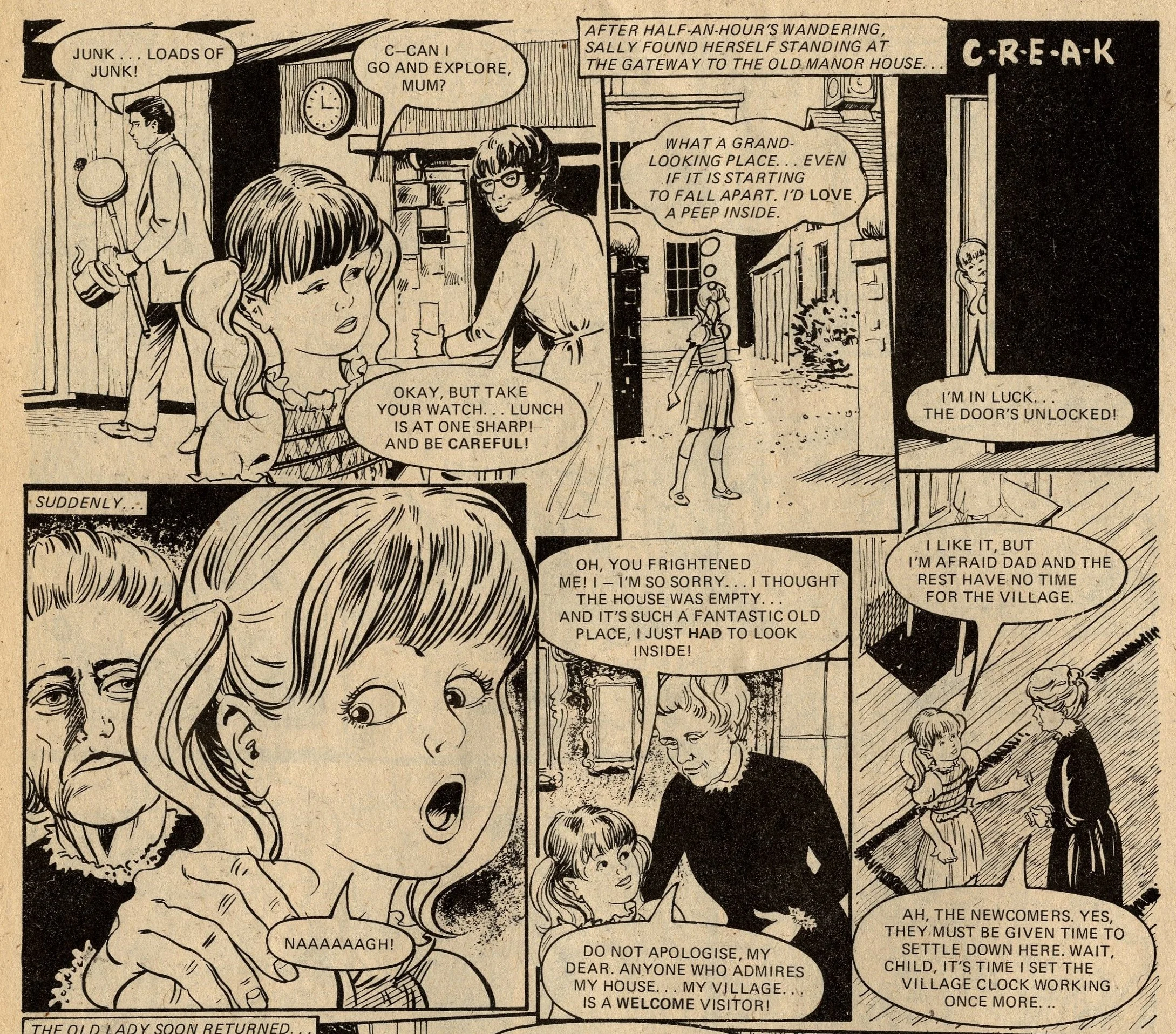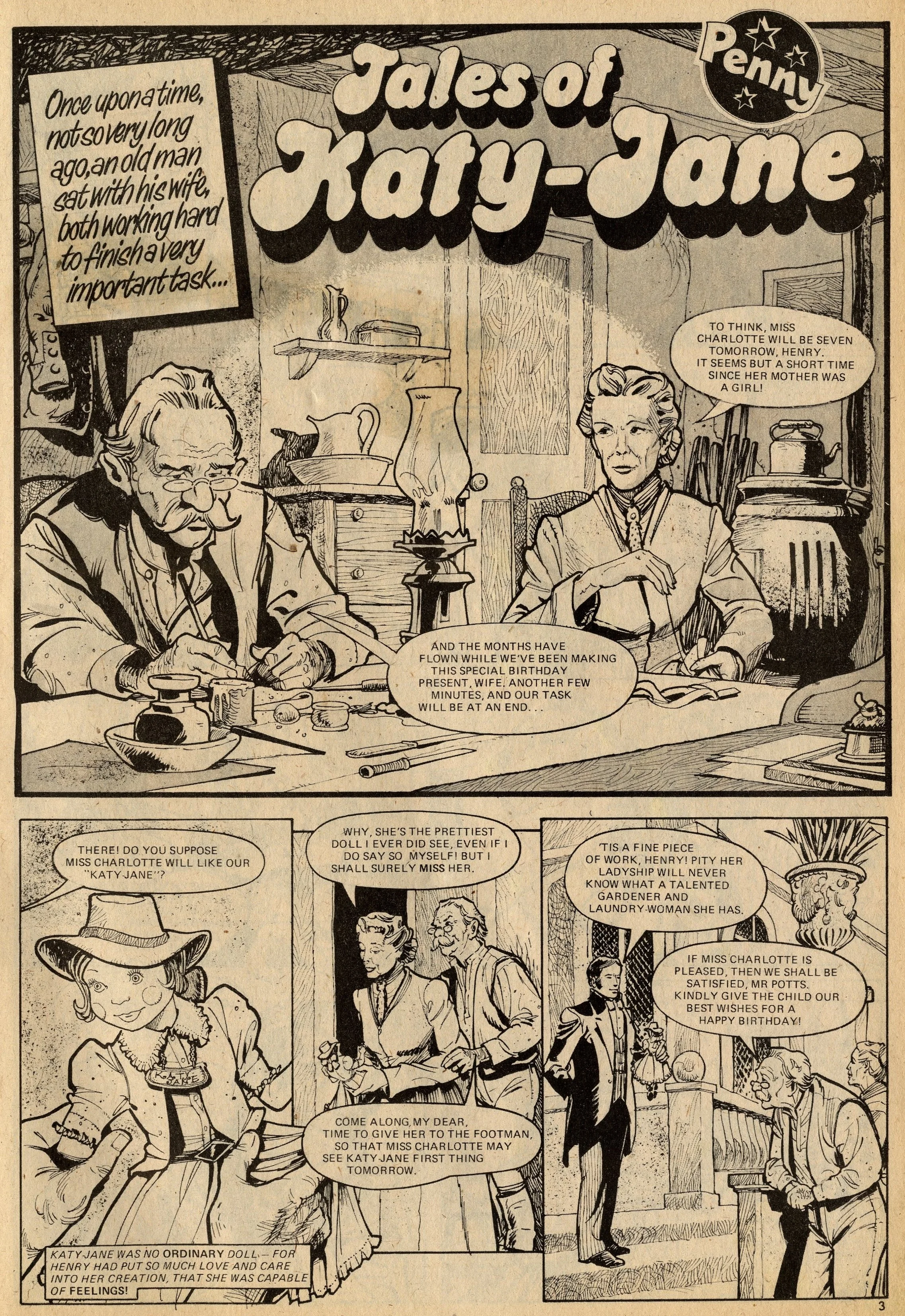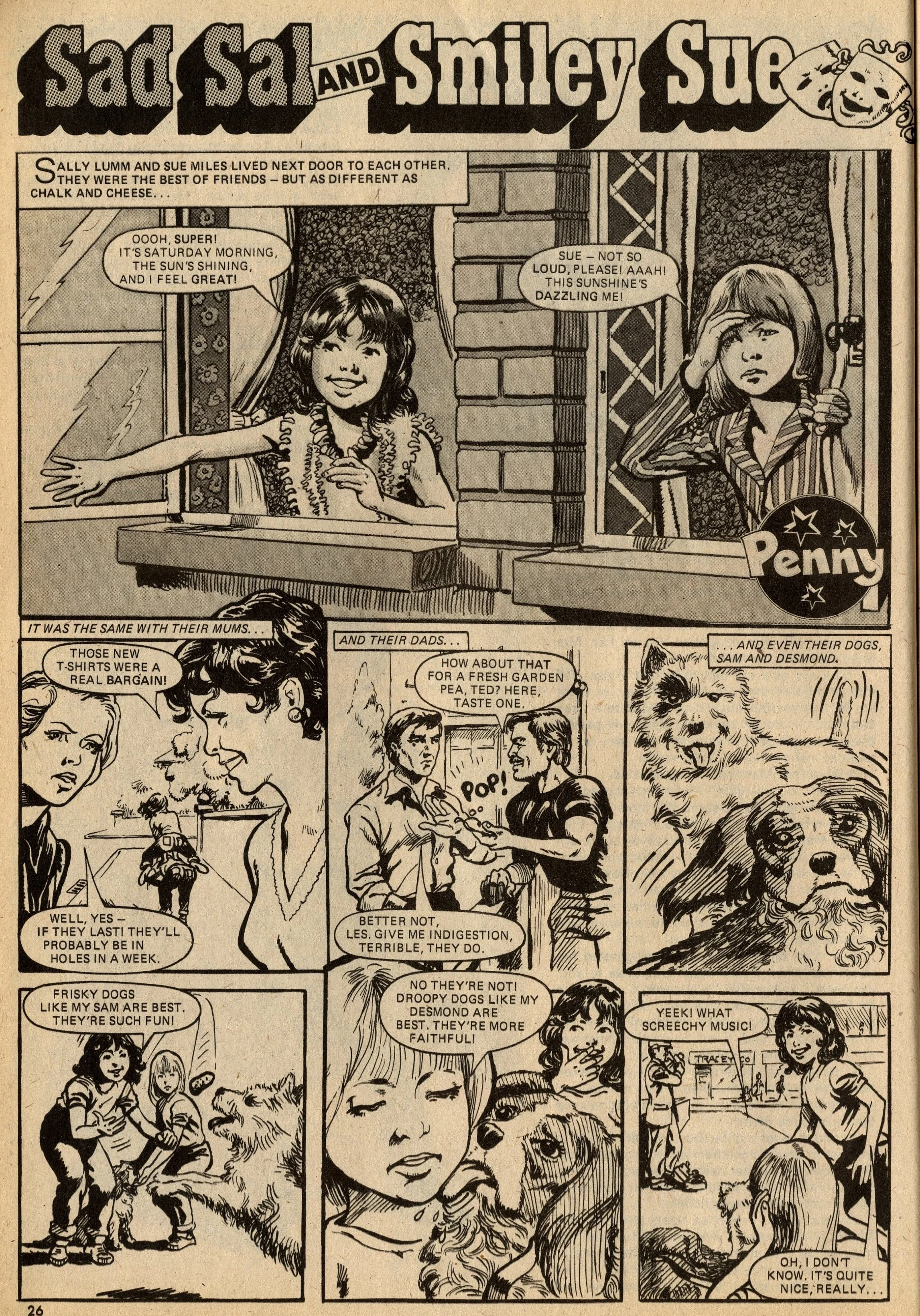 I did ask my daughter Hannah if she would read this issue for me and tell me what she thinks for the blog. Hannah is eleven, and heading to Secondary School in the autumn, so probably still a bit outside Penny’s target readership. She’s a keen reader, mainly of Manga, Jacqueline Wilson and 5 Seconds of Summer fan books, but a look of distant fear comes into her and her brother’s eyes whenever I suggest they might like to read one of my old comics. Something to do with black and white, dust and ‘old people’ stuff (Hannah once asked to take a whole pile of Jintys up to her bedroom, not because she wanted to read them, but less hearteningly because she was playing schools and wanted to show the comics to her imaginary class as examples of ‘how things were in the old days’).