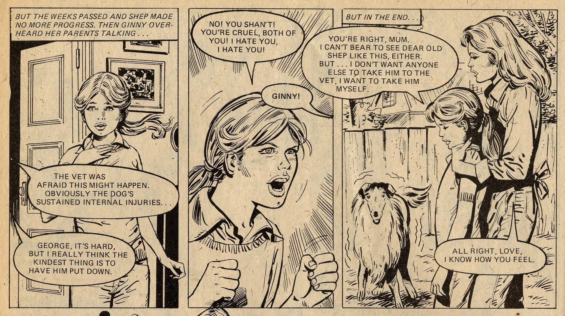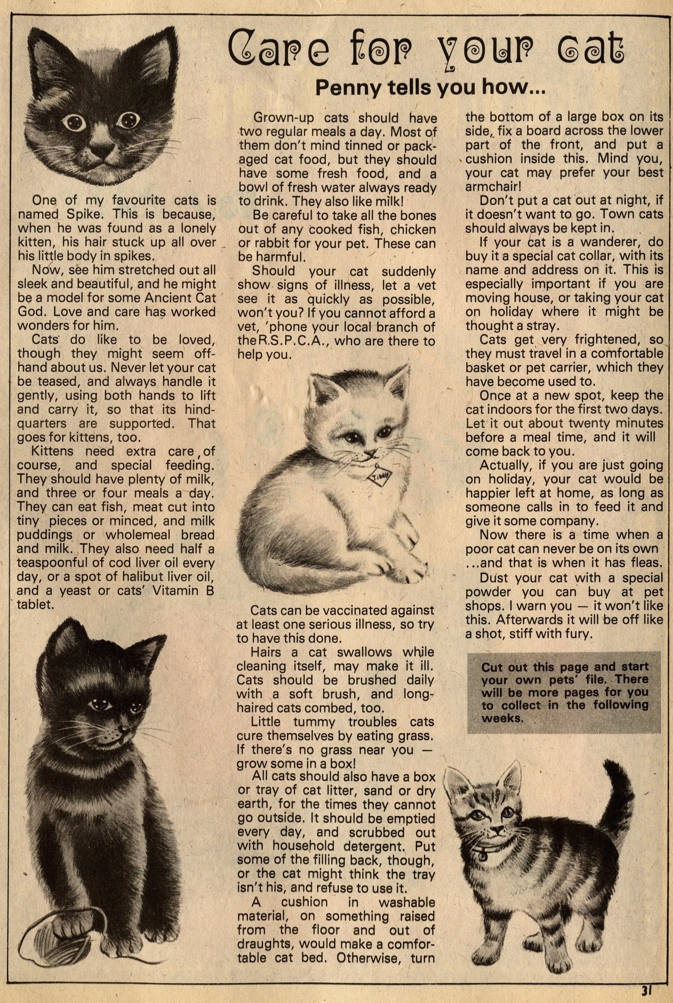 But after a bit of nagging (and when there was nothing else left to be done except homework) she dutifully sat down and read the comic for me. She sat there for quite a while, reading just about every word and soaking it all in, for which I was surprised and grateful, and reported at the end that it was ‘fine’, ‘a bit too young’ but she did like Tales of Katy Jane (a Victorian gardener makes a doll for the daughter of his employer, but she rejects the toy which will go on to be discovered by different children in future episodes), Ginny and Shep (a girl has to come to terms with news that her dog is to be put down after being injured in a car accident) and The Village Clock (a girl moves to a mysterious country village in which the tower clock can stop time and cast her back to an earlier age) – which suggests that the ‘darker’ stories hold appeal today as they did ‘in the old days’. Hannah’s most delighted moment came at the end, not because she had finished but because she loved the kitten picture on the back cover, and instantly pulled out her phone to take a picture for her screen saver and to post on Instagram. While comics may have struggled to remain relevant over the years, pictures of cute cats will survive the Apocalypse.