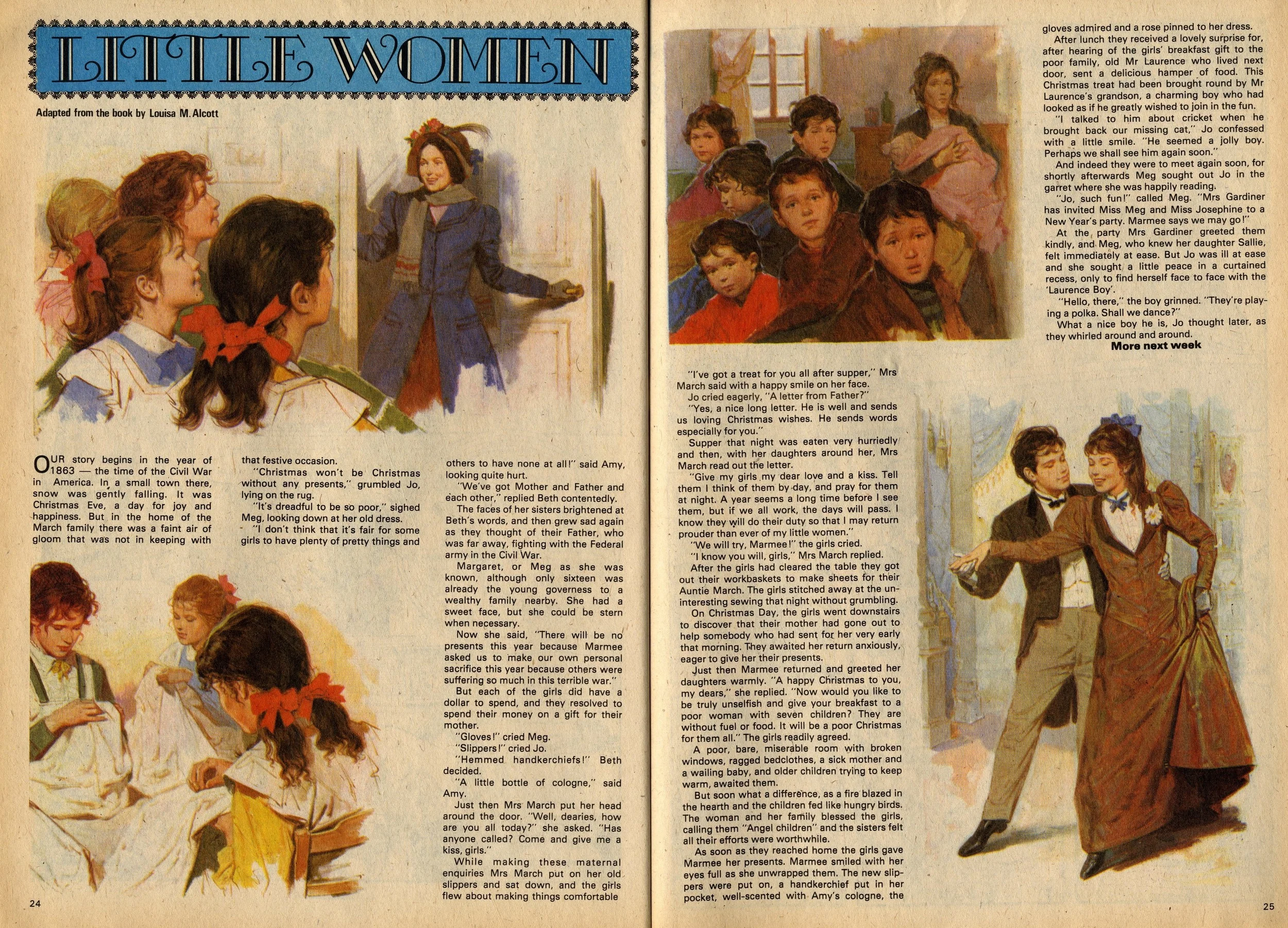 In fact, contrary to what the cover suggests, this is not a comic only to be enjoyed by mid-Primary age girls. It contains some good stories, with scripting and artwork as good as anything else one is likely to find in 1979. The comic fits very clearly in the genre of Jinty (with which it would eventually merge) and Tammy – a little bit of angsty drama, a bit of humour, some historicals, some mysteries, some pets and some craft articles – with a few signs that its aimed at a slightly more junior level (the stories’ protagonists look a bit younger, and features such as the Enid Blyton’s Secret Seven adaptation and the Little Women text story are a bit more childish).