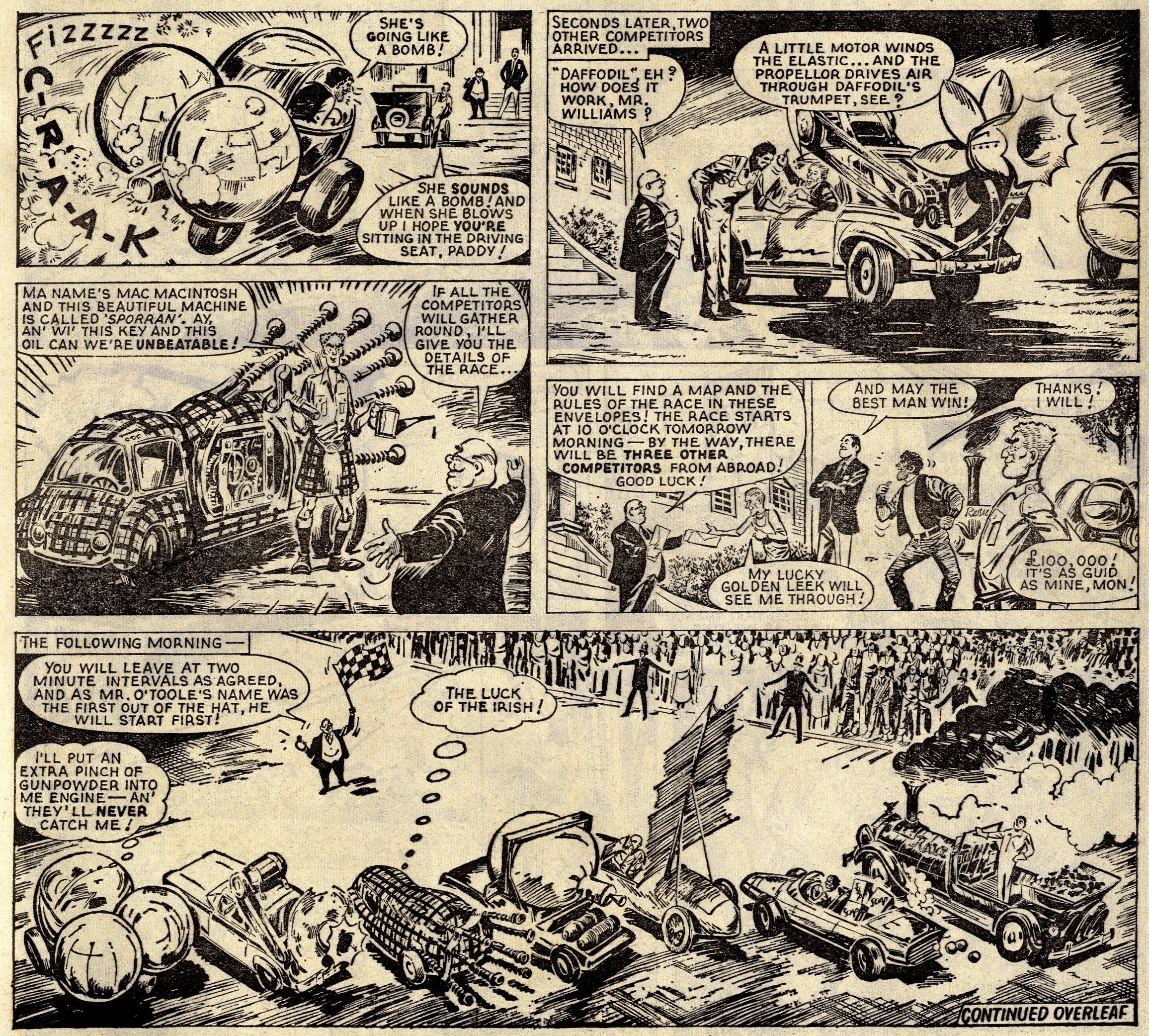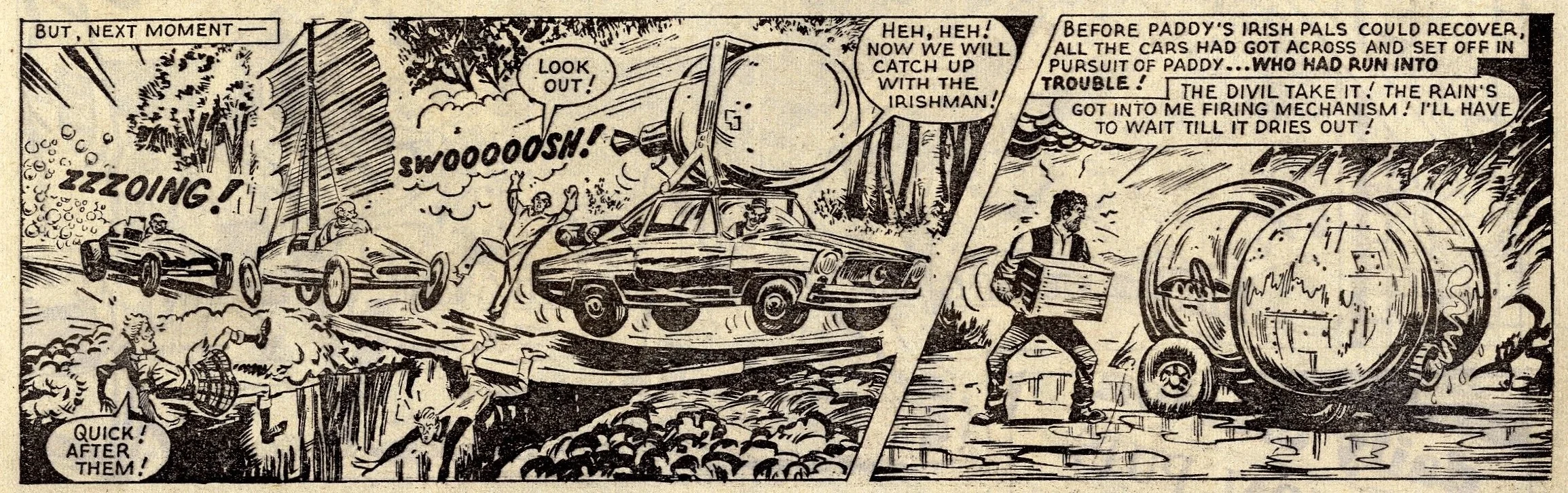 Of the rest, Crazy Car Capers looks like the sort of strip I would have enjoyed as a kid – an ongoing serial about a Wacky Races-style race around Britain ‘for cars of an unusual design’. Sadly, it’s also an example of the main thing that’s not so great about Jet – namely national stereotyping. Irish, Scots and Germans get the worst deal (one wonders whether much has really changed 45 years on).