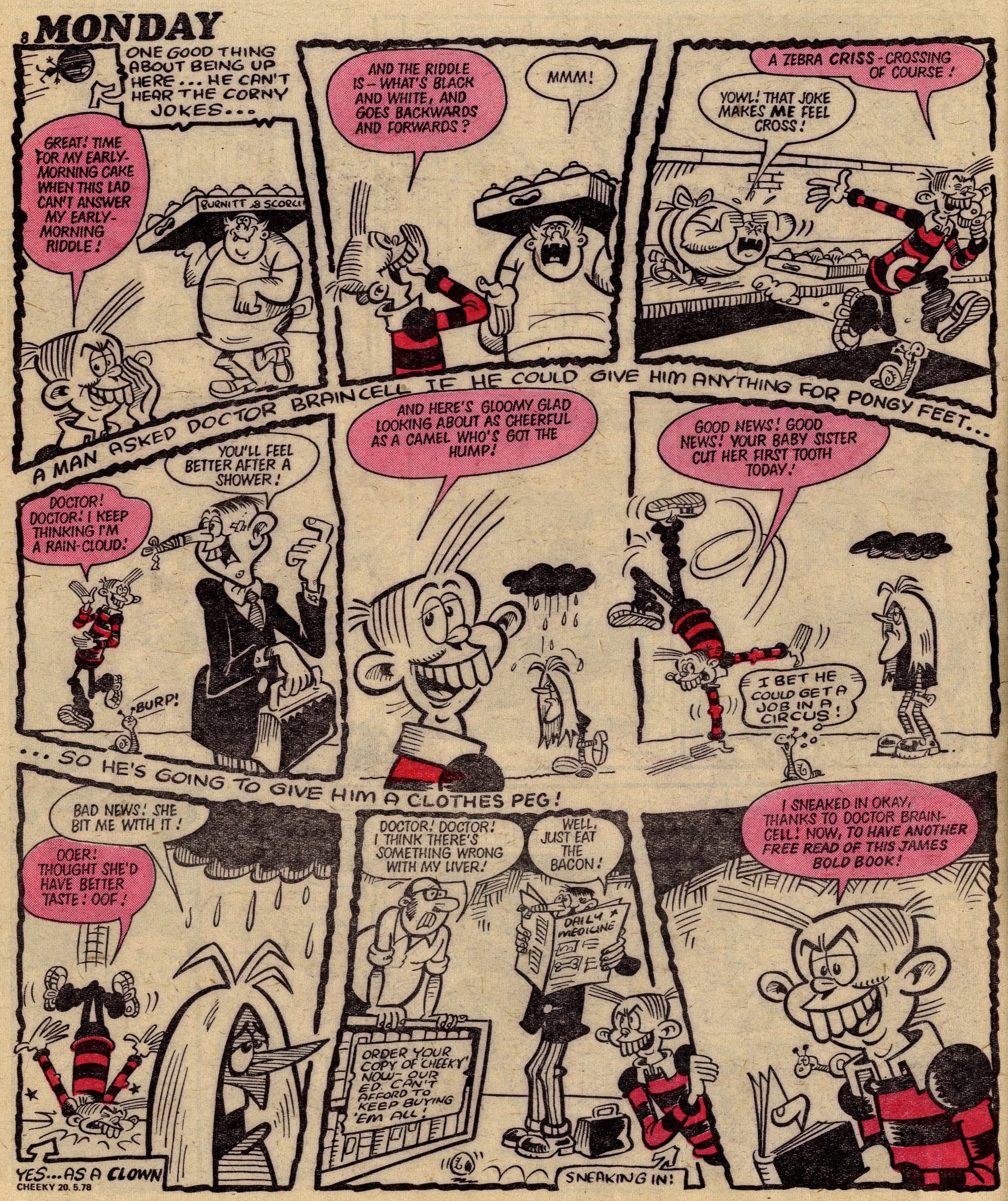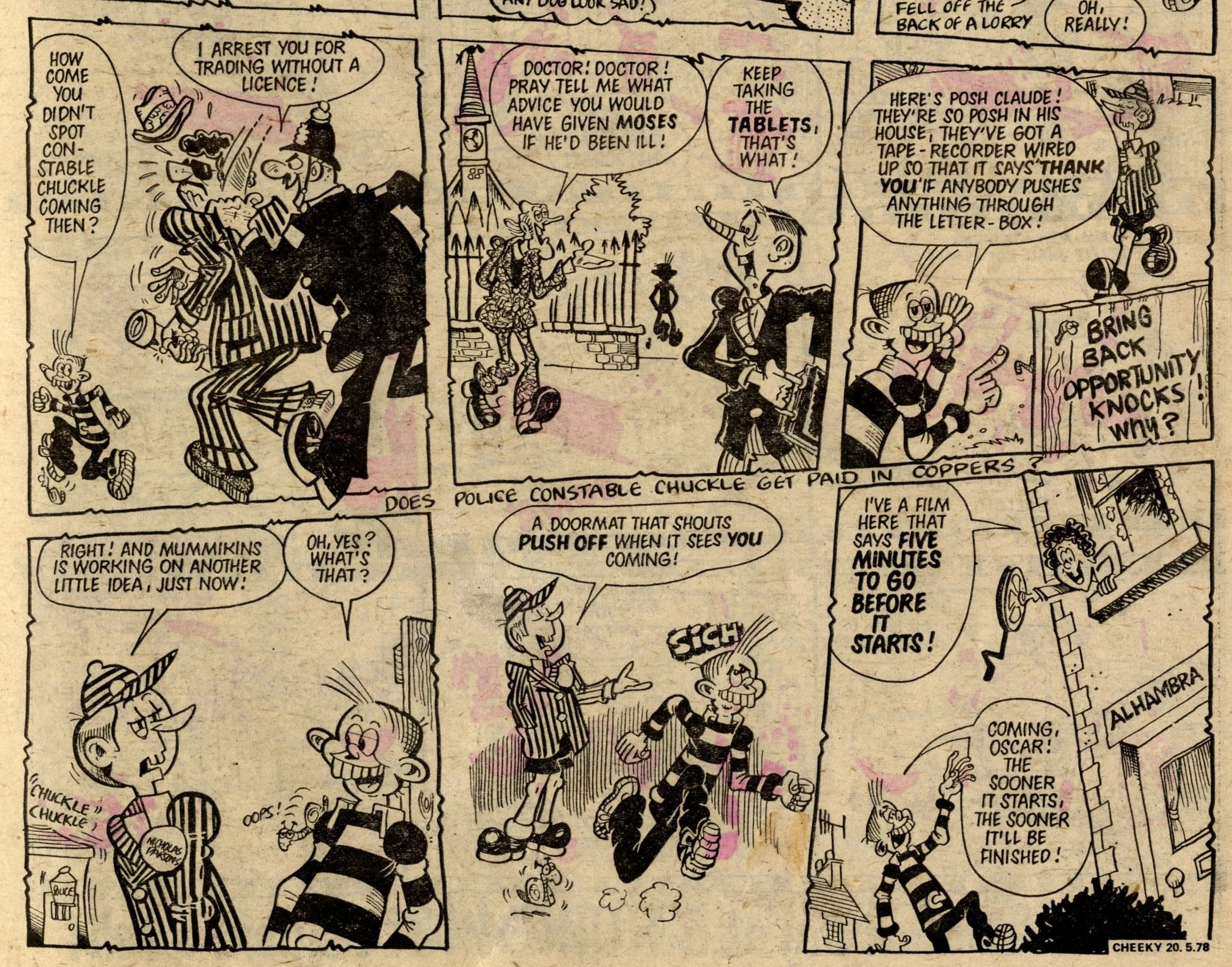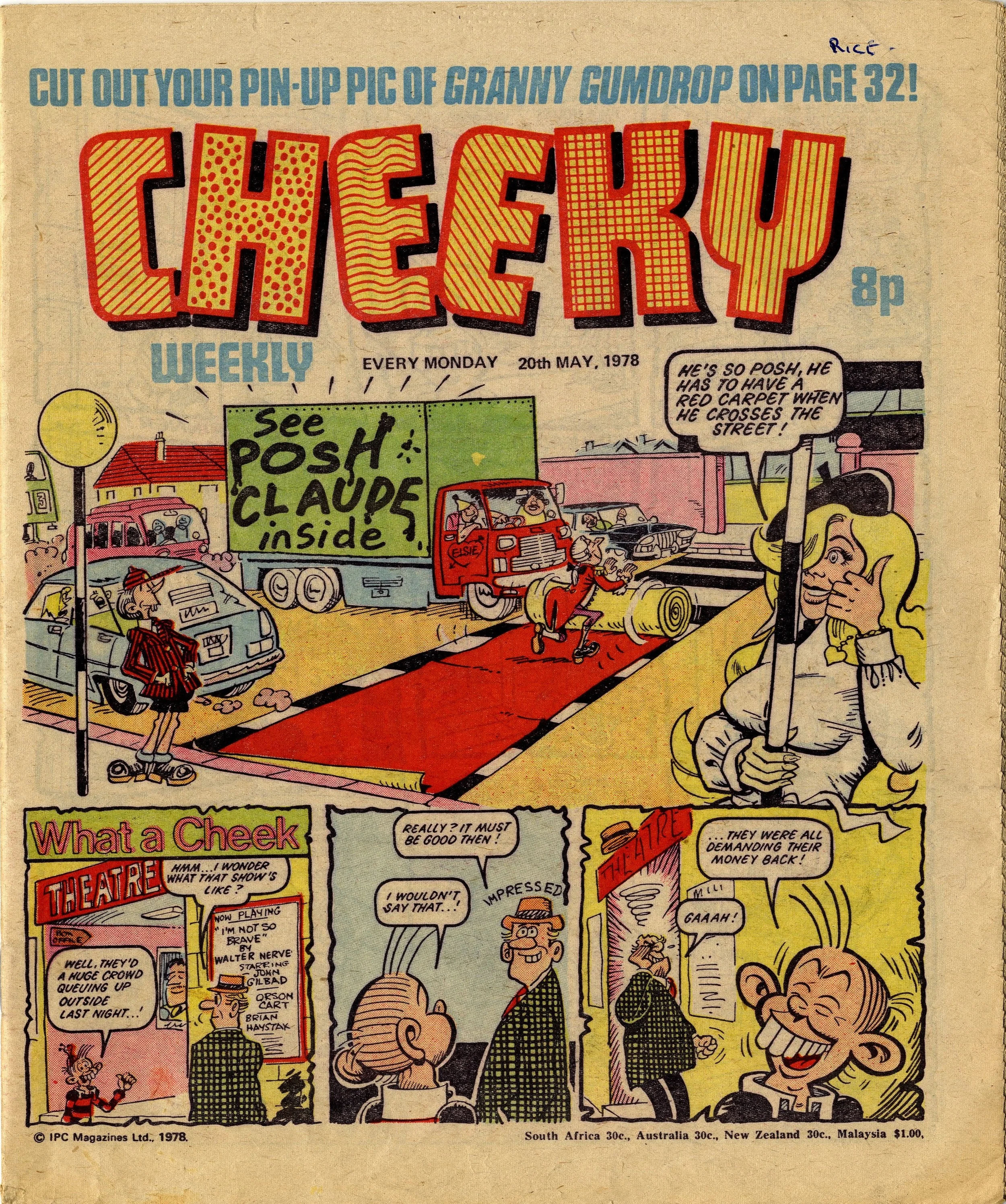 On this day, 20 May 1978 … This week Cheeky has mostly been classist (Posh Claude), sexist (Lily Pop), lookist (Ursula the Usherette) and ageist (Granny Gumdrop). Actually, maybe not so ageist, as needle-knocking, back-page poster star Granny Gumdrop is represented as quite a positive, dynamic character, and I don’t have any problem with the classism as I’m all for a bit of snob-bashing. But it can’t be denied that there’s a lot of discriminatory humour in Cheeky – possibly more so than in any other IPC comic from this time.
