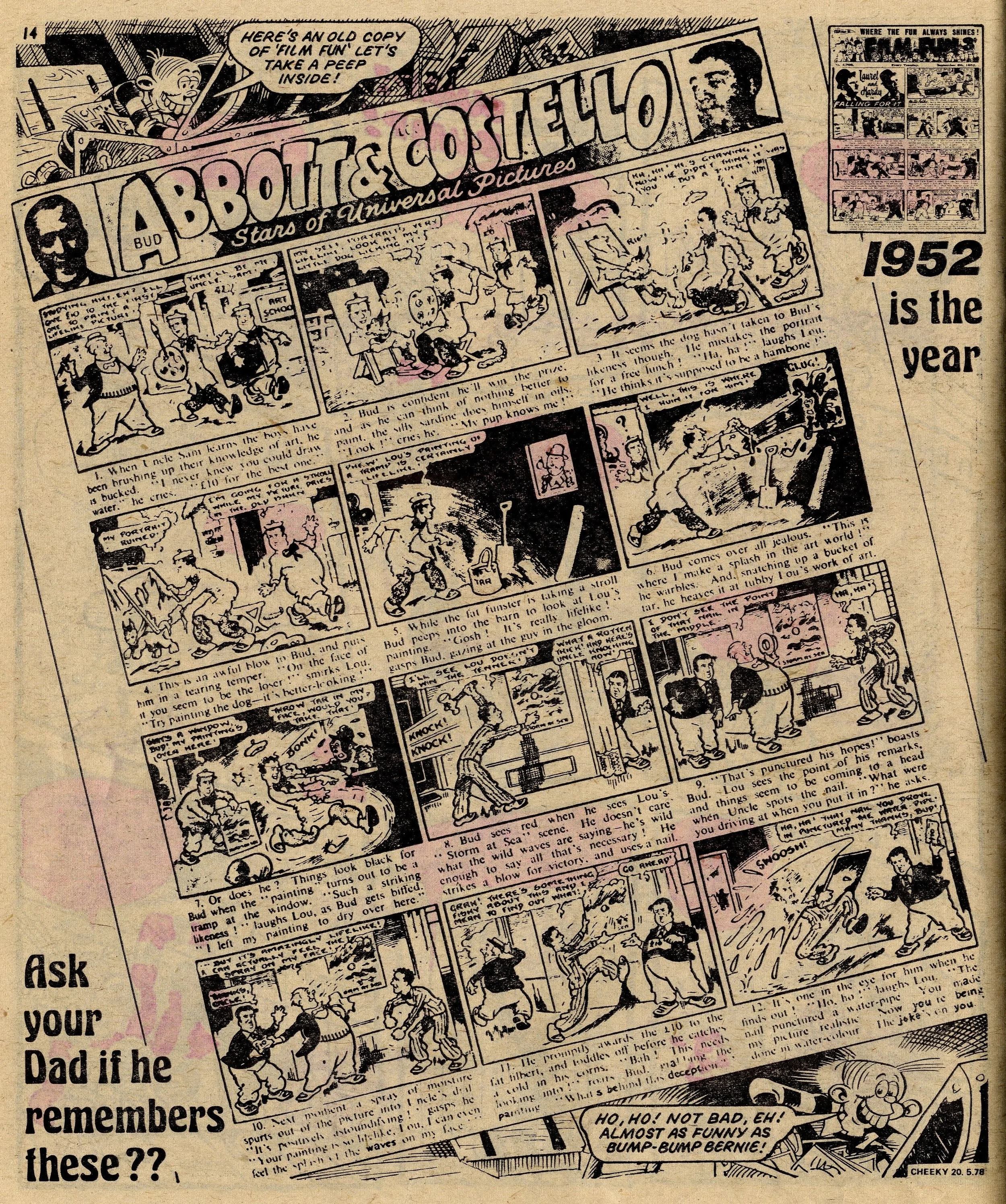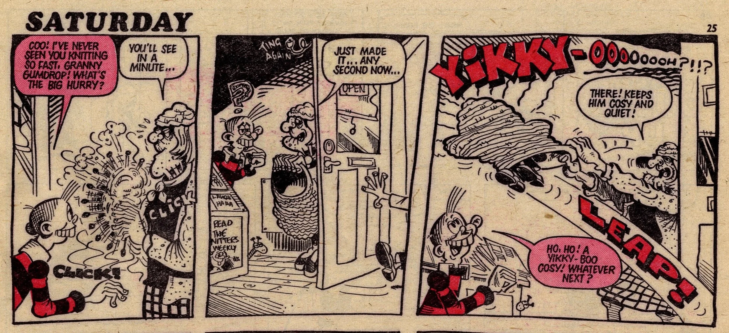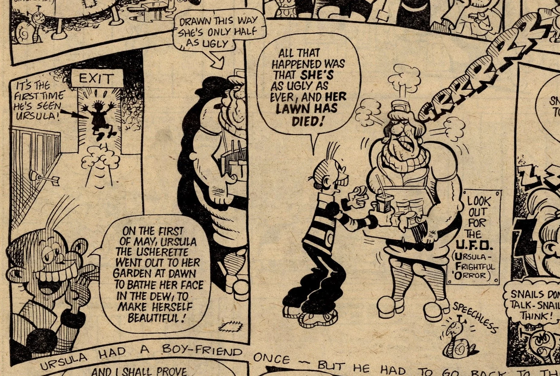 On this day, 20 May 1978 … This week Cheeky has mostly been classist (Posh Claude), sexist (Lily Pop), lookist (Ursula the Usherette) and ageist (Granny Gumdrop). Actually, maybe not so ageist, as needle-knocking, back-page poster star Granny Gumdrop is represented as quite a positive, dynamic character, and I don’t have any problem with the classism as I’m all for a bit of snob-bashing. But it can’t be denied that there’s a lot of discriminatory humour in Cheeky – possibly more so than in any other IPC comic from this time.