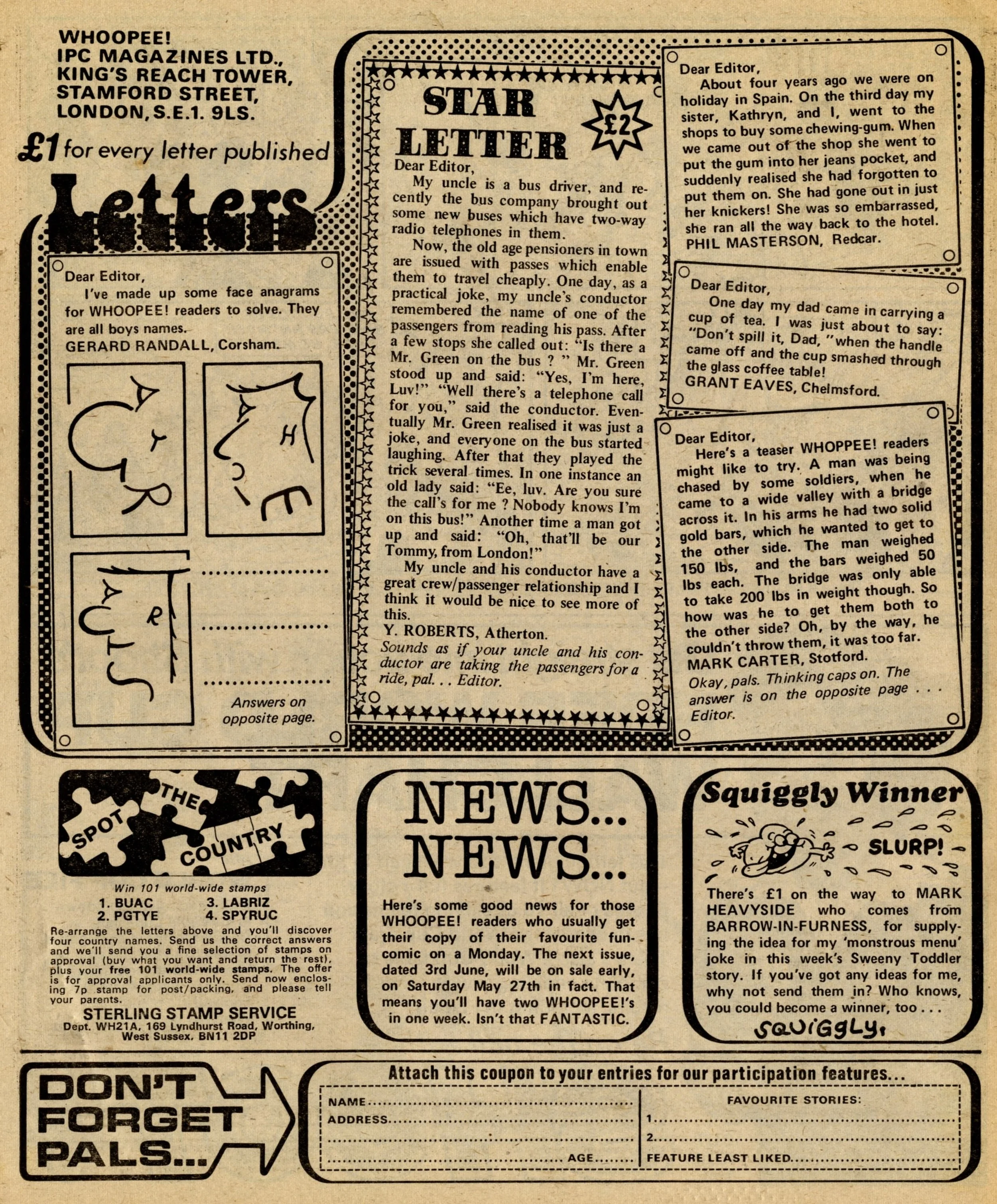 On this day, 27 May 1978 … There’s a cool Top Tip in today’s Whoopee!: ‘Dear Editor, For those readers who enjoy writing, but find plain paper a bit boring – why not cut out the characters from Whoopee!, and stick them along the top of the paper? You can also stick one on the envelope. It looks really great!’ Nice one, Julie Gillis from Hemingbrough. Ignoring the sacrilege of cutting up a precious cultural artefact, this is pretty much the thinking behind my blog. Words are great, but the outstanding artwork of IPC’s artists should be celebrated for ever and sent all around the world.