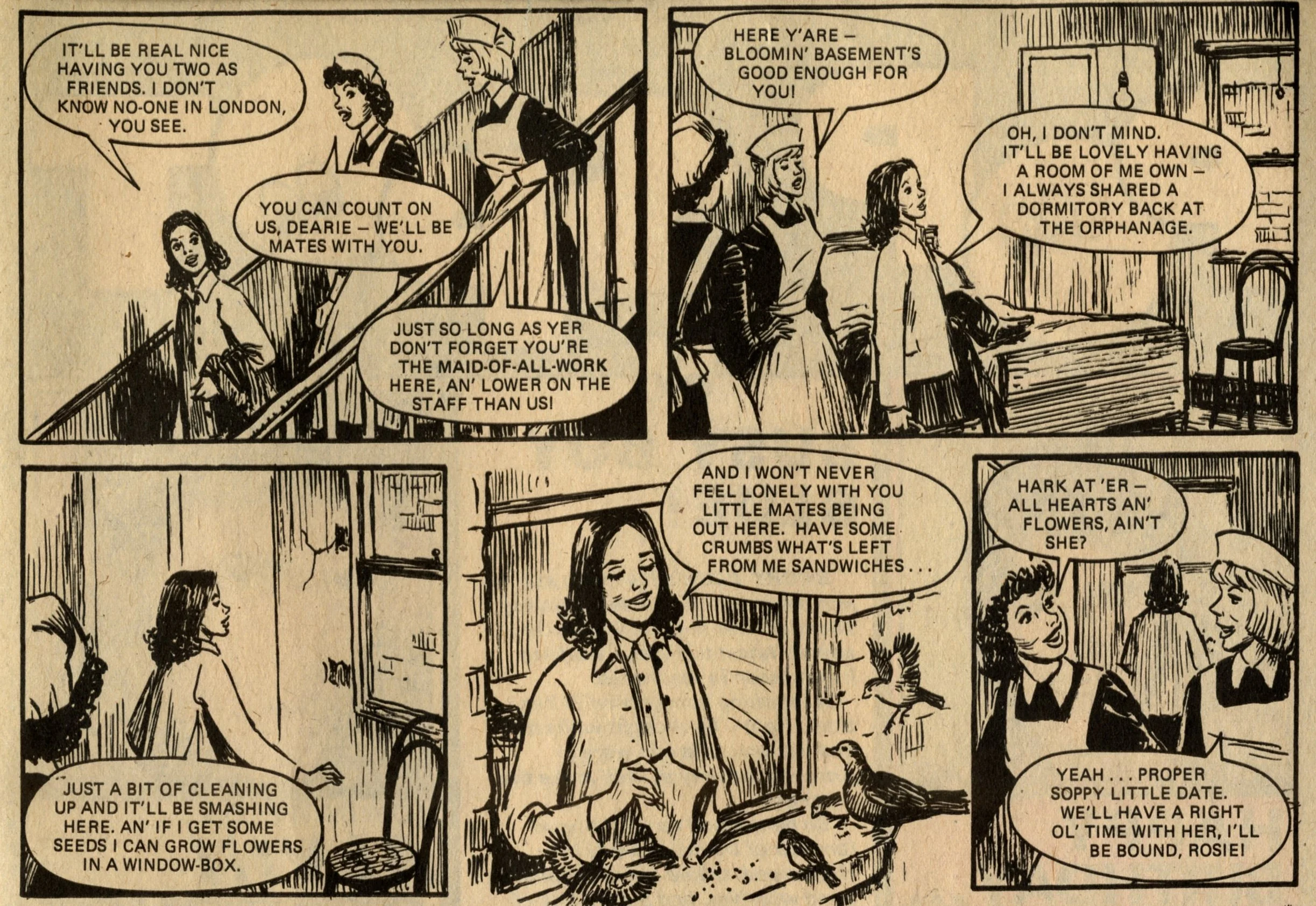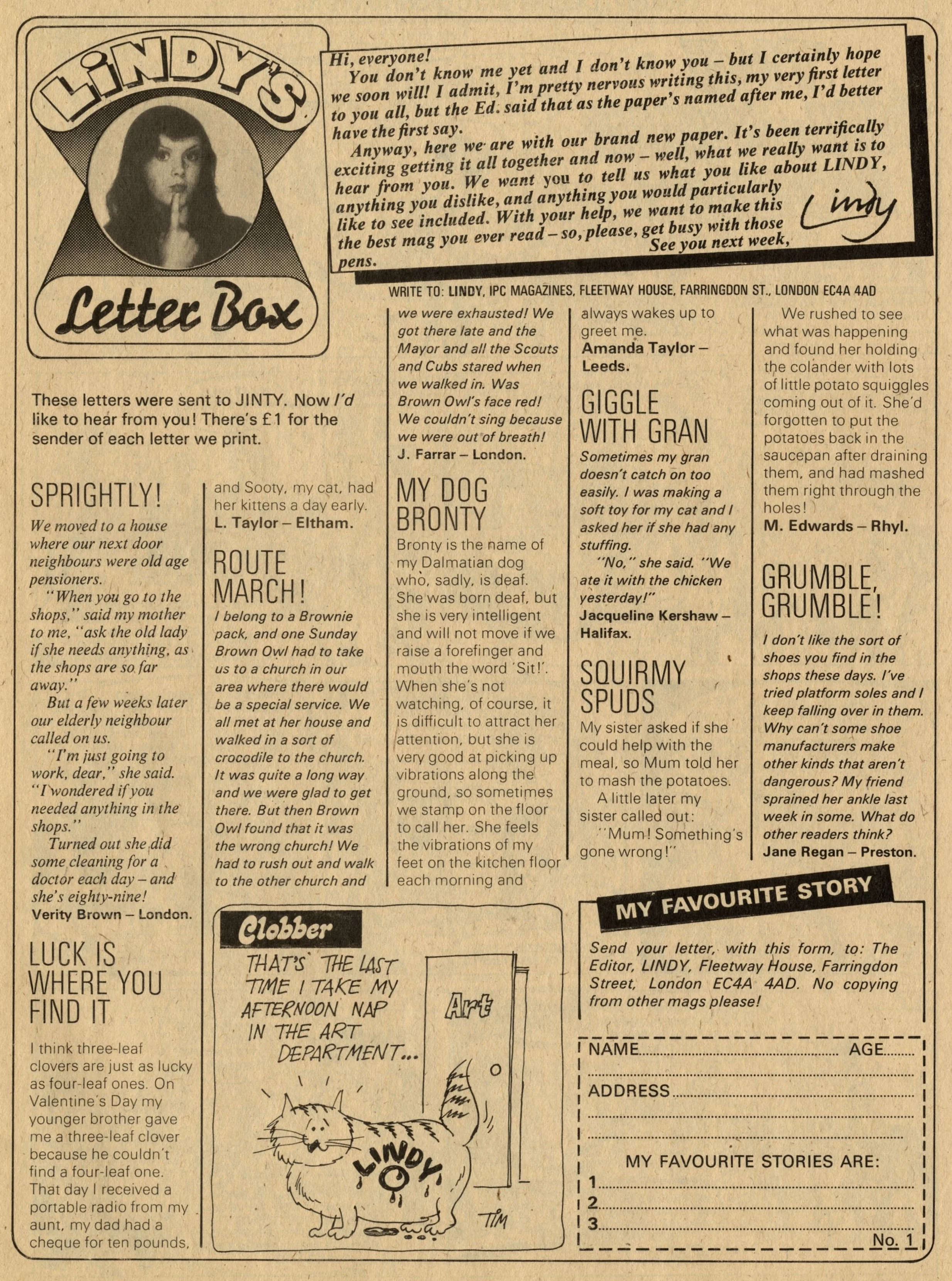 Thanks to A Resource on Jinty for help with the creator credits below, although I should note that I’ve taken these from their notes on the second issue of Lindy, so I hope they are indeed the same artists in issue one.
