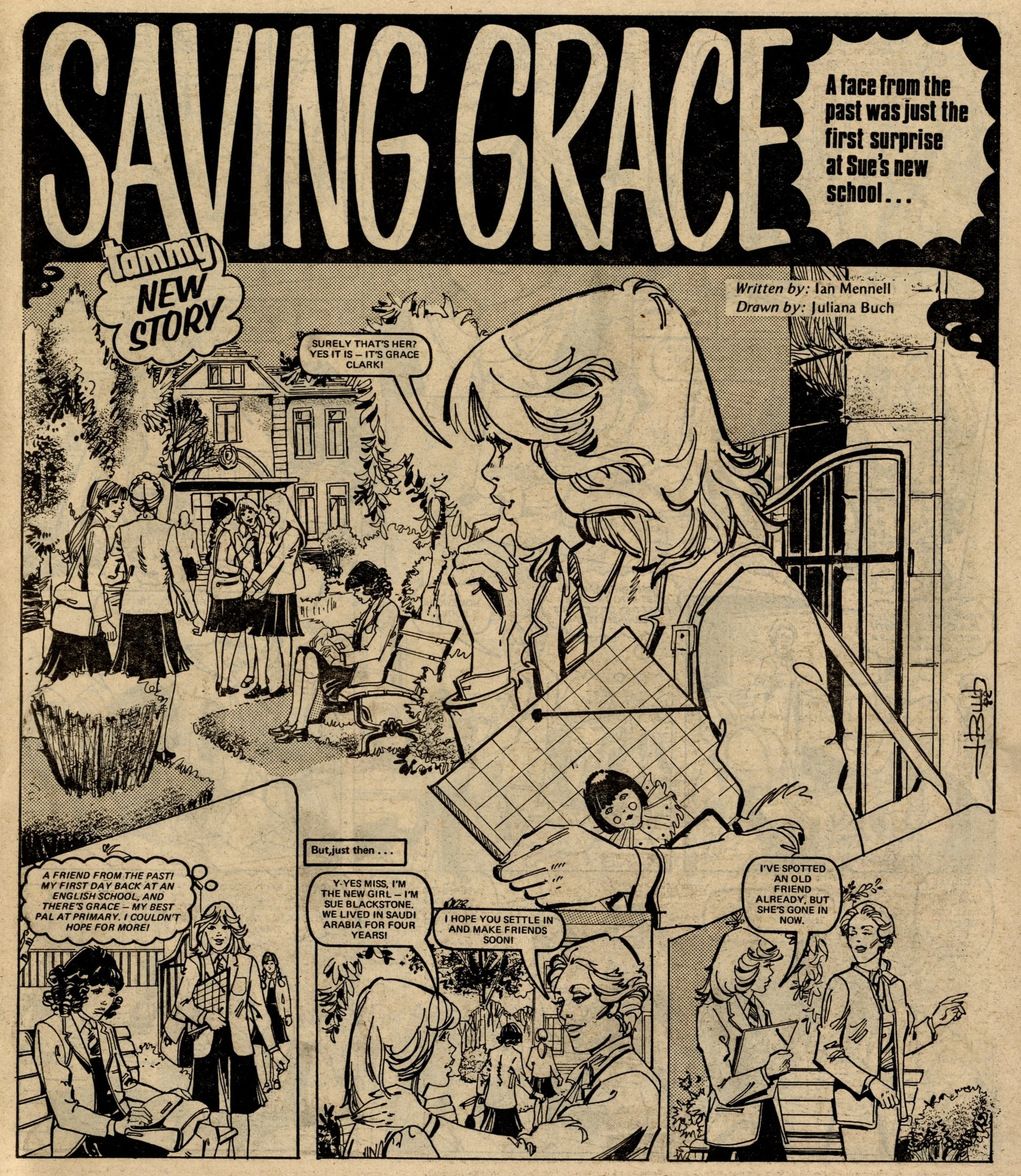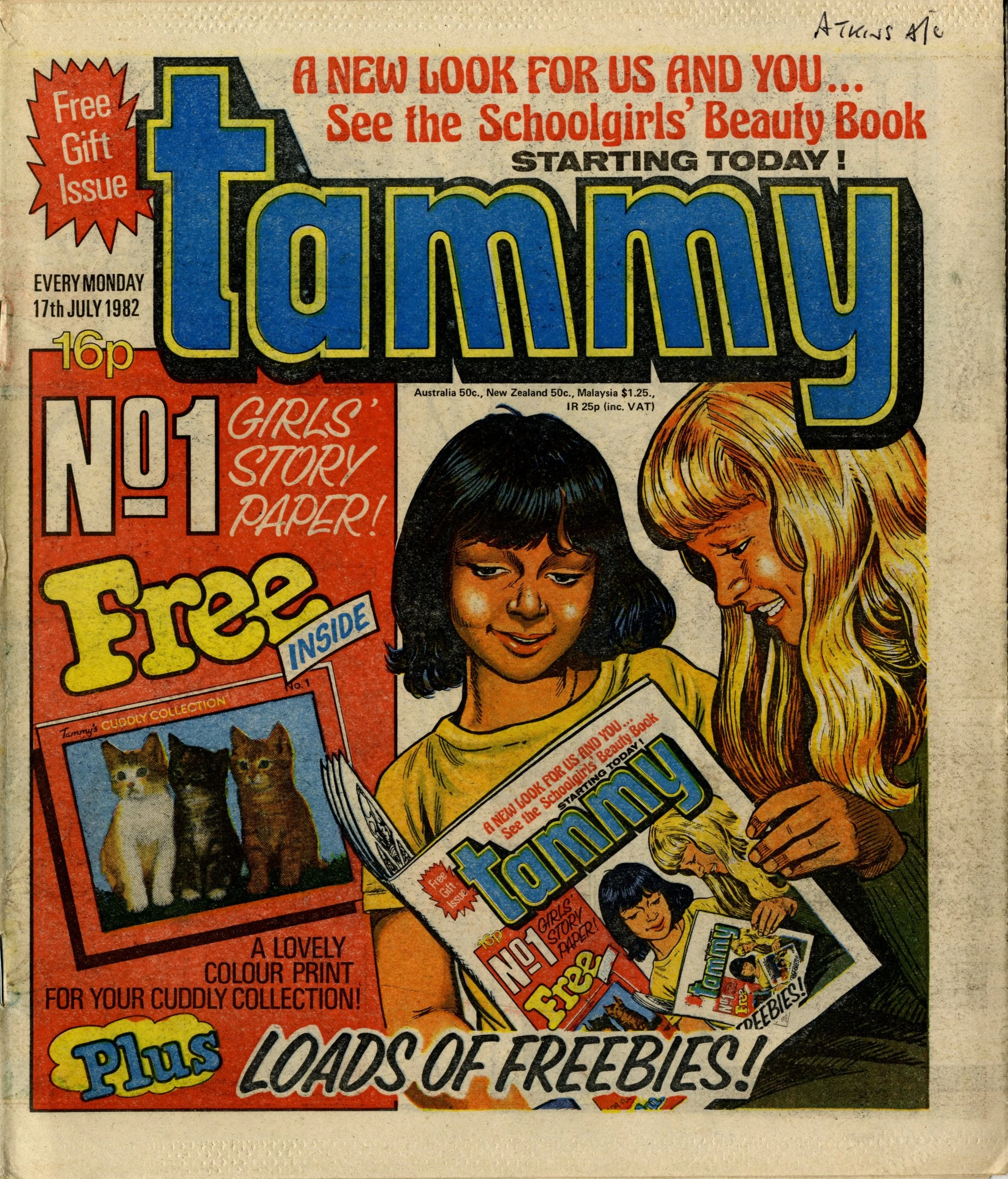 On this day, 17 July 1982 … IPC rationalised and reduced the number of its comics during the 1980s and the process appears to have begun earlier in the girls’ division than in boys’ or the humour comics department. By 1982, the likes of Jinty, Misty and Penny (via Jinty) had all folded into Tammy, which existed for a while as one of only two girls’ comic titles (with the exception of the very short-lived Dreamer) – the other being Girl, which ran from 1981 to 1990. Until this week’s edition, Tammy had shared its masthead with Jinty (after their merger in November 1981) but this was the issue in which it abandoned all references to the past and re-launched with several new stories and a sharp new look.