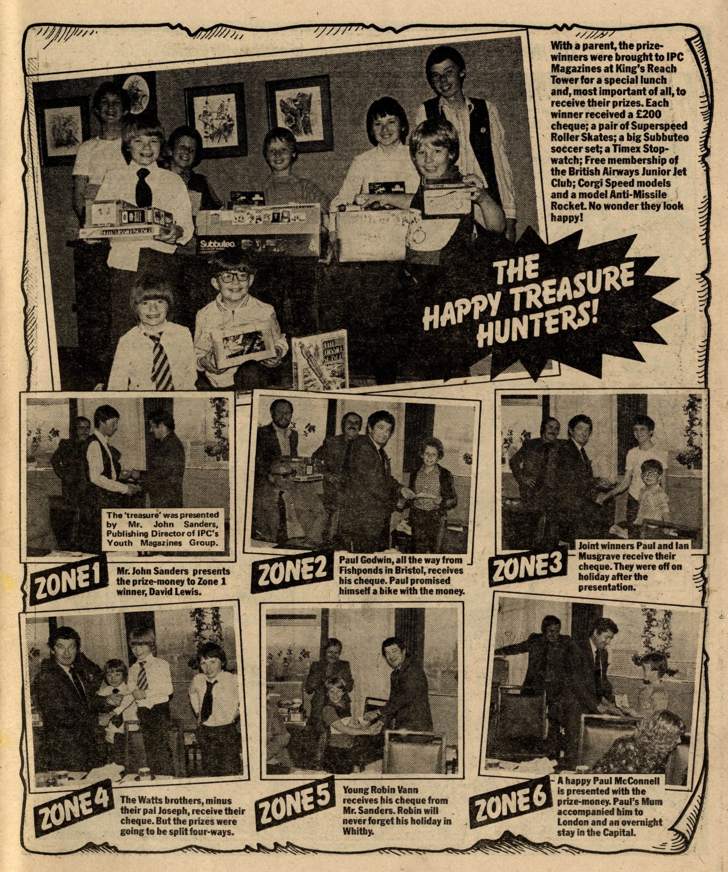 Still, it was an ambitious and original promotion and fun to read about even today, so respect to Mr Hunt for running the competition. There’s still more that I’d like to know about it. Who from IPC went travelling all over the country to bury the secret codes? Did they do it undercover of darkness? How many people actually tried to find the codes after the final clues were published? Were there swarms of kids out on the streets and the moors, as there seem to have been since Pokemon Go launched last week? I enjoyed the story of the Watts brothers who found the Zone 4 code in a ruined house near the Bronte Museum after seeing some other poor soul poking about at the spot but failing to find the prize.