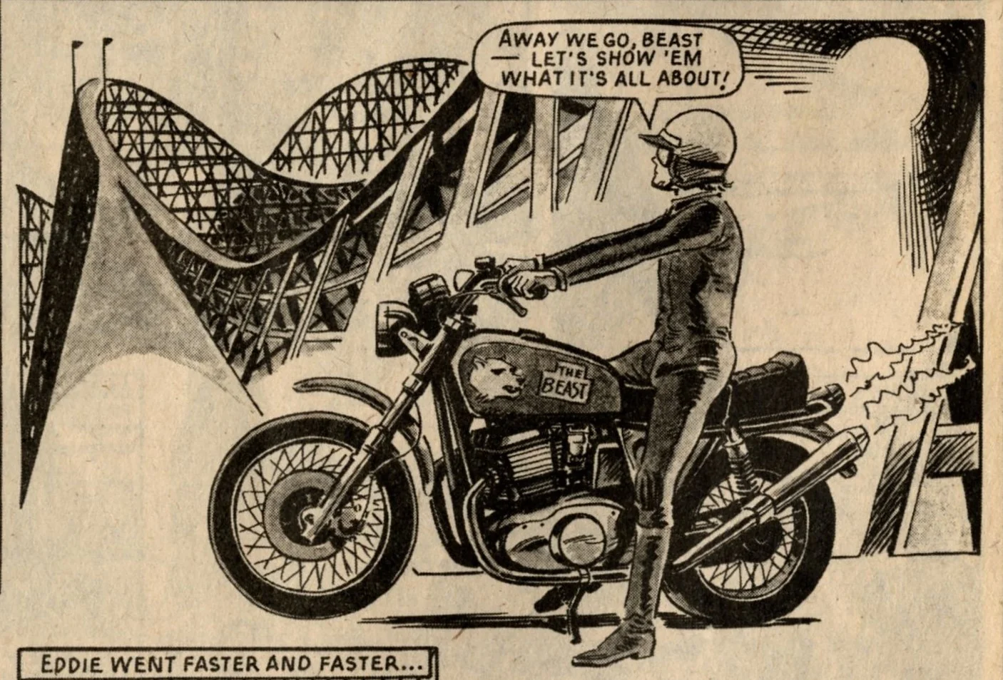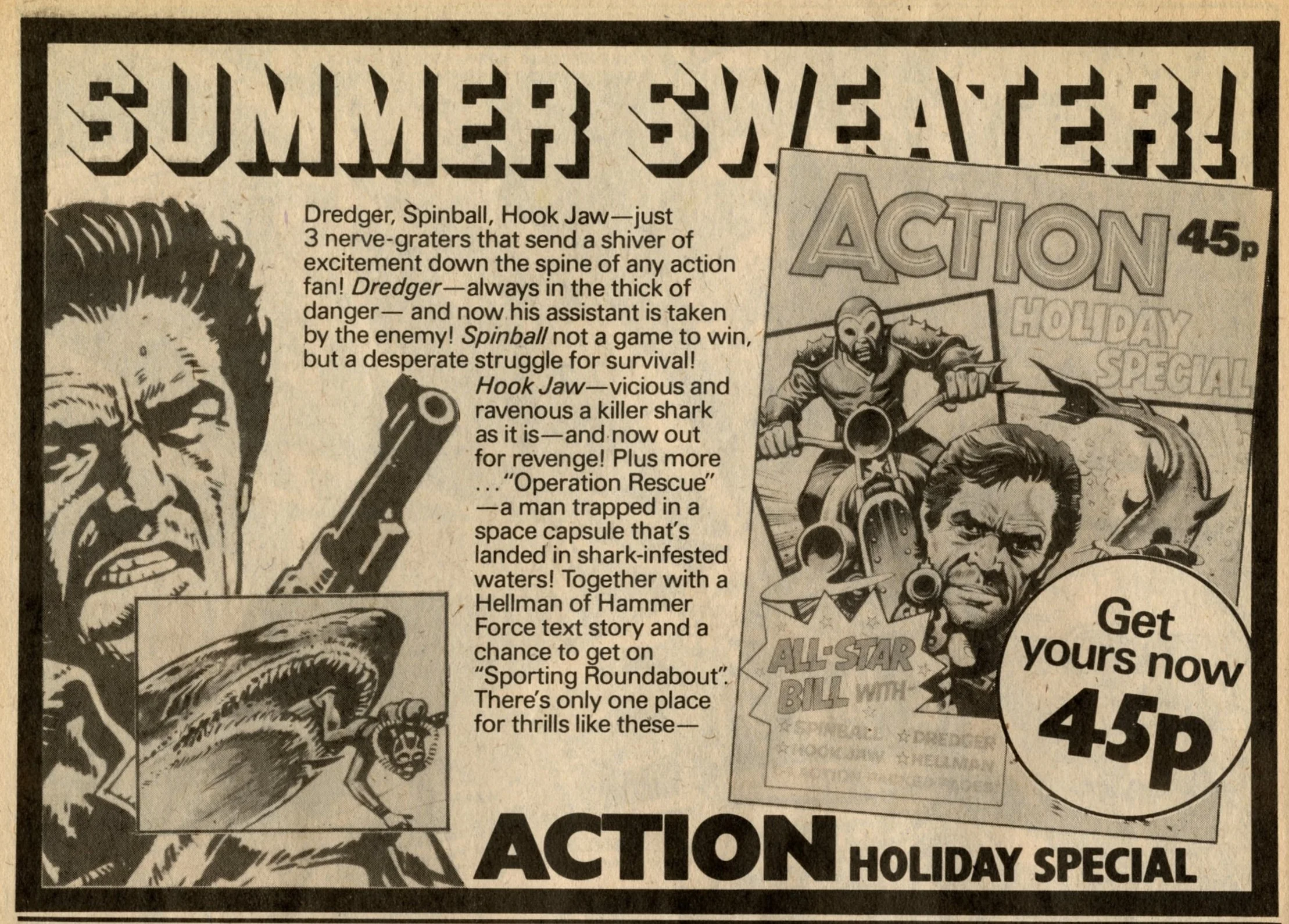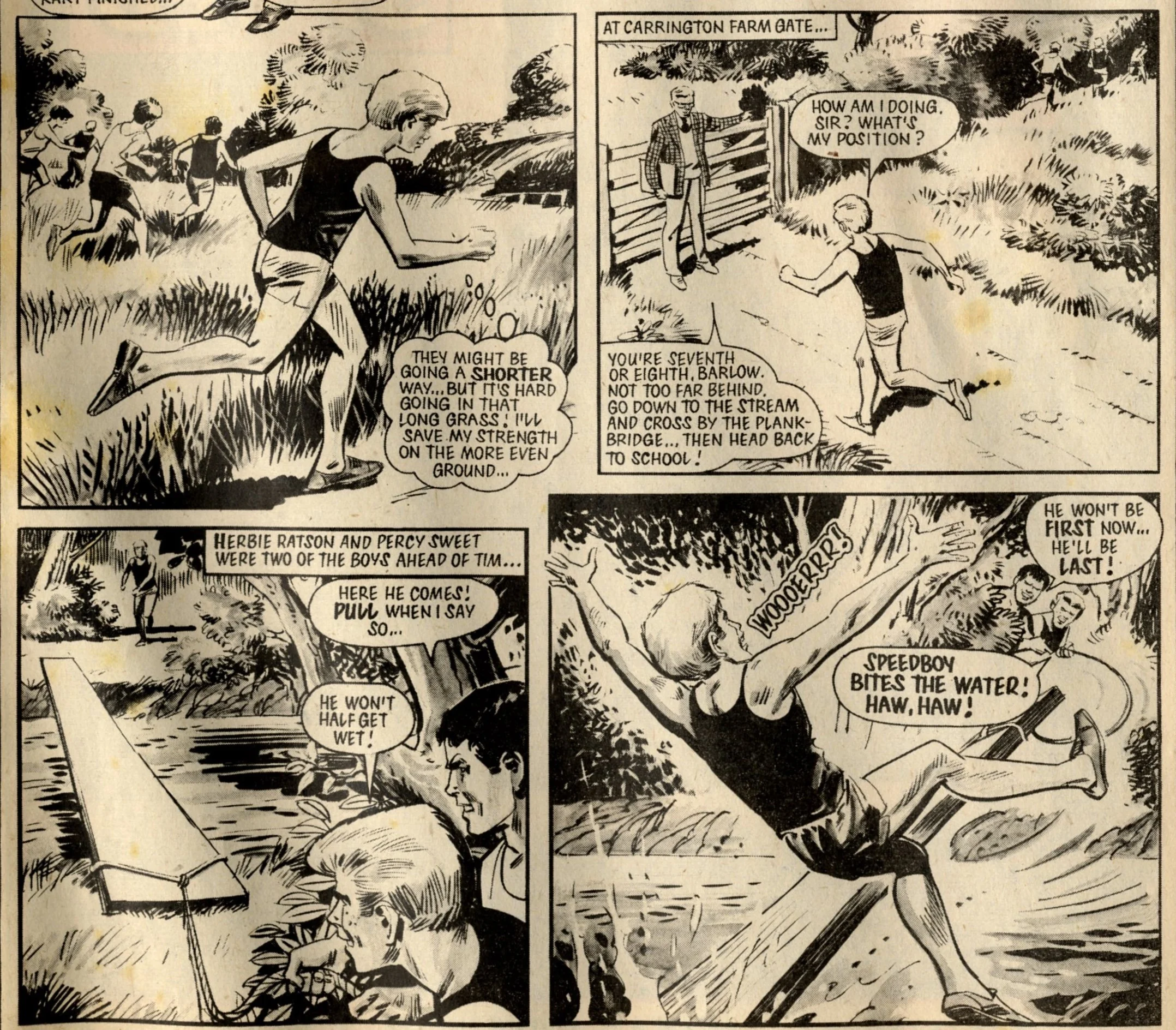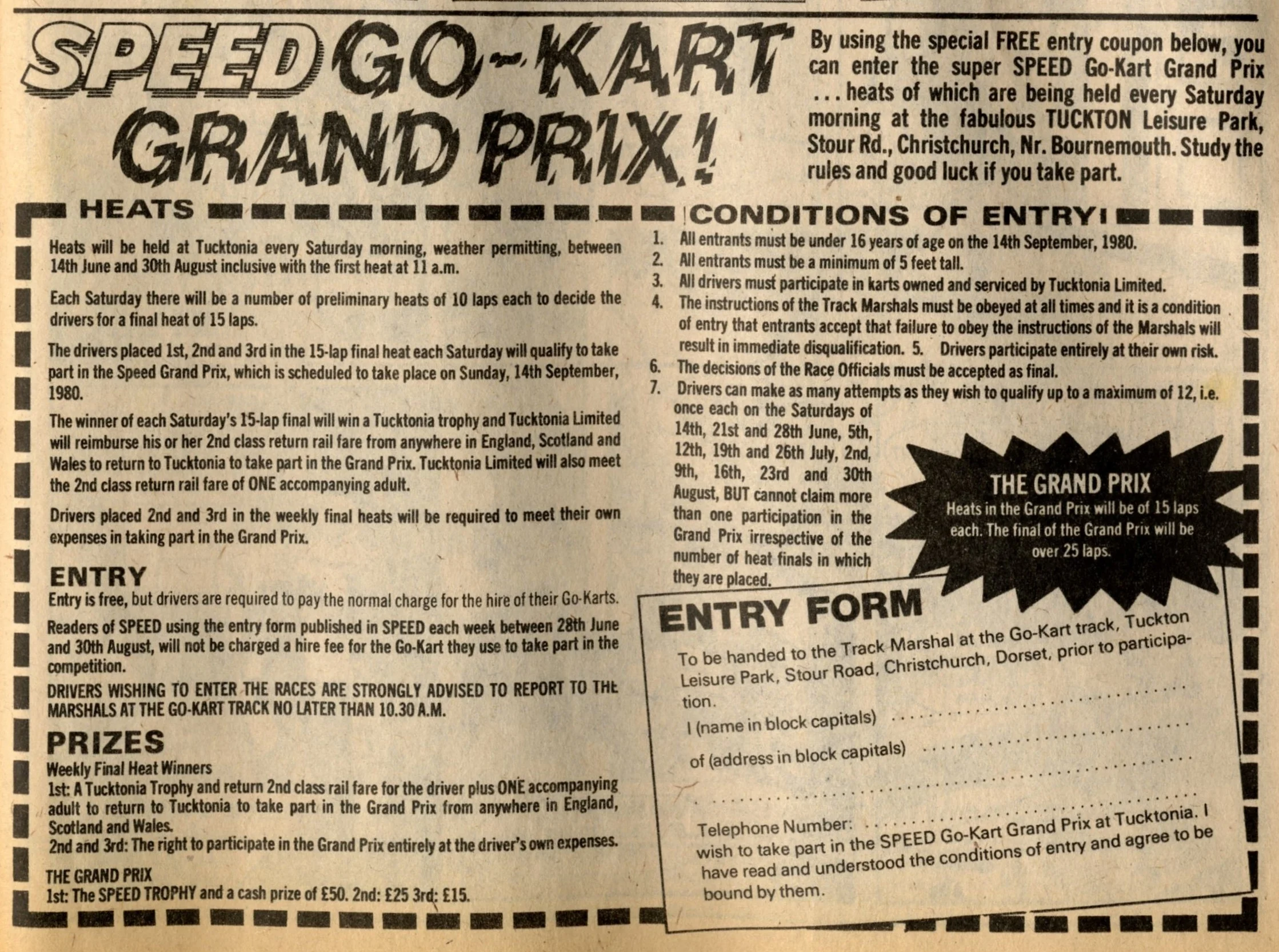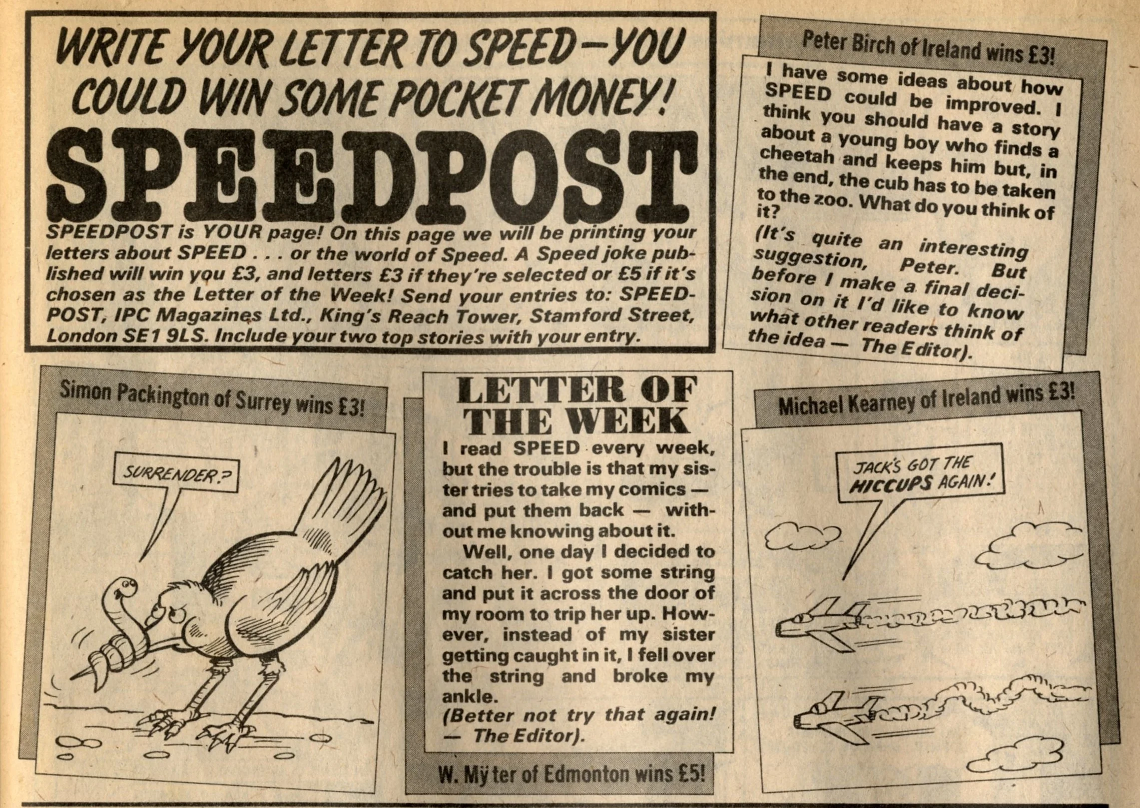 The treasure hunt is a good example of what seems to have been a genuine desire to encourage kids to be active. The Speed Go-kart Grand Prix advertised below is further evidence of this (although, like the treasure hunt, could only have been participated in by readers living in or close to a certain geographical location - in this case Christchurch in Dorset), and the popular strip Speedboy could also be seen to be an attempt to inspire readers to put down their comic and go out and do something less boring instead. I don't think any of the other comics in the IPC range were quite so evangelical about this as Speed (some had their own missions: Look and Learn wanted us to improve our minds, Jinty wanted readers to do lots of crafts, Jackpot wanted us to enter loads of competitions, Action was keen for us to assault officers of the law and Cheeky wanted us all to be as annoying as hell), so good on them. It's a shame the comic didn't last longer.