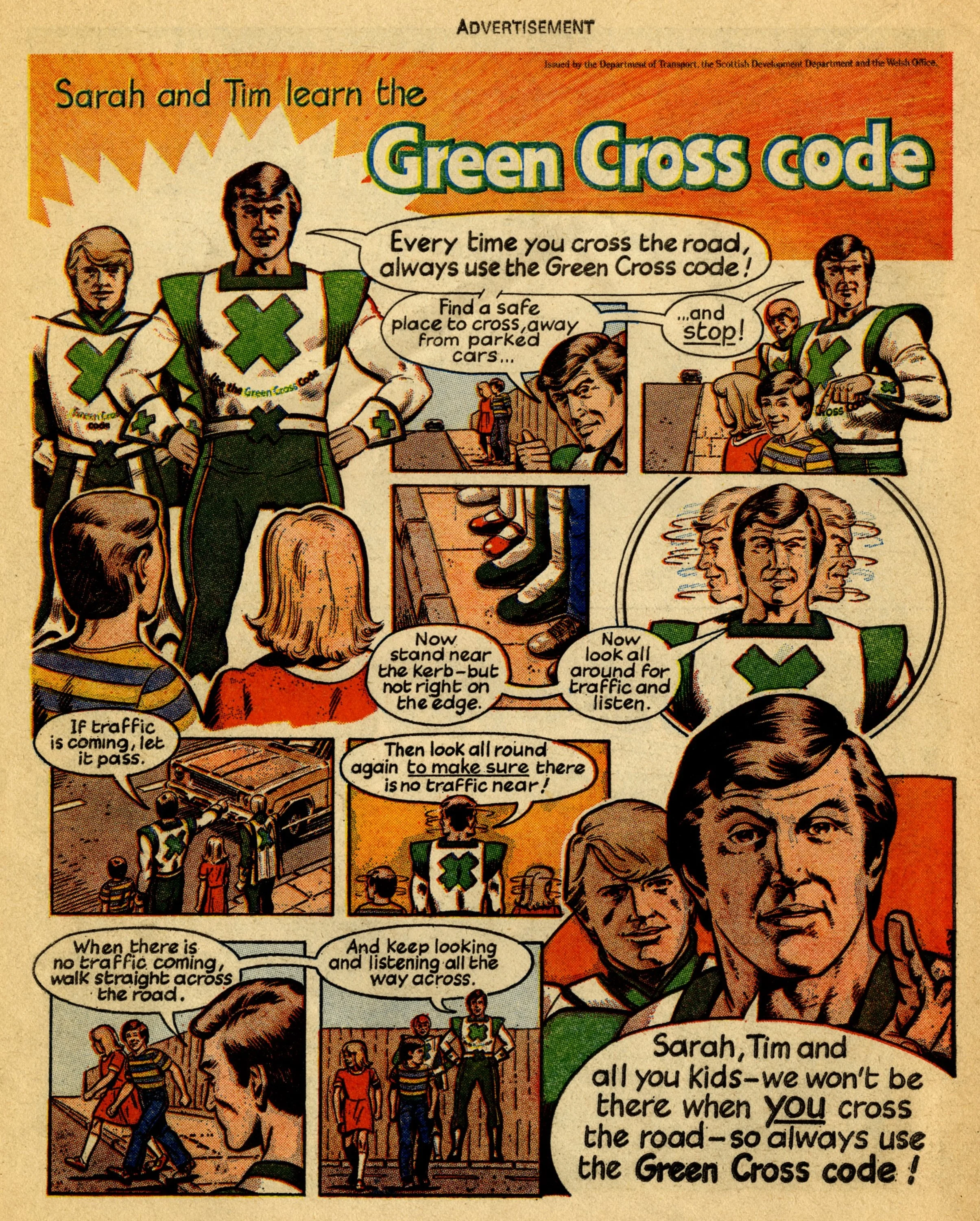 This month, Rebellion will be publishing this episode of Judge Dredd, plus three others (the first part of the ‘Burger Wars’ storyline from Prog 71, and the two-part ‘Soul Food’ storyline that followed in Progs 77 and 78), in Judge Dredd: The Cursed Earth [Uncensored] – the first time these pages will have seen print since a threatened lawsuit from the owners of Jolly Green Giant’s copyright forced IPC to print a full retraction to their monstrous representation of the big pea guy in Progs 77 and 78 and promise never to reprint them again. There had been – according to art editor Kevin O’Neill, interviewed for David Bishop’s Thrill-power Overload – no complaints from either McDonalds or Burger King, but it was deemed prudent to withdraw the Burger Wars from all future reprints of the Cursed Earth storyline also. Rebellion have thankfully decided that recent publishing law allowing the use of copyrighted properties for the purpose of parody means that the Cursed Earth can now be published in full for the first time ever, so this will be great to see, along with a new introduction to the volume by John Wagner. If stocks are still available you can ‘go large’ with the sumptuous signed bookplate edition that comes with an A3 poster of the lovely uncoloured Mike McMahon centre-page spread featured below. And extra fries*.