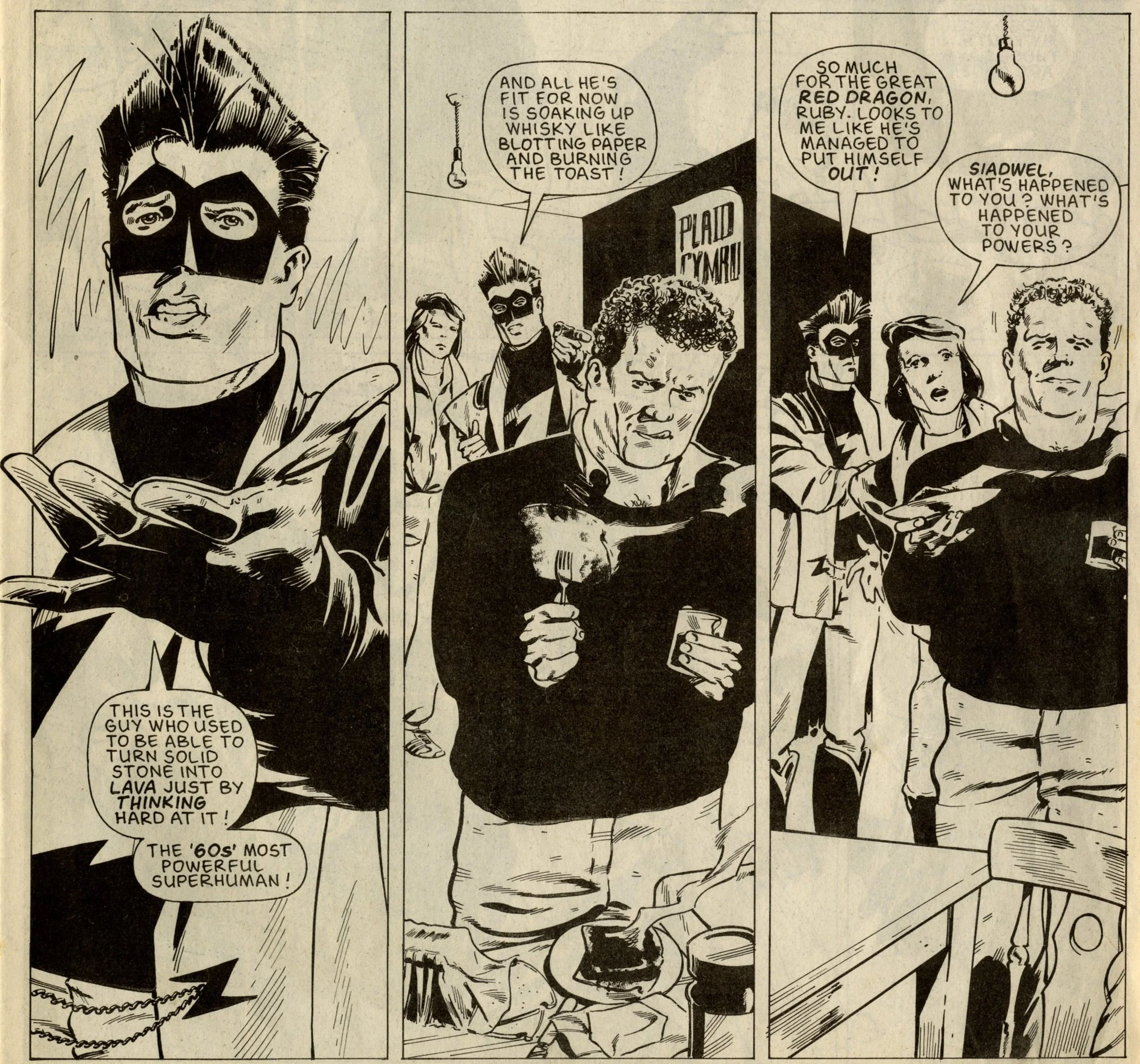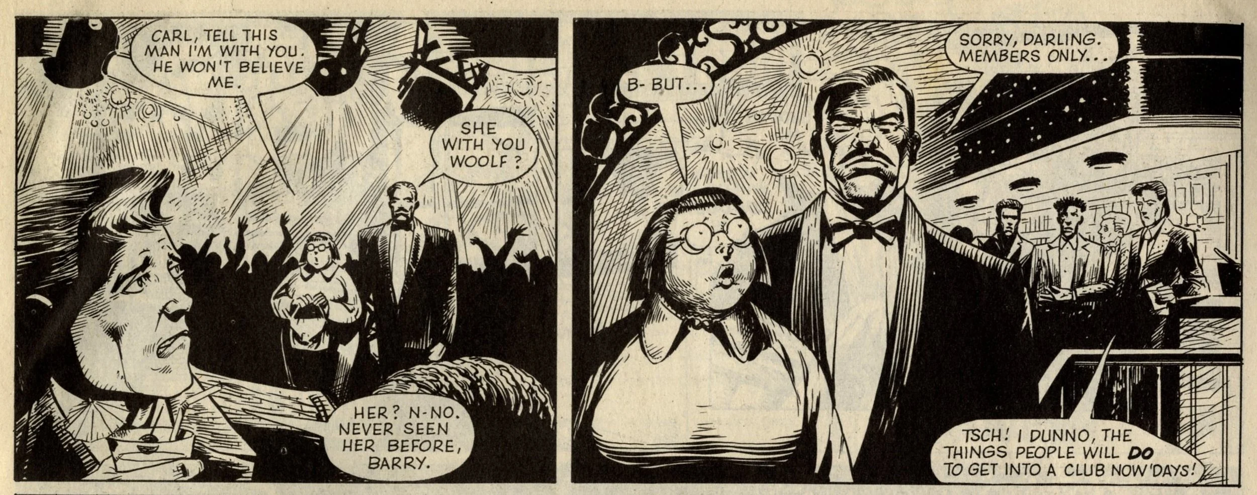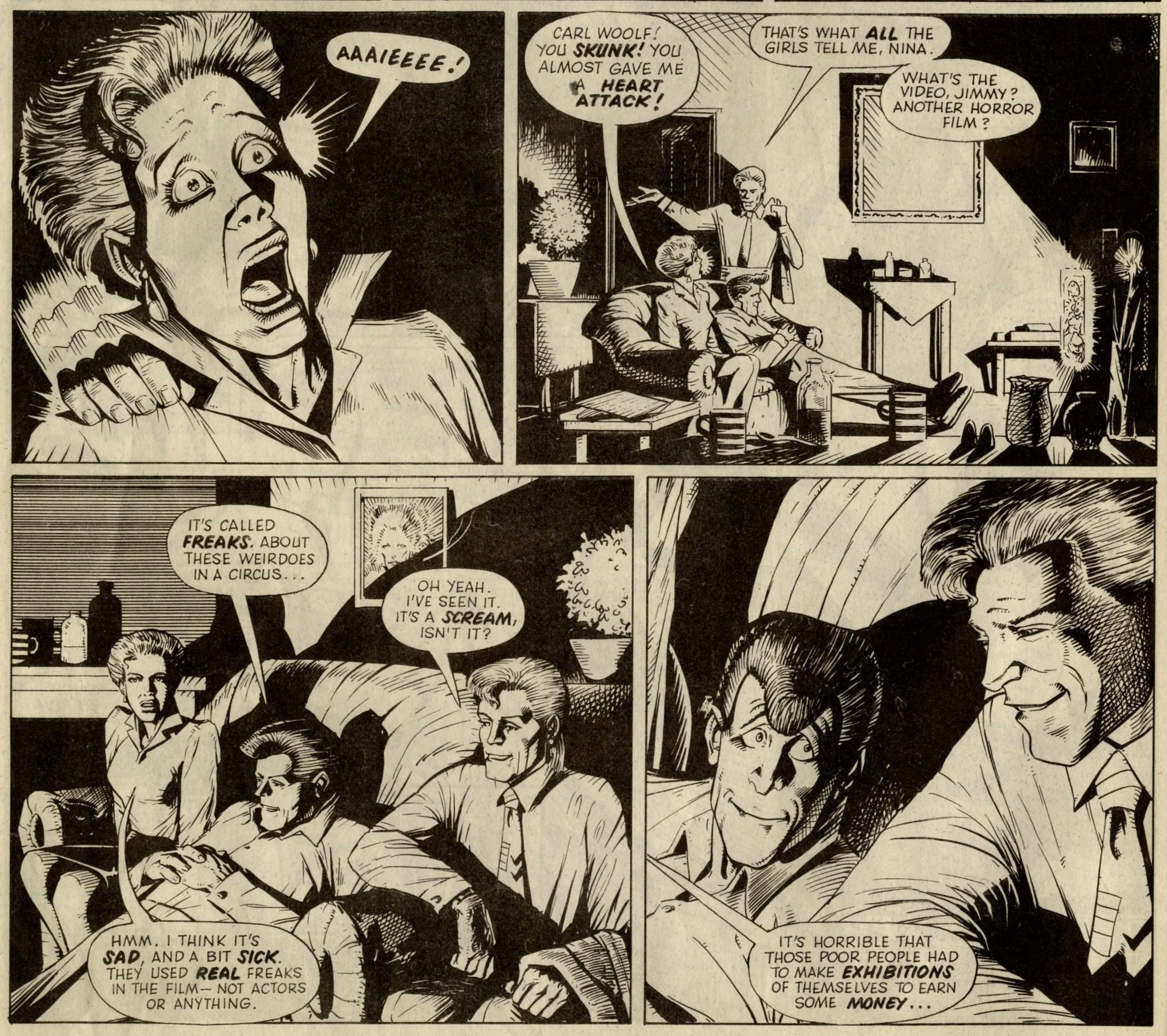 I don’t look too often at issues of 2000AD from the later 1980s, first-class though many of them are. I think that’s probably because they feel a bit more grown-up than the majority of the comics featured on the blog. 2000AD was, very wisely, maturing at the same rate as its first wave of readers – an editorial decision that surely was crucial in the title’s survival after the crash of children’s comics publishing around the end of this decade. This prog is a great example of how the comic was changing. If the early years were characterised by an iconic roster of now legendary artists – Bolland, Ezquerra, McMahon, O’Neill, Belardinelli, etc – this issue showcases the work of a new wave of equally talented artists: Liam Sharp, Steve Yeowell (on Grant Morrison’s Zenith), Will Simpson, Colin MacNeil and John Higgins (the latter drawing the first episode of Peter Milligan’s Freaks).