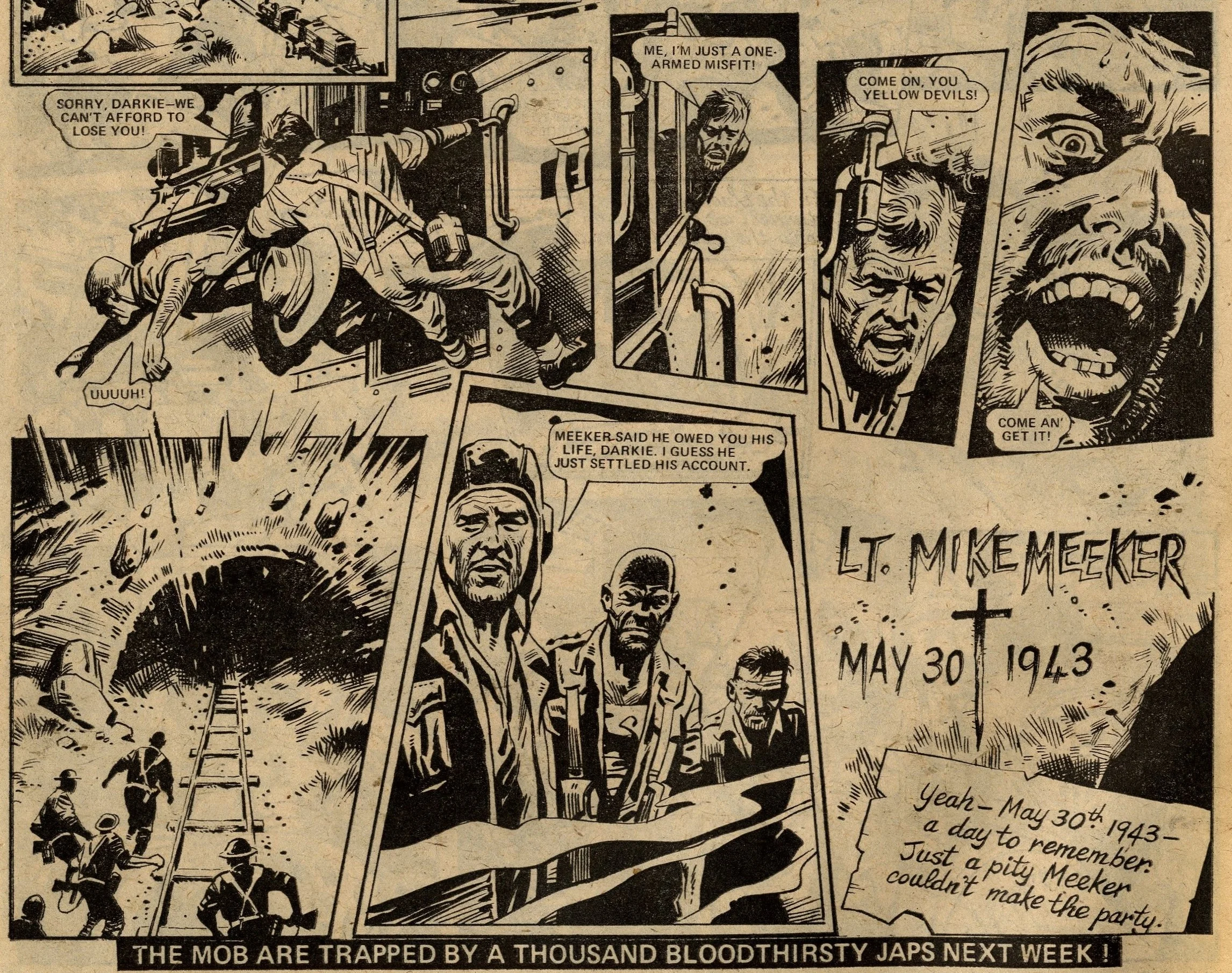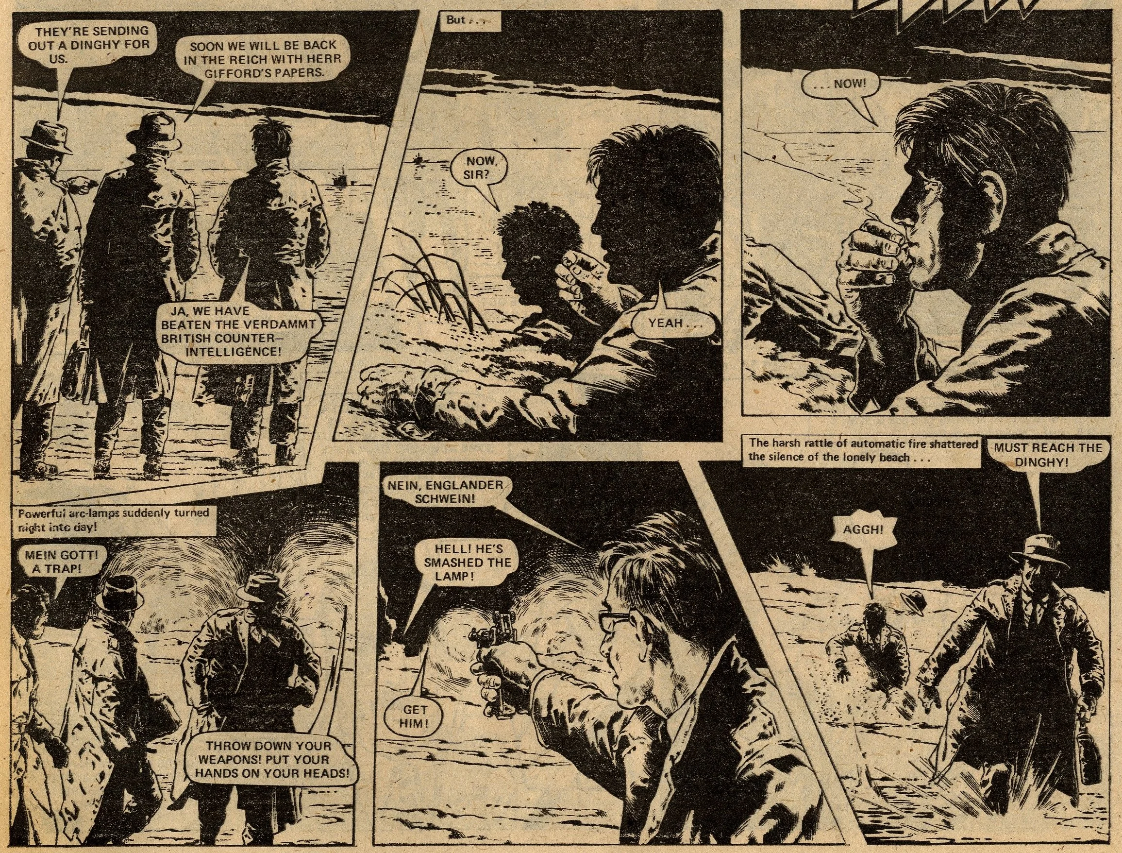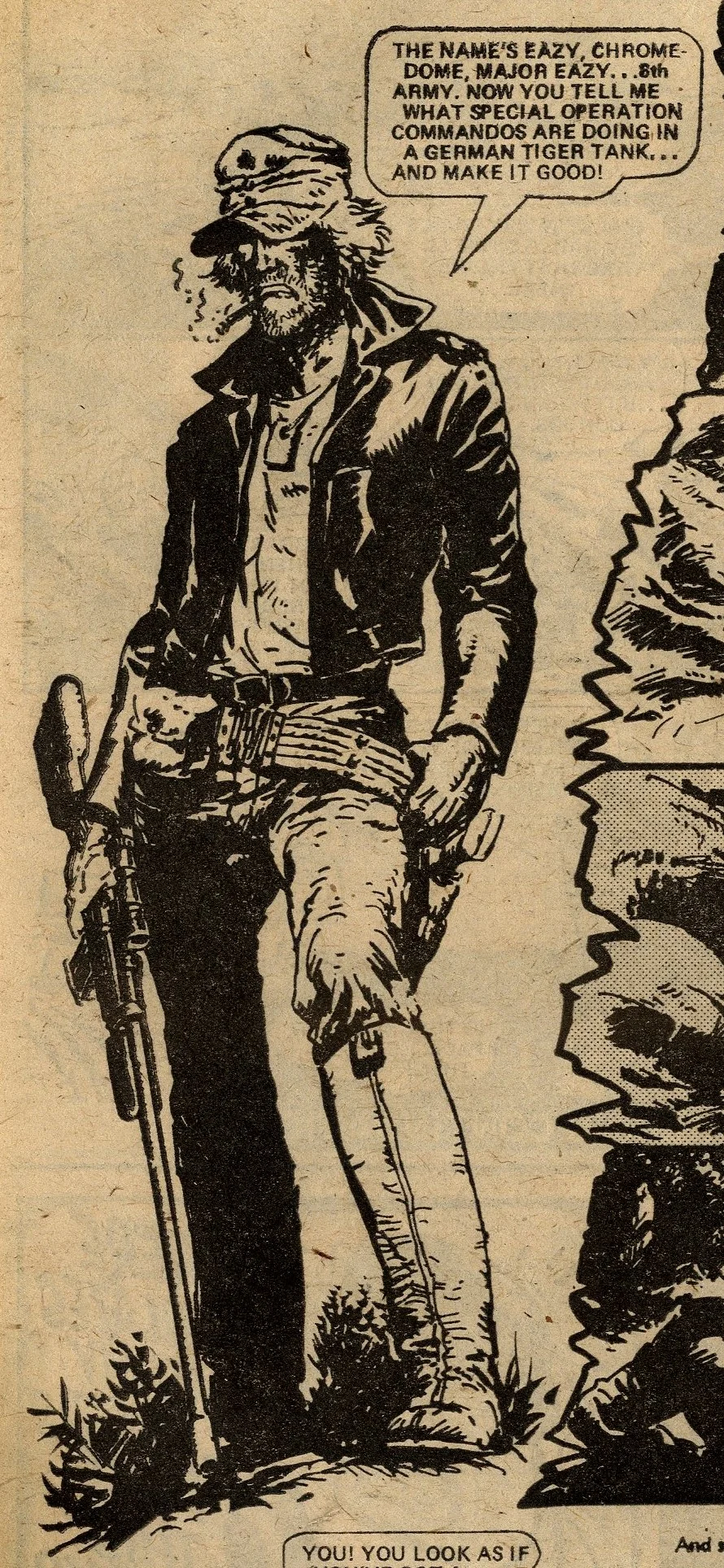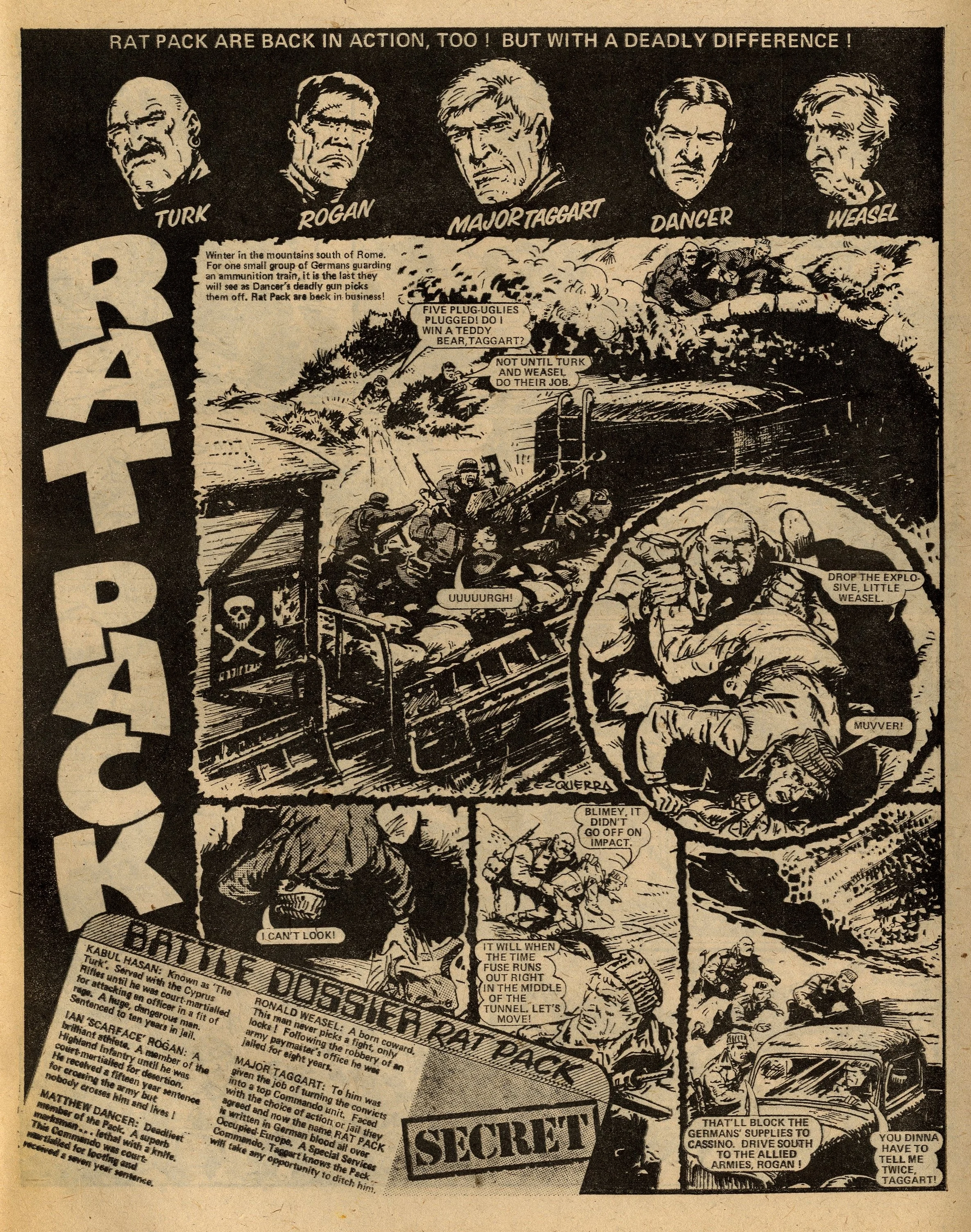 Another new story is the soulful Joe Two Beans, plotting the journey of tight-lipped Native American soldier with a mysterious past. British secret agent Mike Nelson returns to the comic in the moody Operation Black Death, as do the convict patrol that is Rat Pack – deliciously teamed up here with another of Carlos Ezquerra’s creations, the louche Major Eazy. Favourites Darkie’s Mob, Panzer G-Man and One-eyed Jack all continue from the previous week to complete a stellar line-up, and the treats are rounded off with an info-packed cut-out-and-keep illustrated dictionary of World War II.