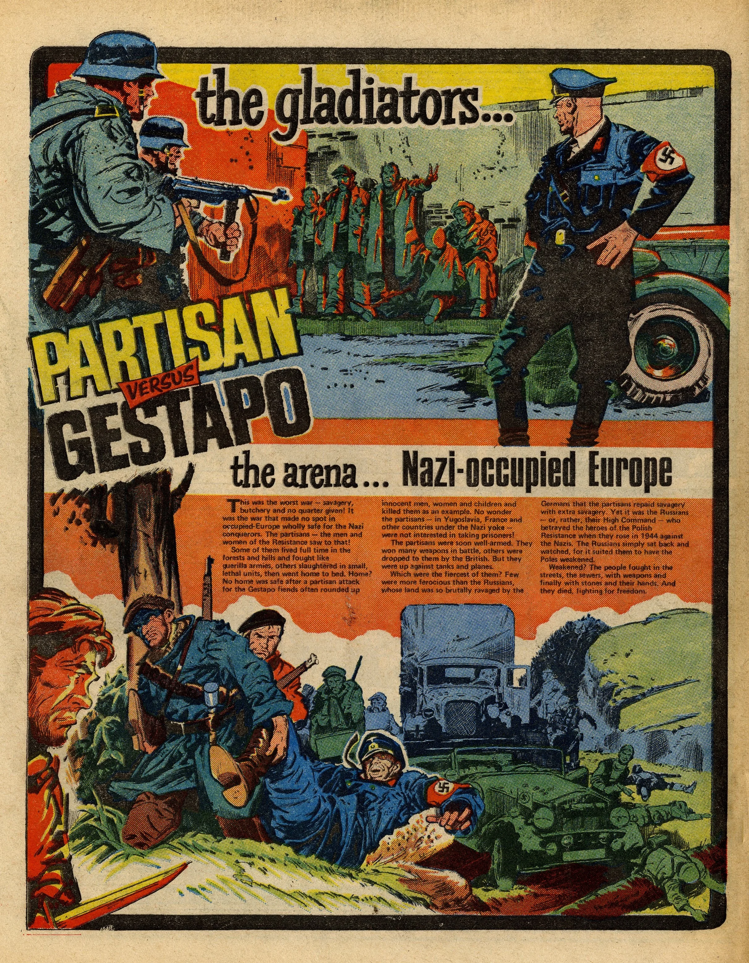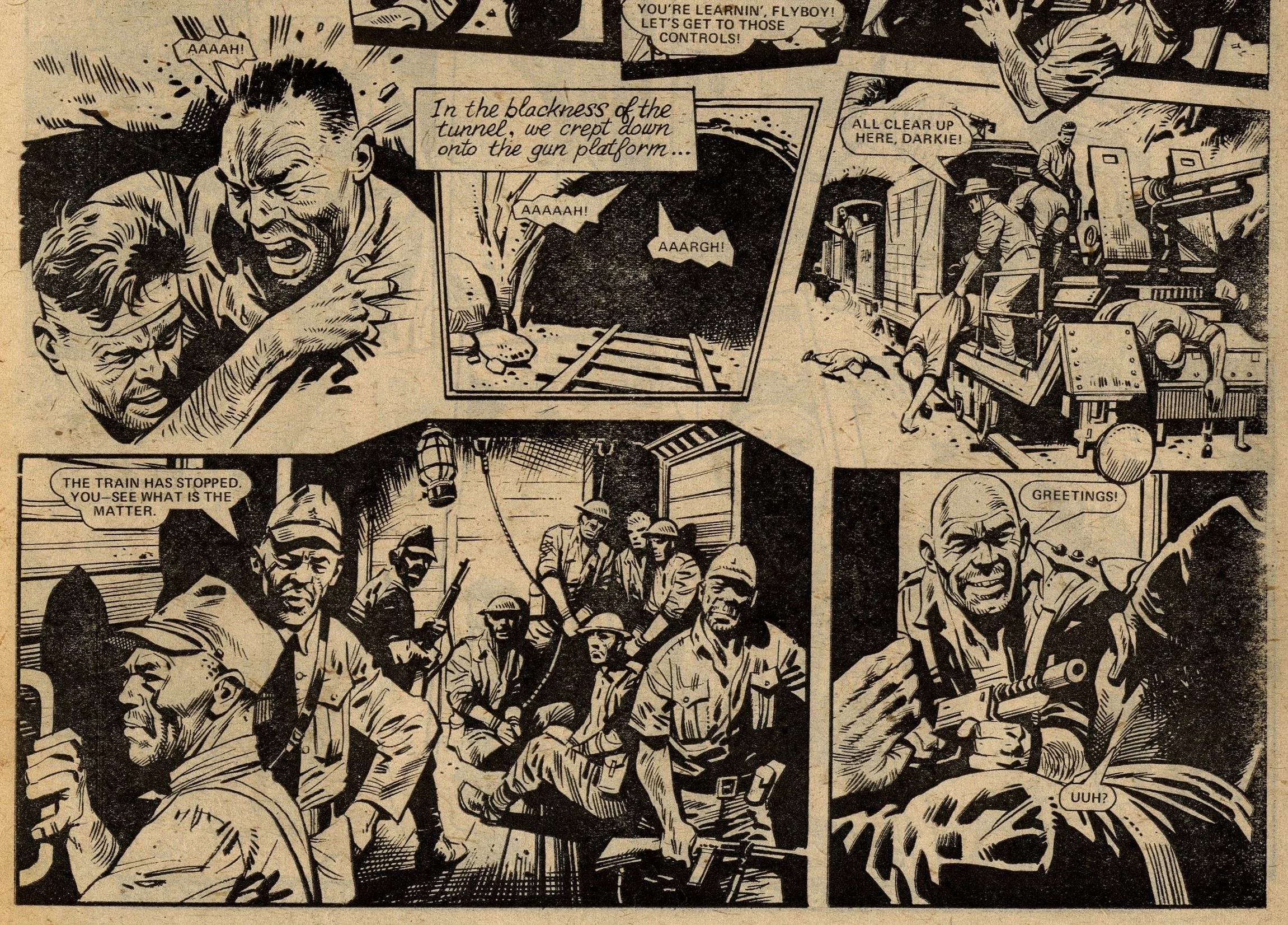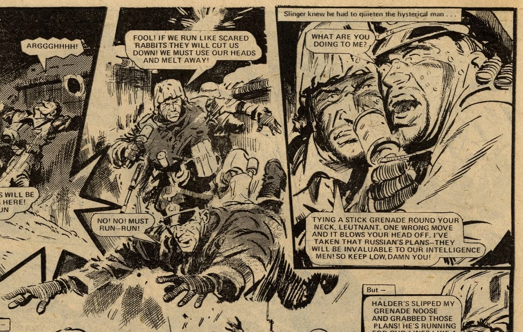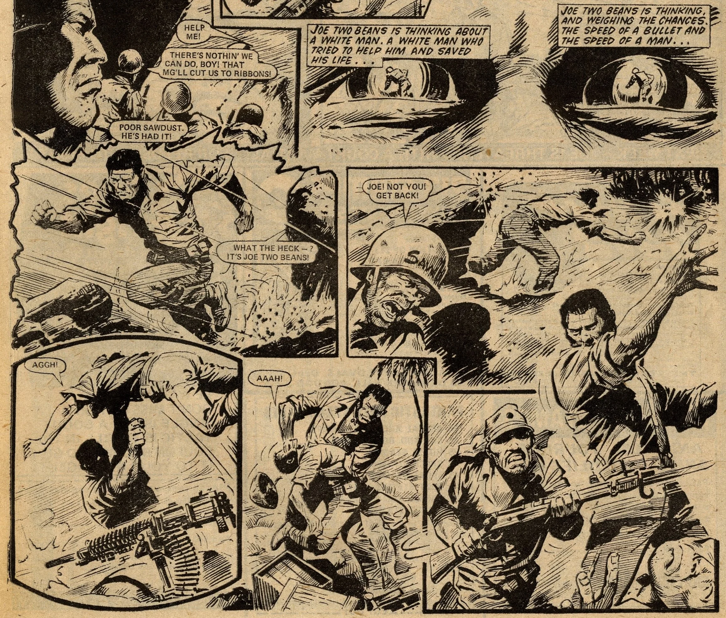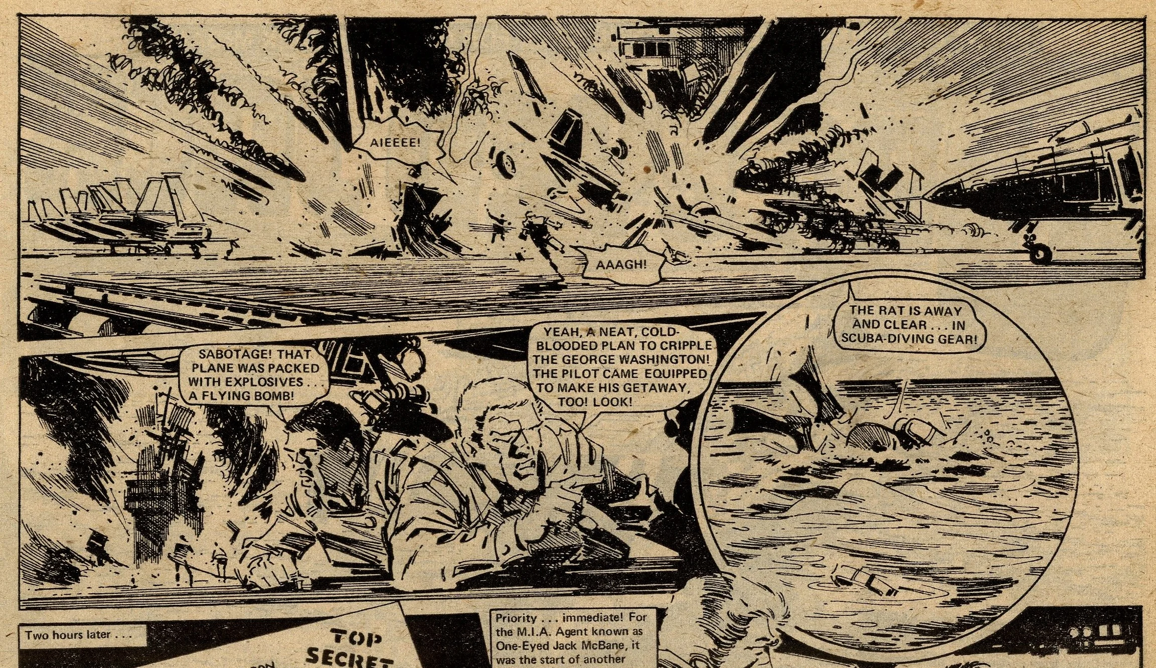 Another new story is the soulful Joe Two Beans, plotting the journey of tight-lipped Native American soldier with a mysterious past. British secret agent Mike Nelson returns to the comic in the moody Operation Black Death, as do the convict patrol that is Rat Pack – deliciously teamed up here with another of Carlos Ezquerra’s creations, the louche Major Eazy. Favourites Darkie’s Mob, Panzer G-Man and One-eyed Jack all continue from the previous week to complete a stellar line-up, and the treats are rounded off with an info-packed cut-out-and-keep illustrated dictionary of World War II.