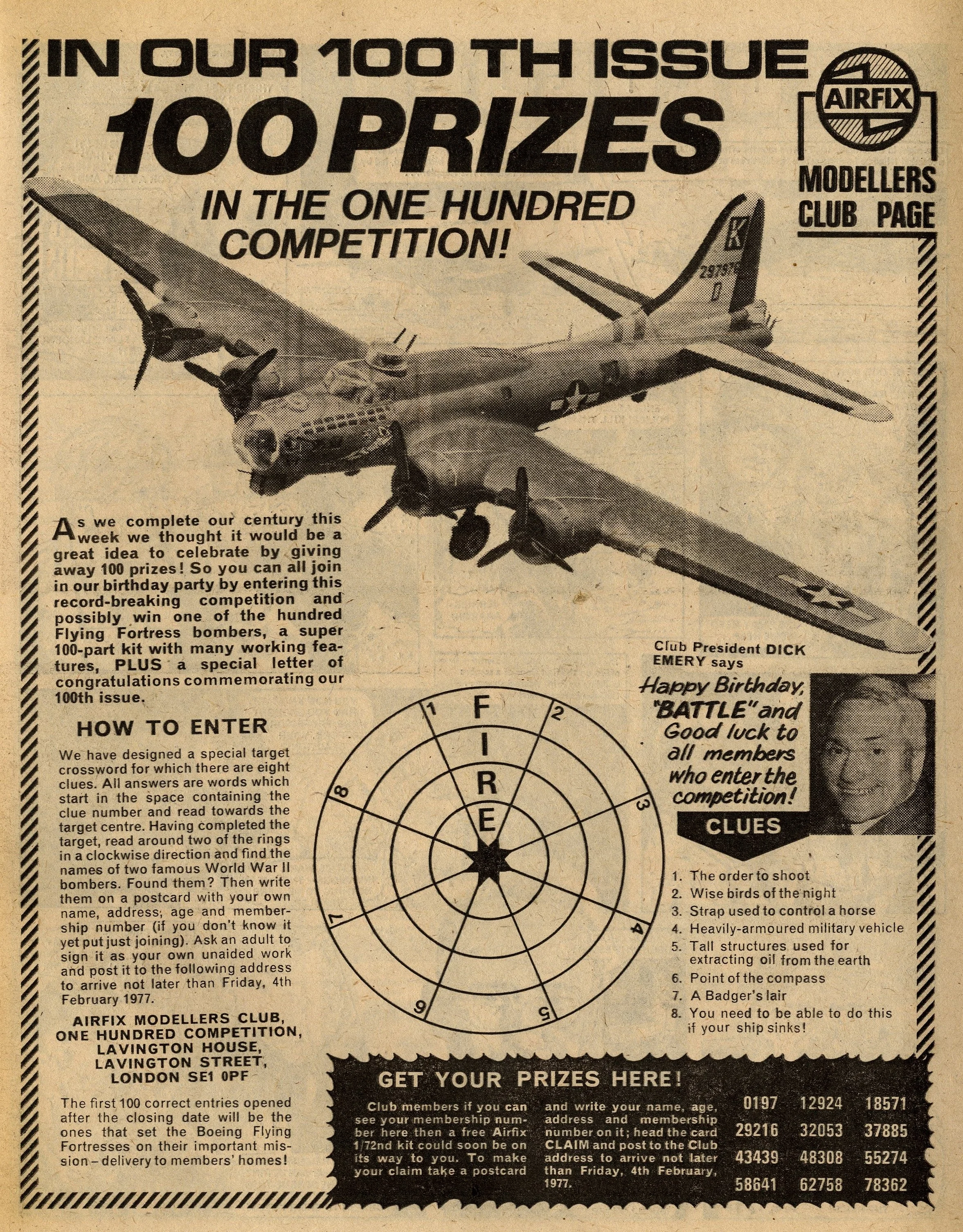 On this day, 29 January 1977 … The one hundredth issue of Battle Picture Weekly has a dynamic, content-packed cover and the pages within live up to the hype. This must have been a fantastic comic to have and to read forty years ago – in a period (in which Action had been sanitised after its ban, and the launch of 2000AD was still a month away) otherwise lacking in thrill-power. I’m sure some readers may have been feeling a little shell-shocked following the traumatic final instalment of D-Day Dawson in issue 99, but this will have sent excitiment levels soaring again.