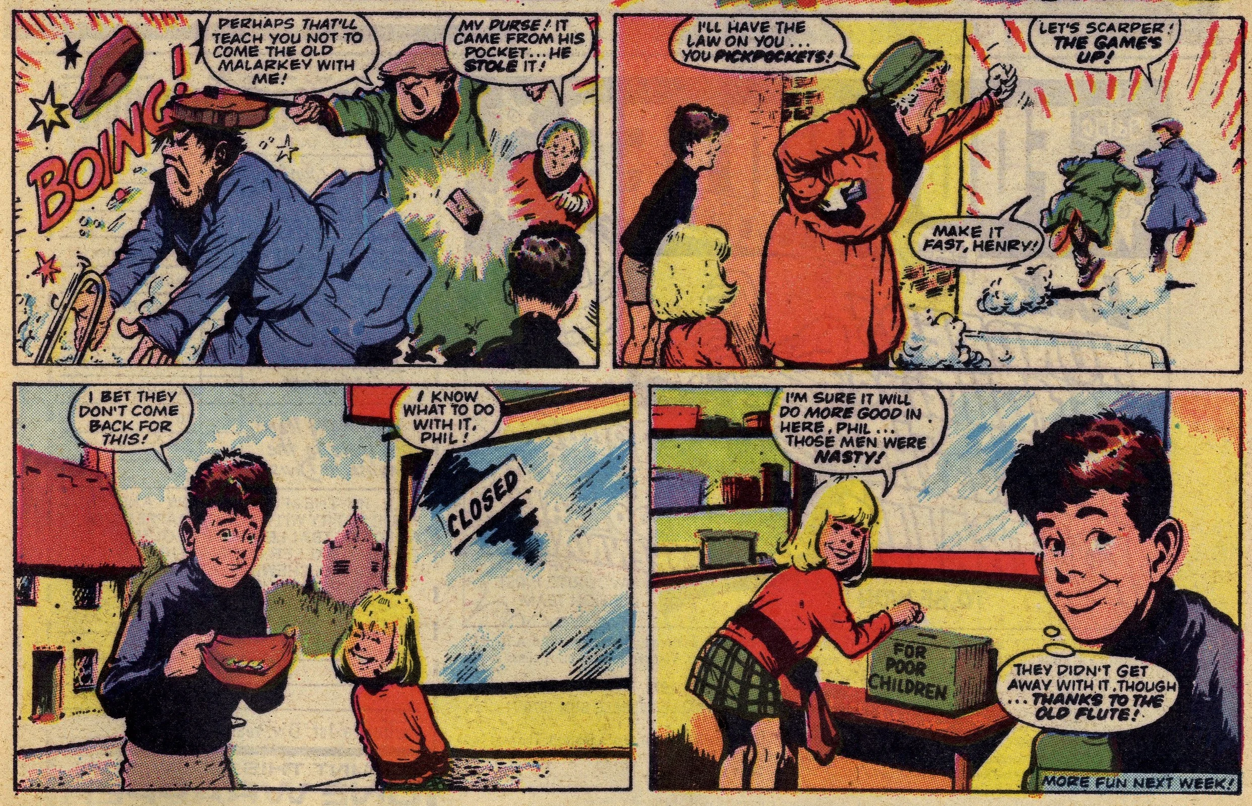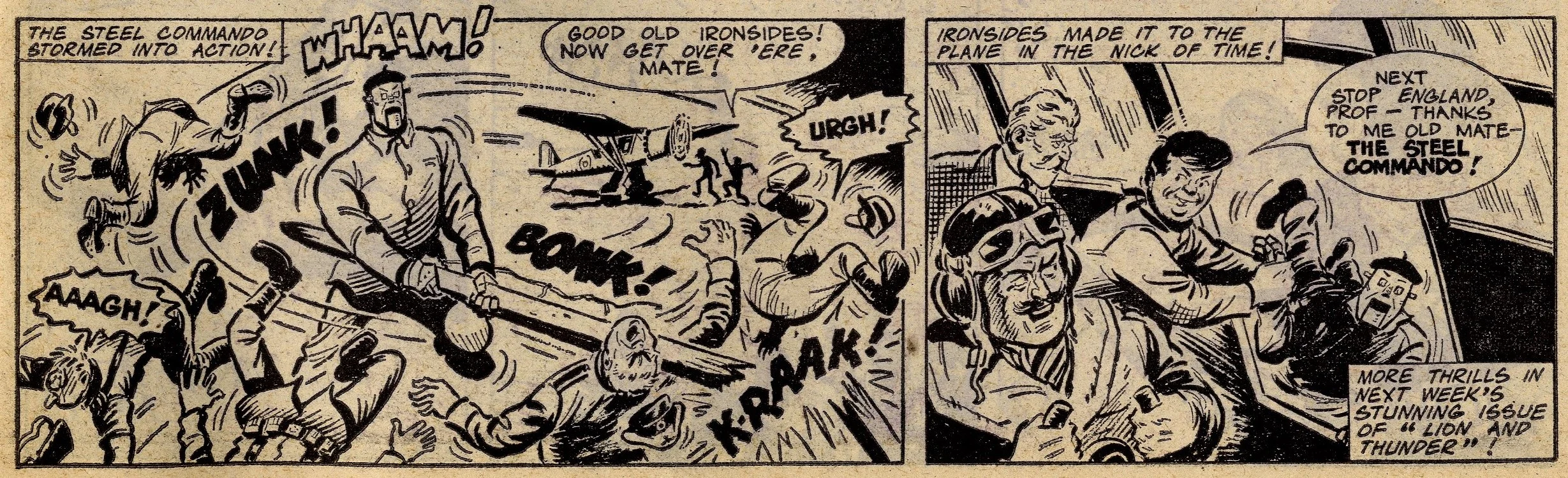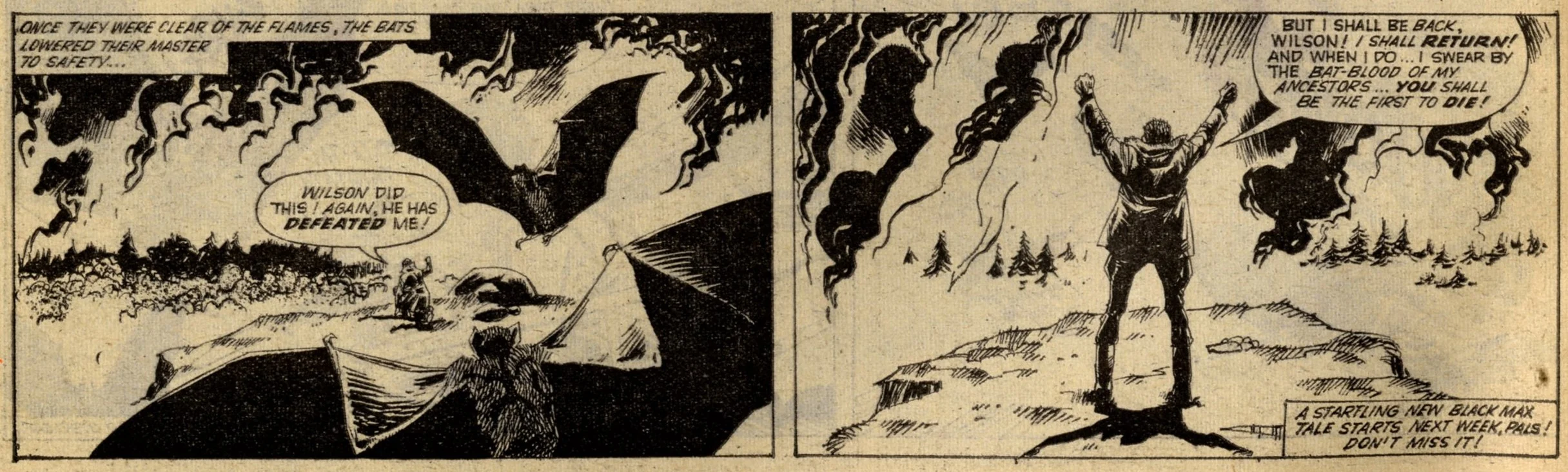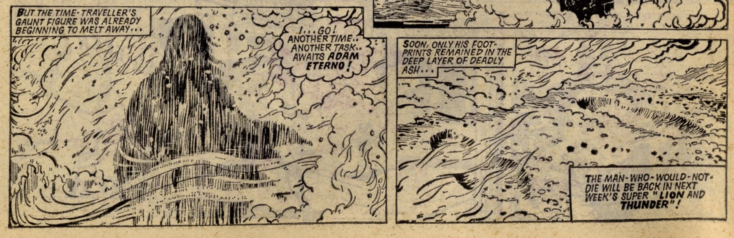 Thunder was the better of the two publications at this time, in my opinion. It contained some strong strips – interesting ideas, action-packed storylines and some excellent artwork. Black Max and Adam Eterno were both classics, and Fury’s Family and Phil the Fluter both boasted exceptionally nice illustration, even if their stories weren’t quite so strong. It’s a shame that the comic wasn’t given longer than five months to establish itself. Or perhaps it had established itself successfully, and its growing readership was requisitioned to boost the circulation of Lion. However, the low-key announcement and execution of the merger (I’ll look at the merger issue next week) suggests to me that this was not the fulfilment of some great plan, but that Thunder had become little more than a distant rumble.