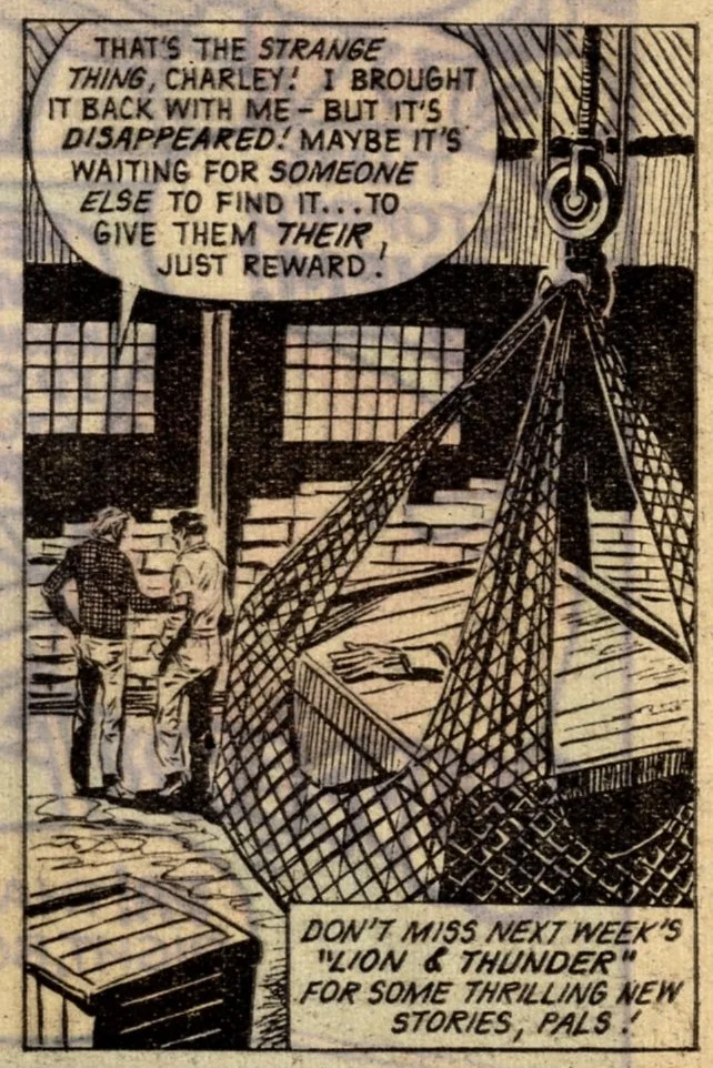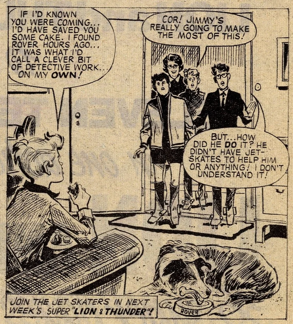 ‘READ IT … and you’ll be THUNDER-STRUCK!’ It’s not quite ‘GREAT NEWS FOR ALL READERS!’, but perhaps it’s a more accurate prediction of loyal readers’ reactions to the news hidden inside this week’s issue of Thunder. Despite the lack of fanfare on the cover, this was the 22nd and final standalone issue of Thunder. The following week, it was to be merged with the much longer-running Lion.