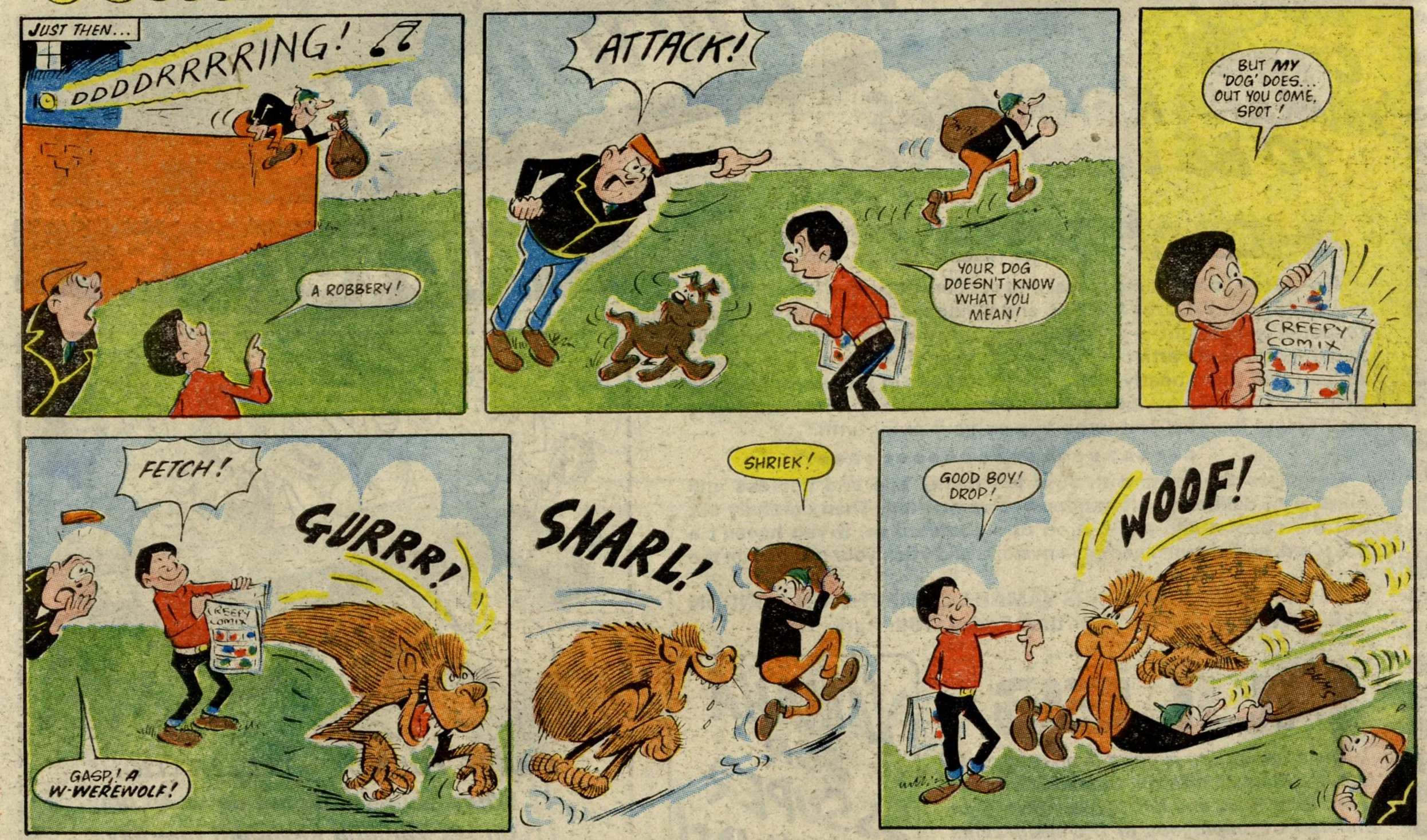 But it's happy too because there's loads of fun in these pages, lots of familiar faces and grins and laughter throughout. It's not something I've really considered before but I wonder whether there has ever been any sort of analysis of how many smiles there are pictured in any one of these fun comics, and what sort of therapeutic effect that might have on its young readers. I don't think it need apply just to the kids for whom the comic was created – I found it a tonic to read through as a 46-year-old man, 32 years later! The world needs more of this sort of thing.