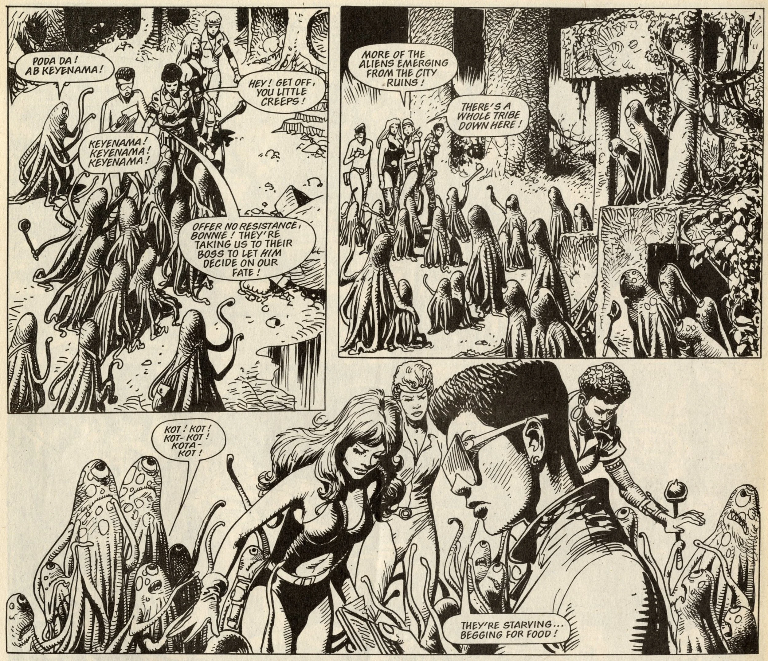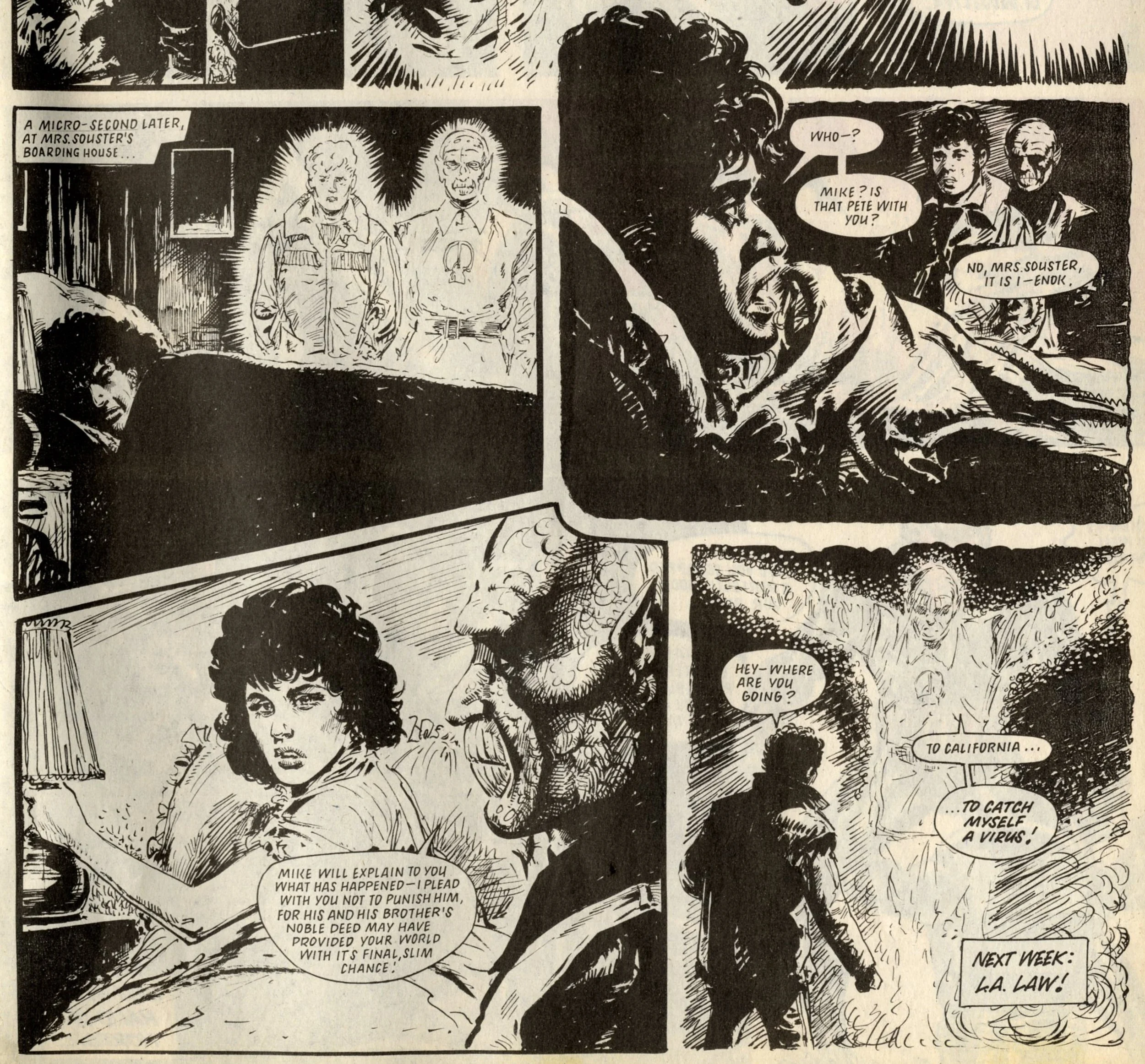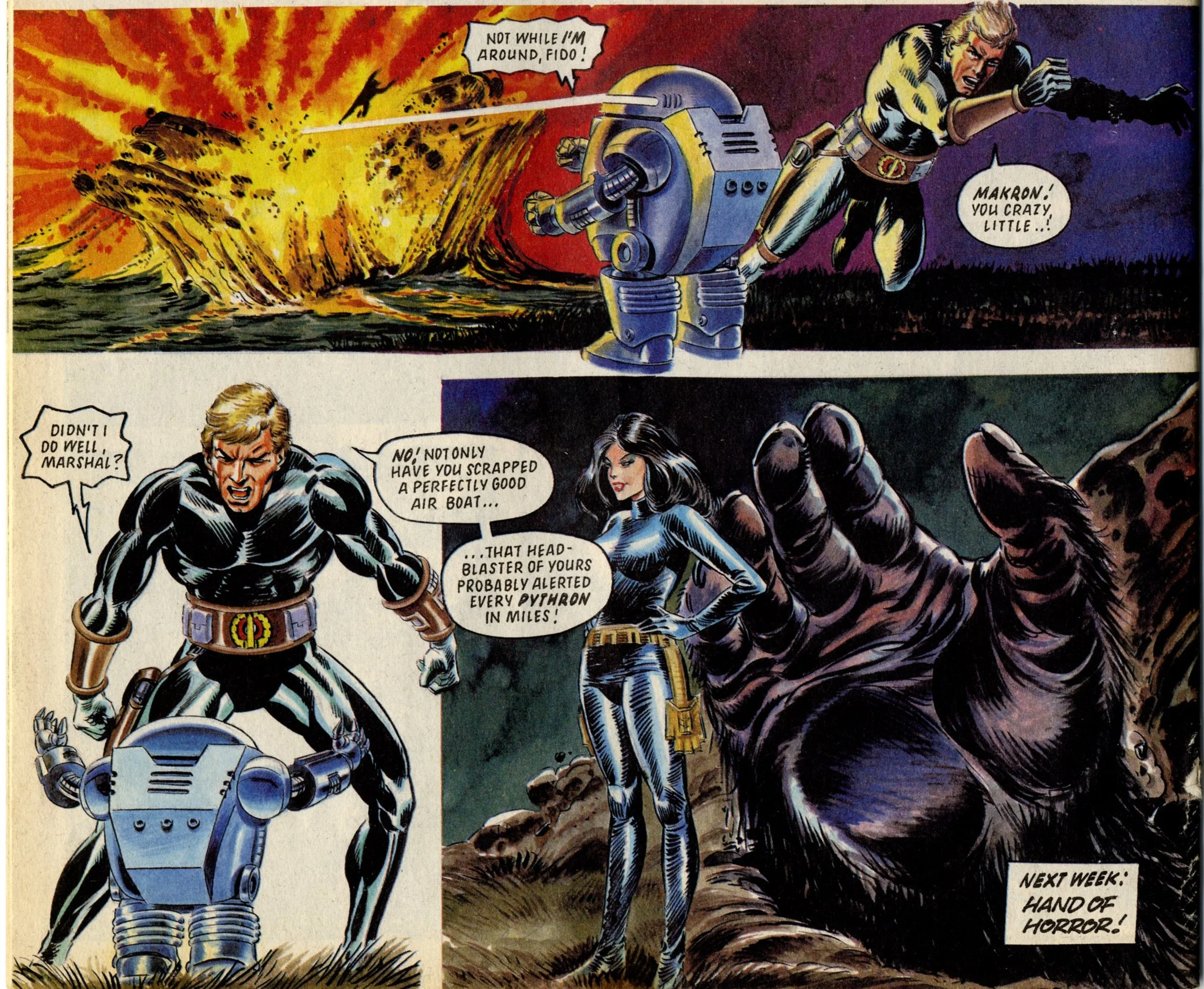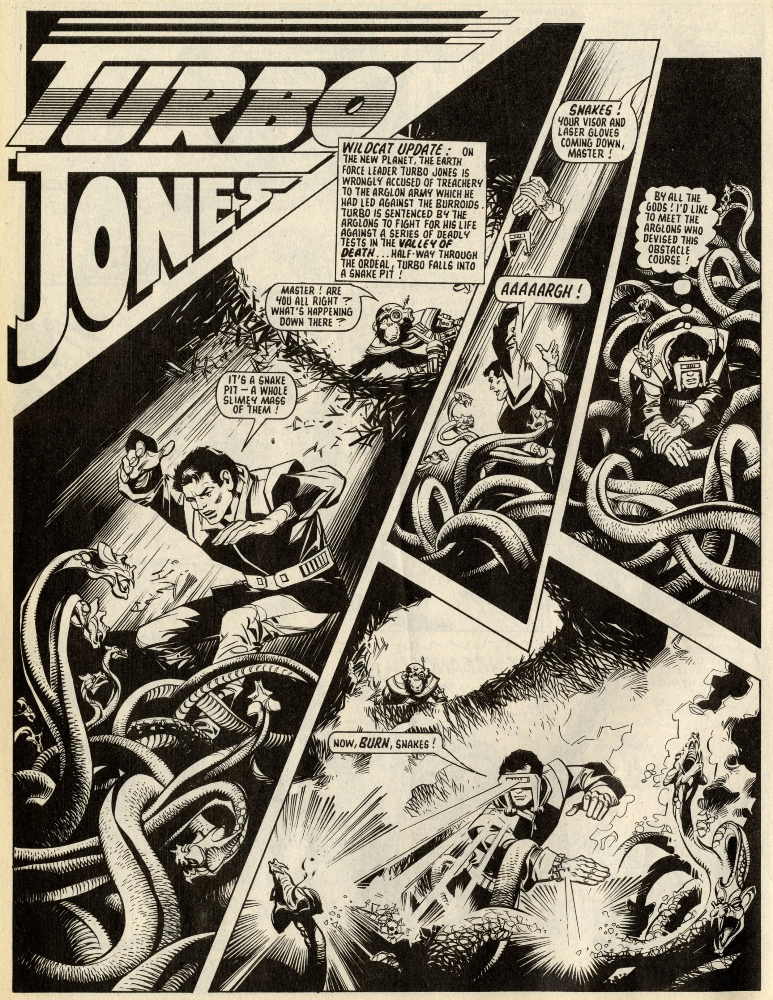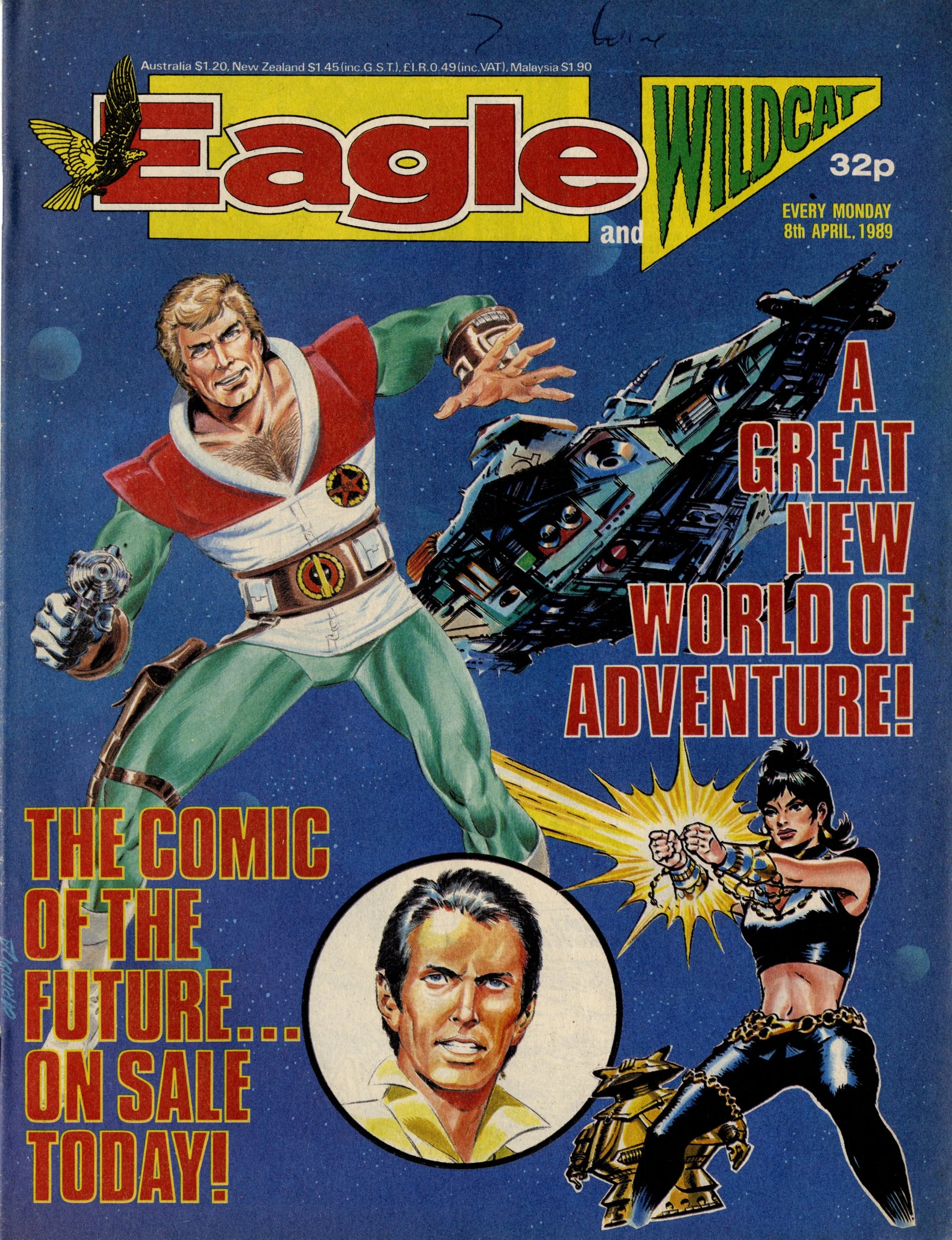 On this day, 8 April 1989 … Wildcat had been a brave attempt to launch a different kind of comic (its stories were all linked, following the adventures of different survey teams from the same space ship on an exotic alien planet) into a tough, shrinking market. After just 12 fortnightly issues it was merged into Eagle. Turbo Jones and Kitten Magee were the Wildcat stories that made it into this, the first combined issue, and were greeted on the front cover by a hirsute, sweaty Dan Dare figure as equally terrifying as any of the alien life forms they had encountered to date. Wildcat’s other adventurers, Joe Alien and Loner, would join the comic within a few weeks, but of the four, only Loner survived as an Eagle regular for more than a handful of months.
