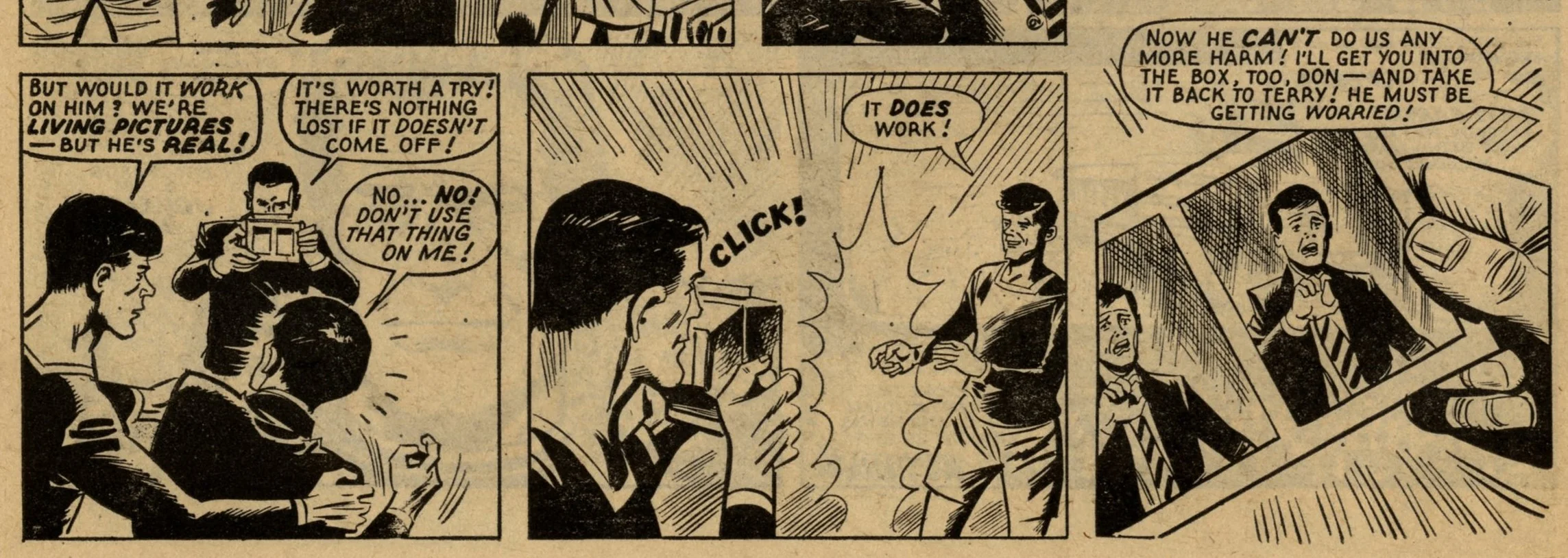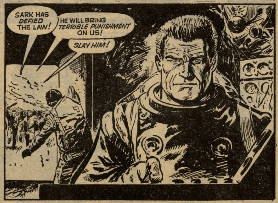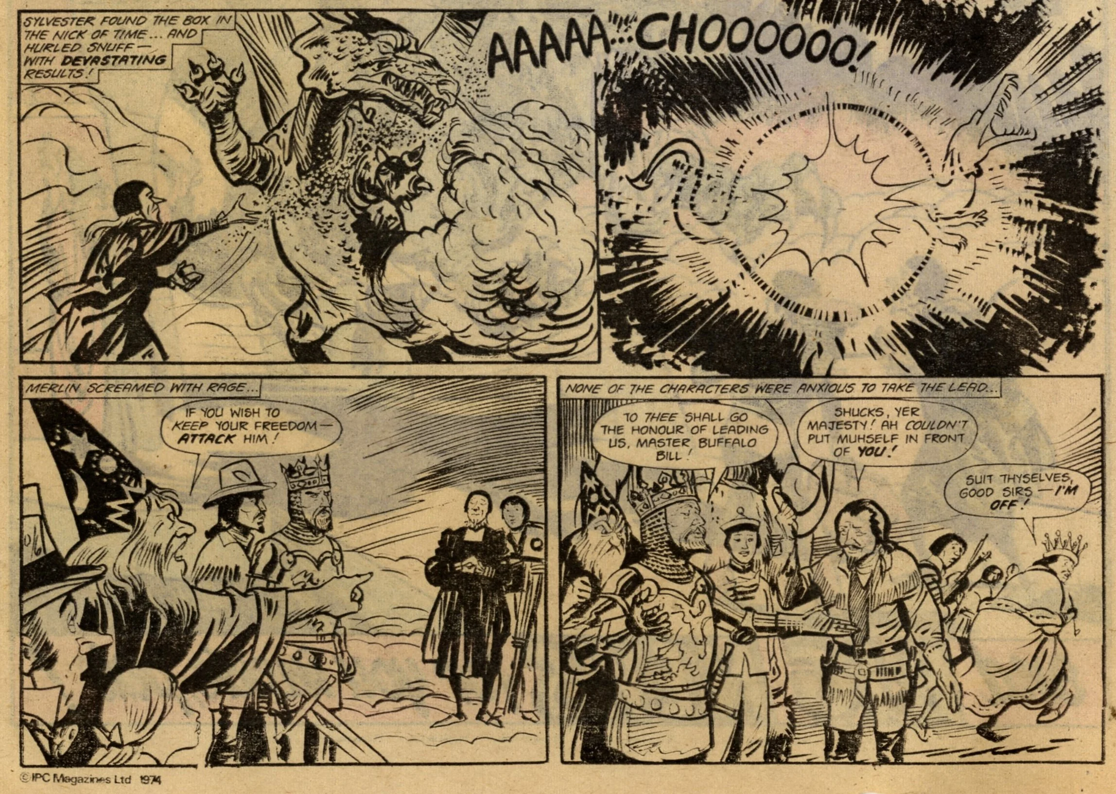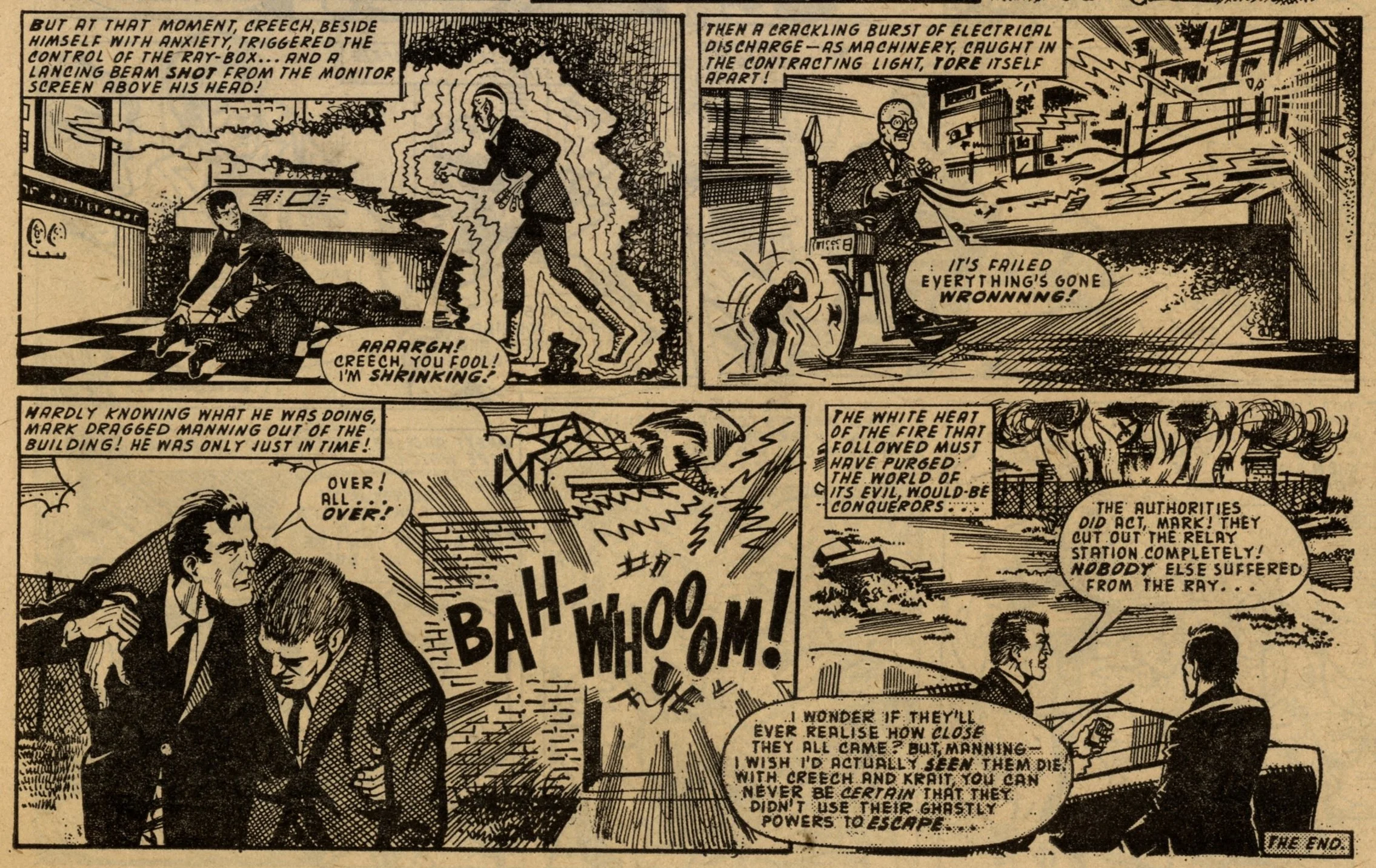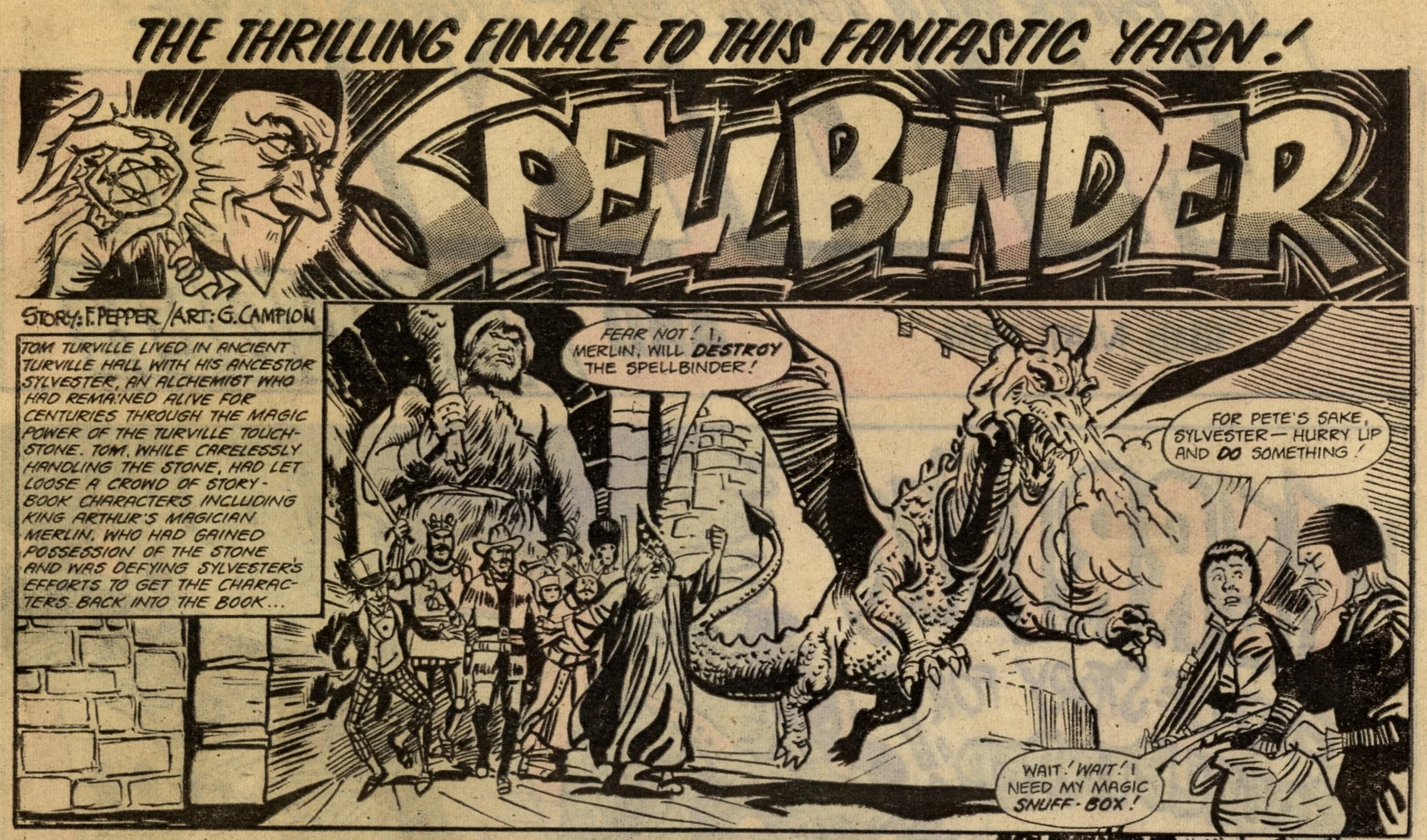 An interesting sidenote to this issue is that the writer and artist on Spellbinder (Frank S. Pepper and Geoff Campion) received credits beneath the title of this final episode – possibly sneaked in by Campion himself.