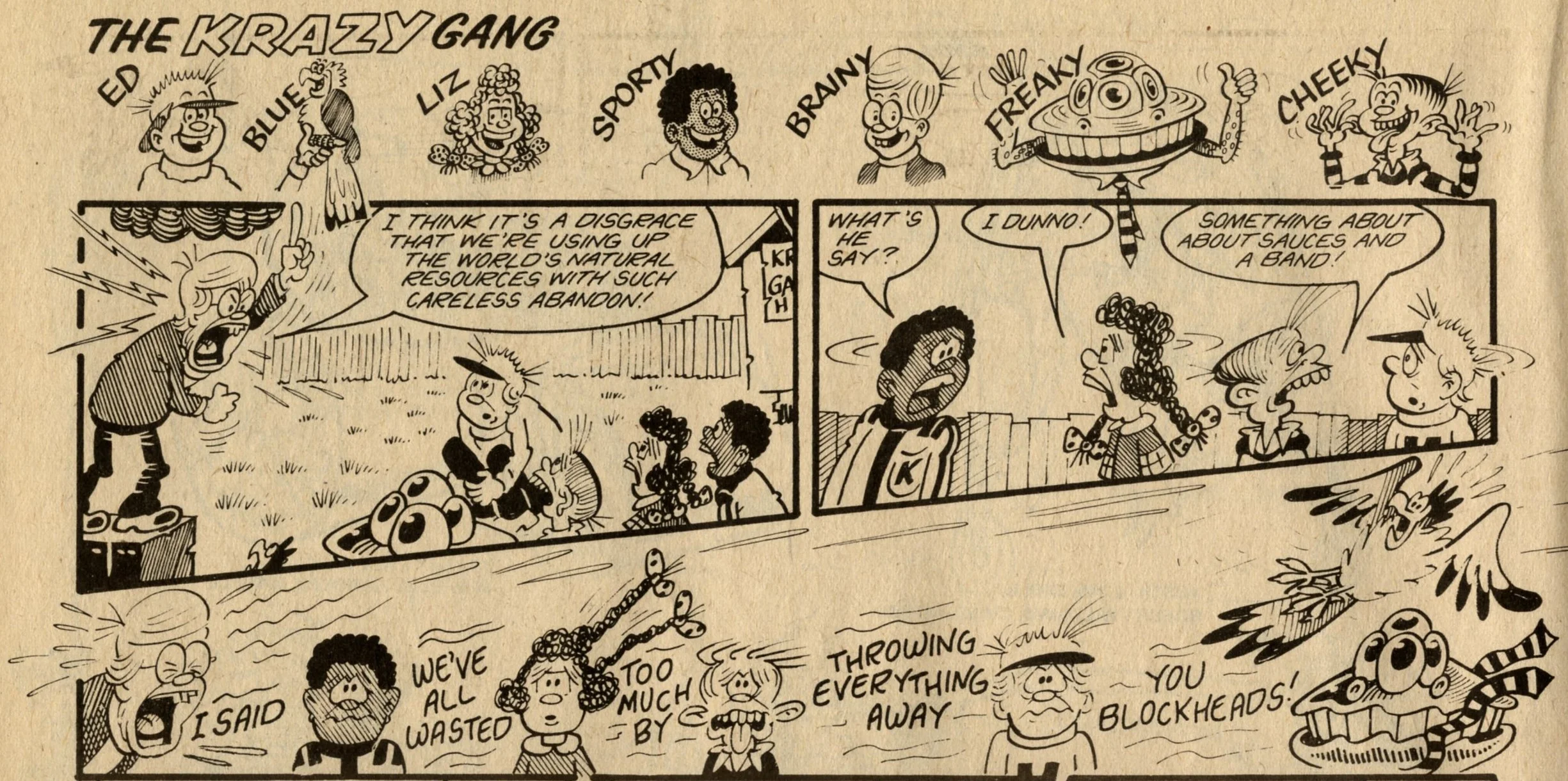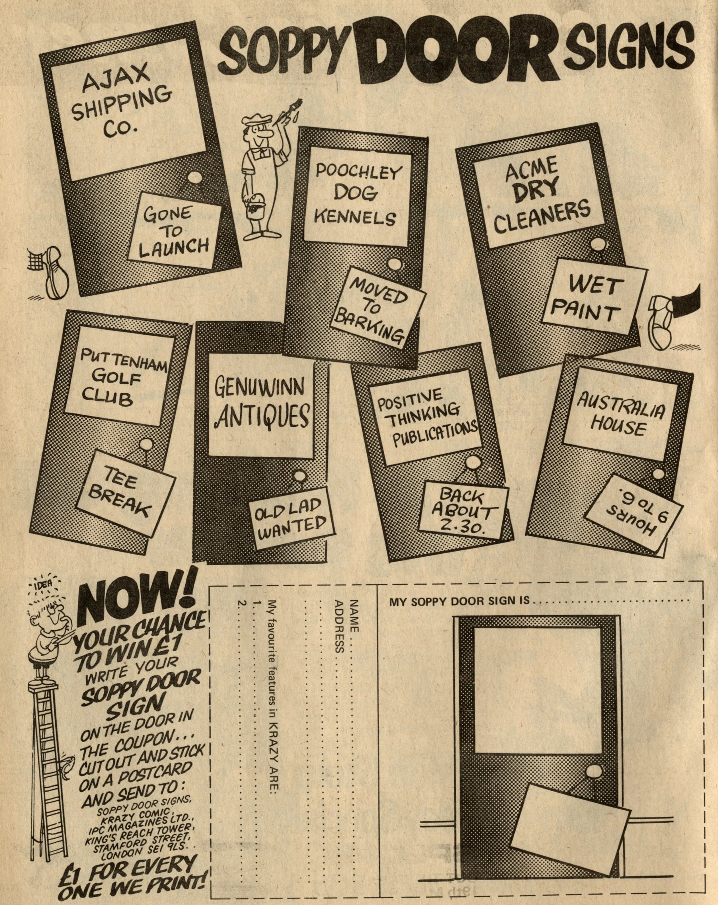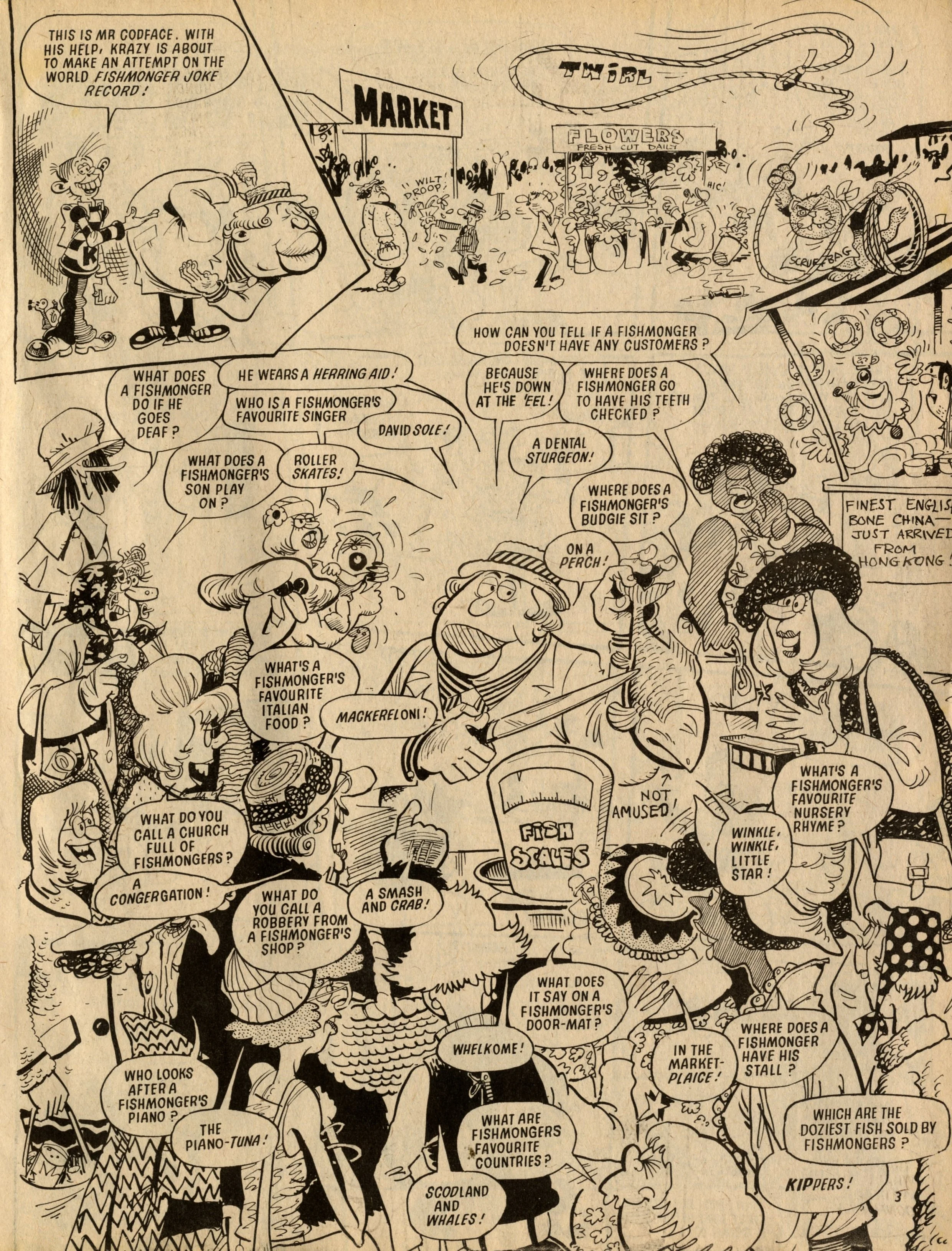 In yesterday’s post I implied that Krazy’s incorporation into Whizzer and Chips in 1978 was something of a wonky-shaped peg in a conventionally-shaped hole, and here’s a reminder of what a dynamic, freeform, irreverent, bonkers delight it had been, from the previous year.