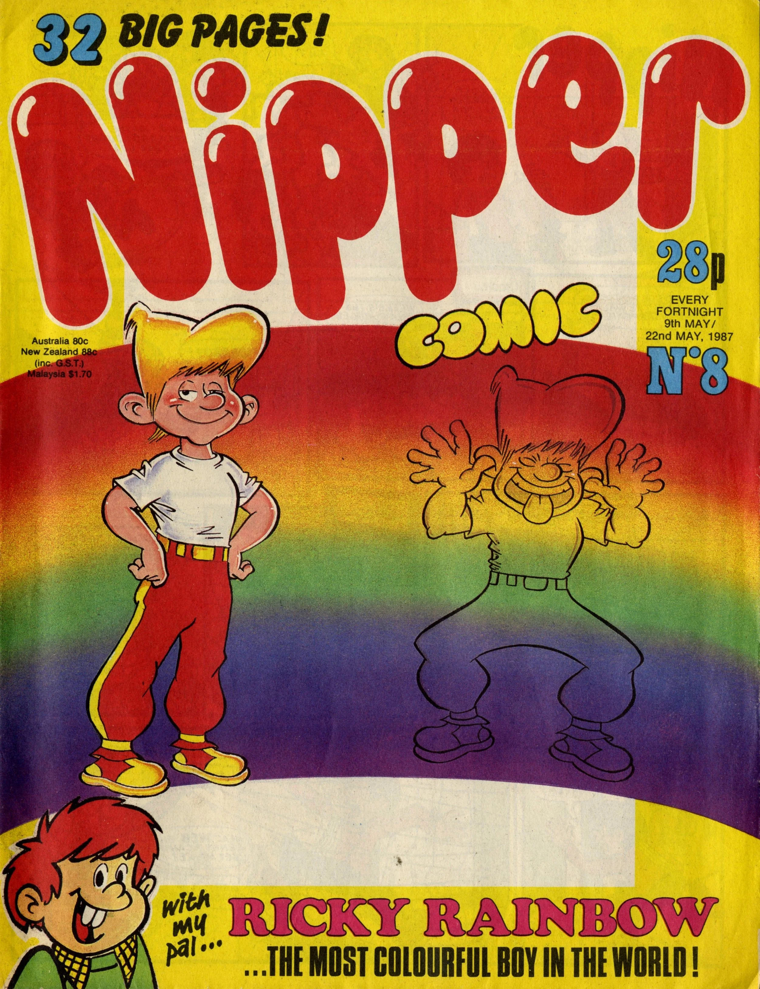 Ricky Rainbow, drawn by Jimmy Hansen, had chameleonic powers which meant that his strips always appeared in colour print. He seems to have been a popular character though, surviving Nipper's merge into Buster  in 1987 and lasting through most of the 1990s. He even appeared in the final issue of Buster dated 4 January 2000.