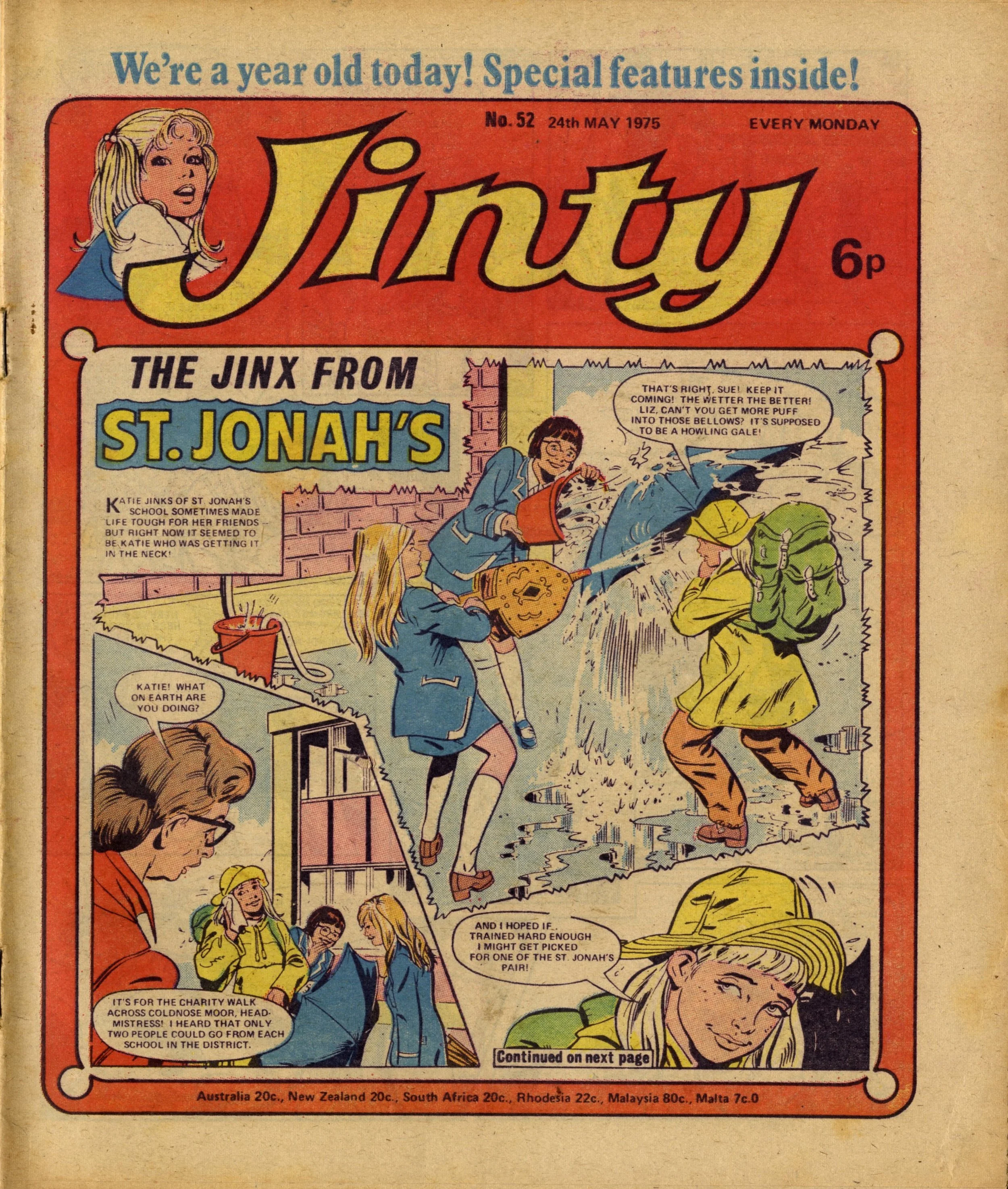 Jinty celebrated its first birthday with one of the last The Jinx from St Jonah's front covers. Art by Mario Capaldi.