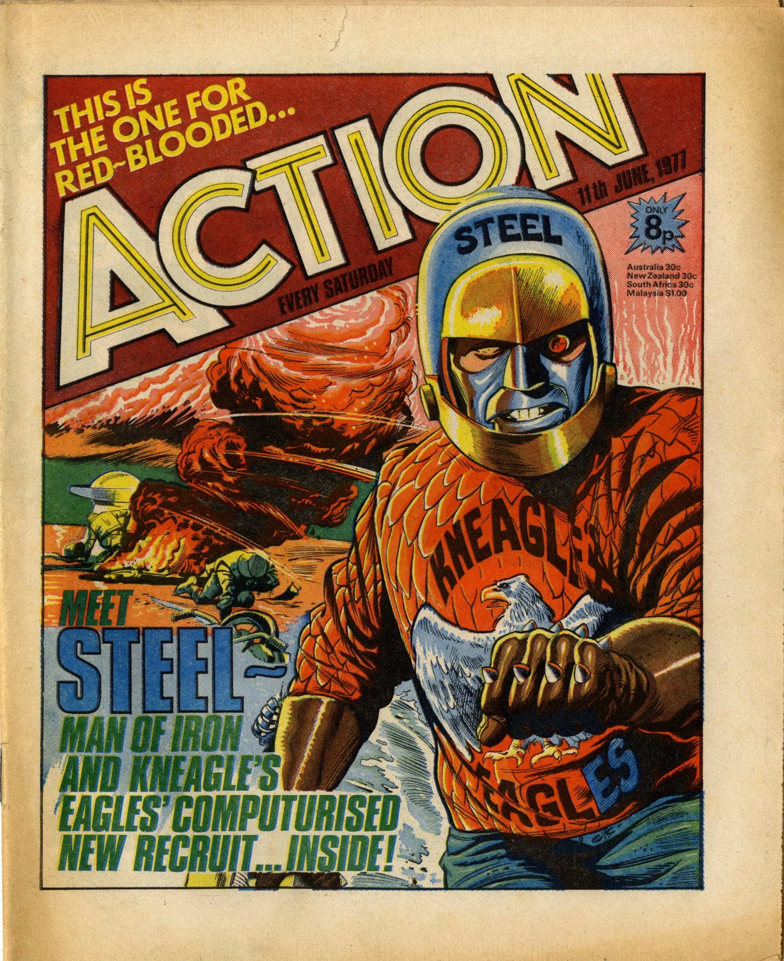 Full metal Action as cyborg Steel joins the Spinball fray. The violence in this comic had been diluted significantly but not completely.