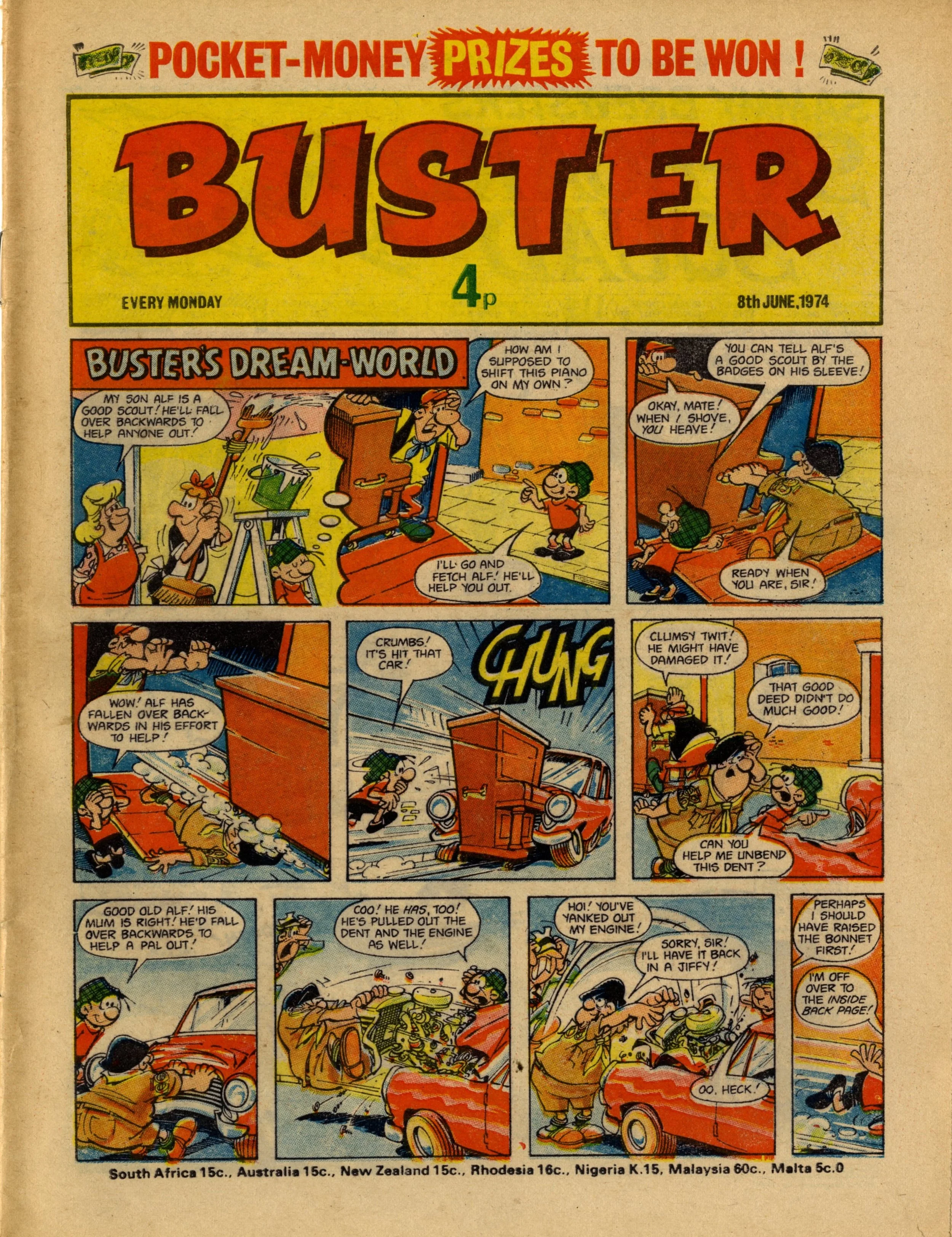 Buster and the fall-over-backwards boy scout. One of artist Angel Nadal's final Buster stories.
