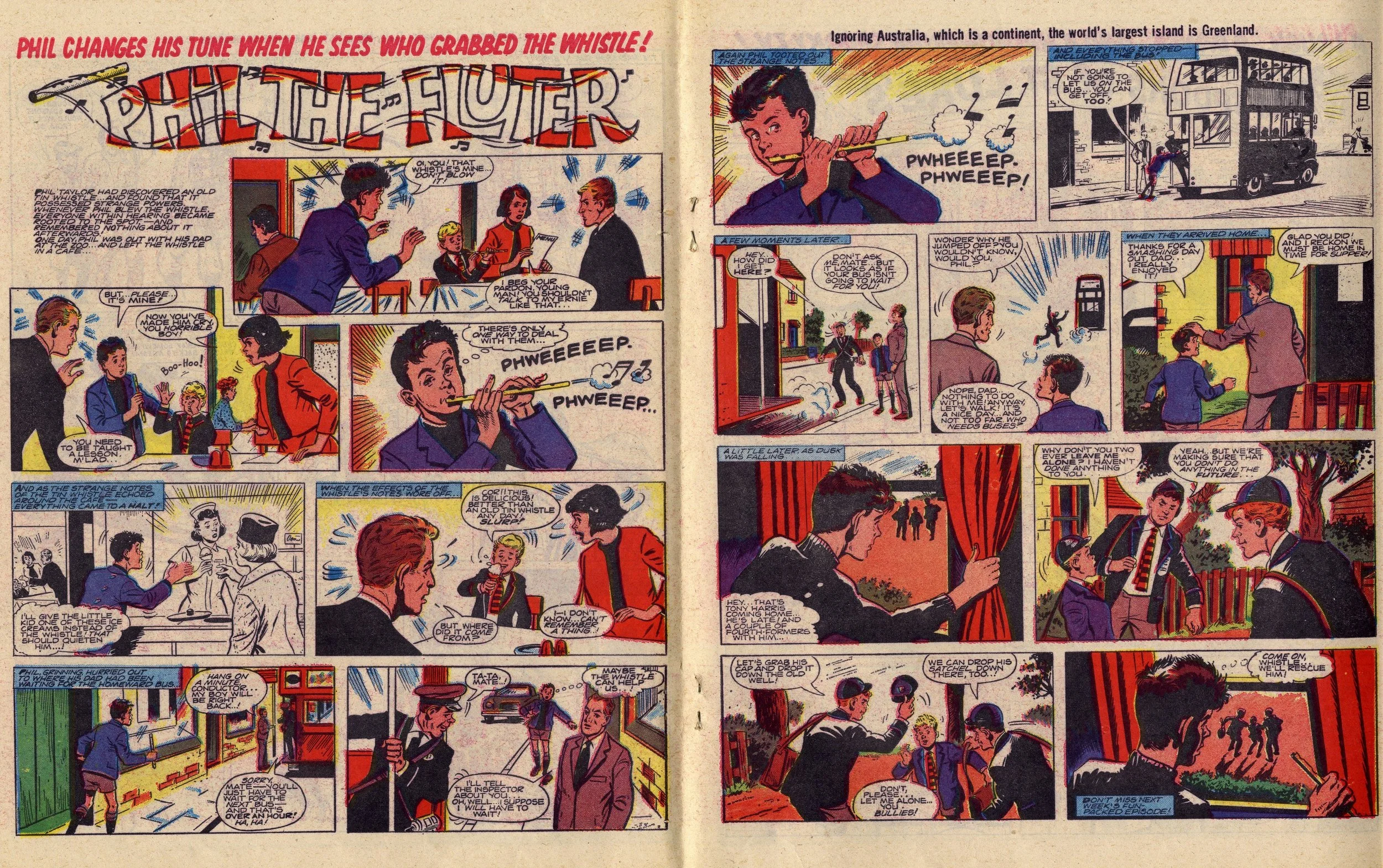 Thunder brought a number of soon-to-be classics to the Lion stable: Black Max, Adam Eterno and Steel Commando. Less well-known strips included Phil the Fluter, The Terrible Trail to Tolmec and back-page star Sam.