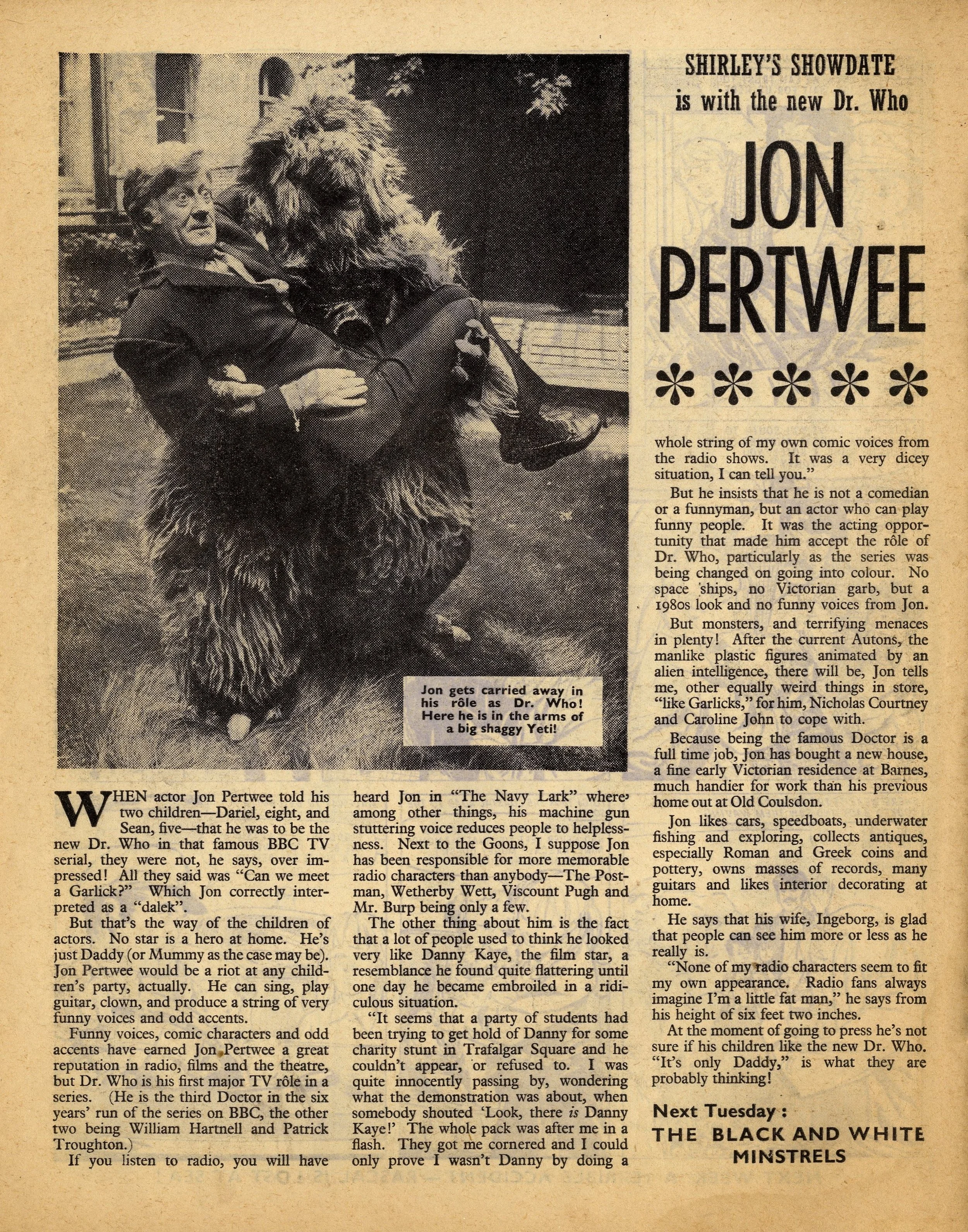 It also featured this mini-interview with Jon Pertwee, whose televised run as the Third Doctor had started just five weeks previously.