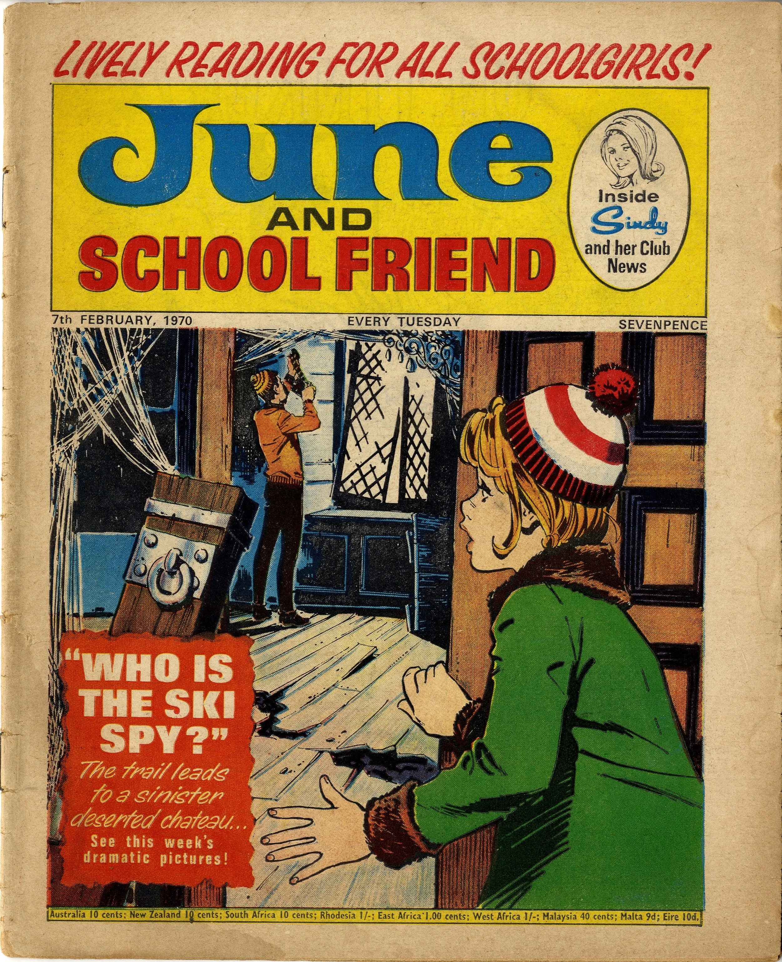 Who is the Ski Spy? starring schoolgirl secret agent Susan Stevens was on the front cover of June and School Friend in the shops 53 years ago this week. Art by Spanish artist Santiago Hernandez Martin.