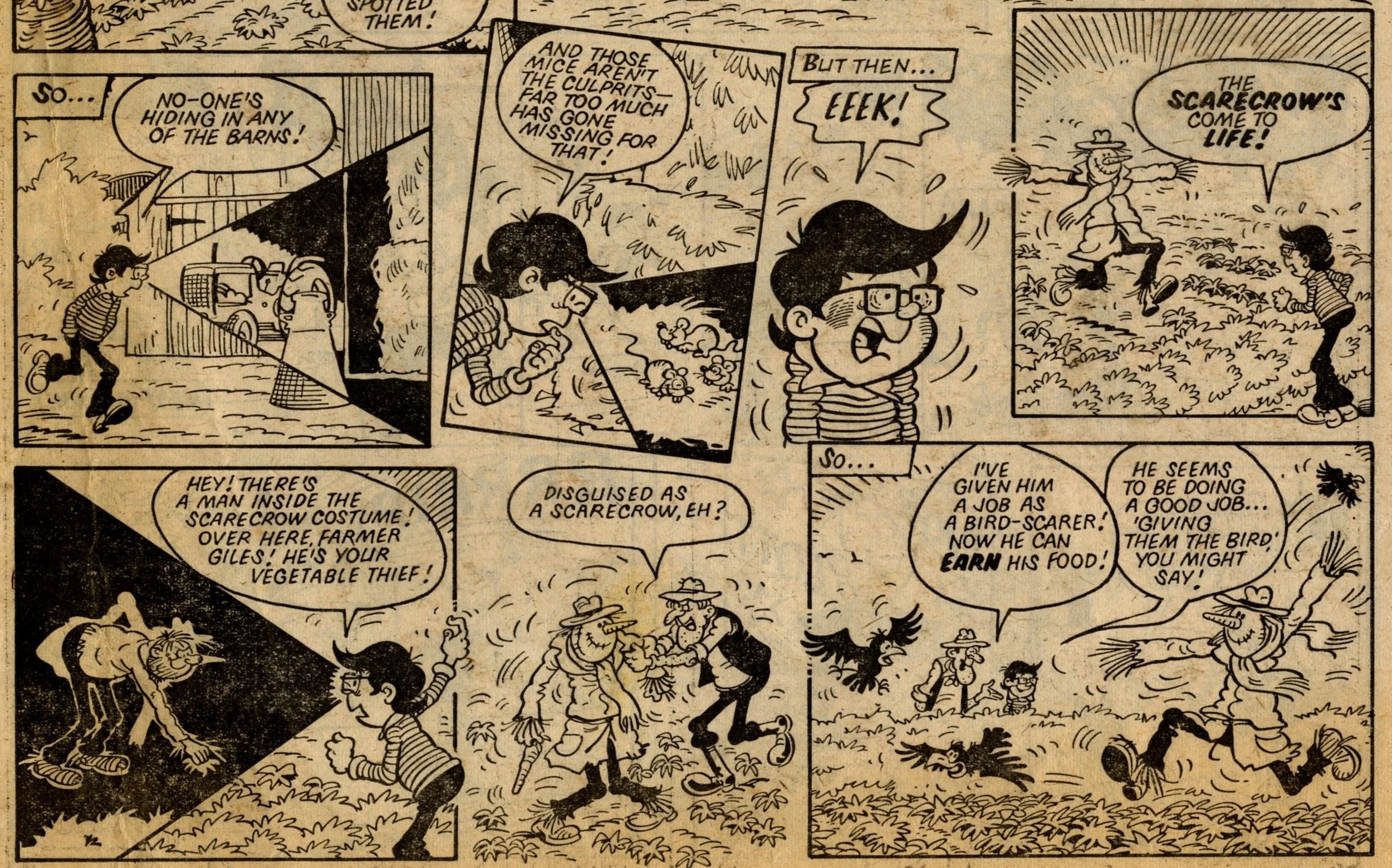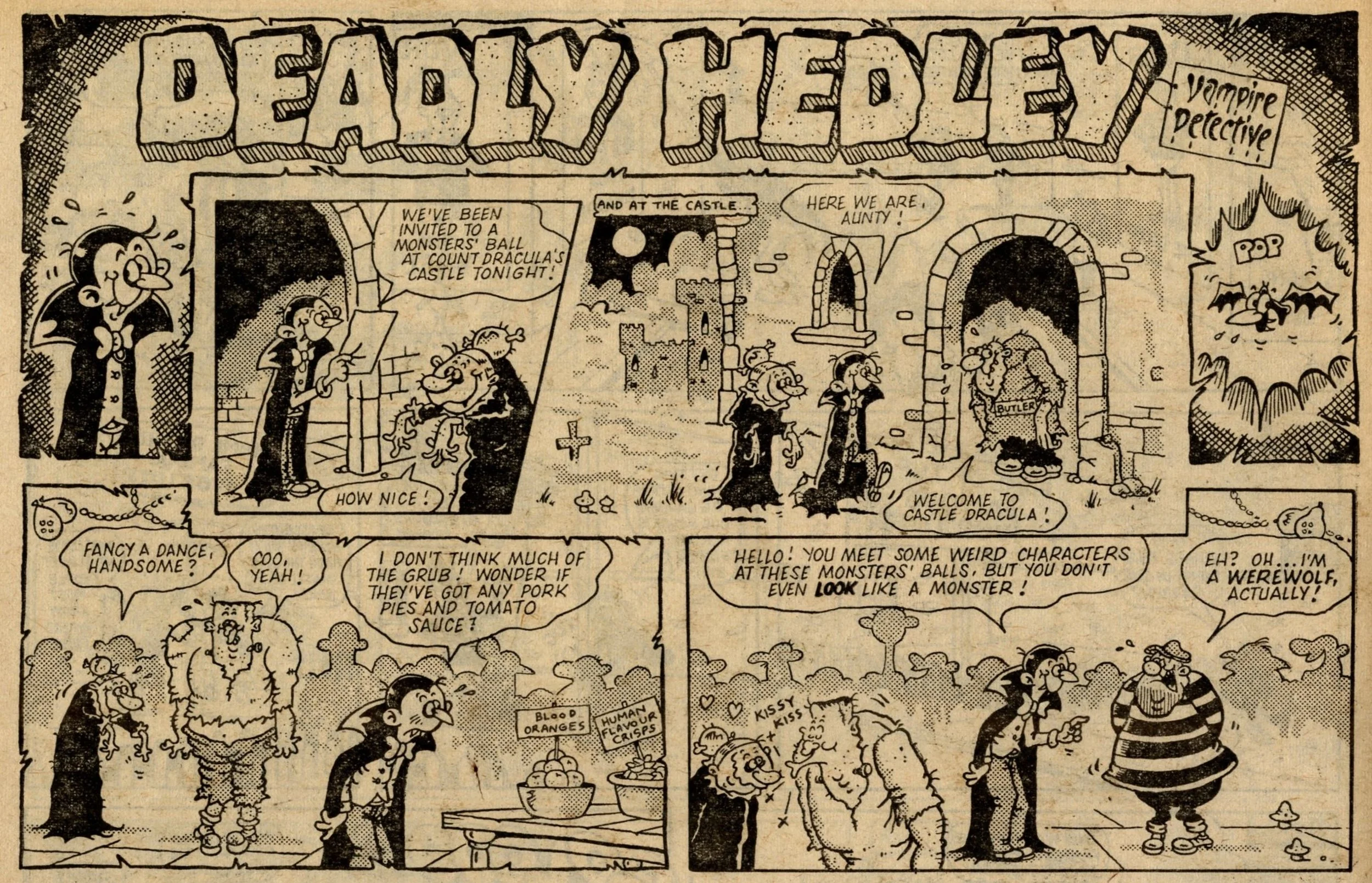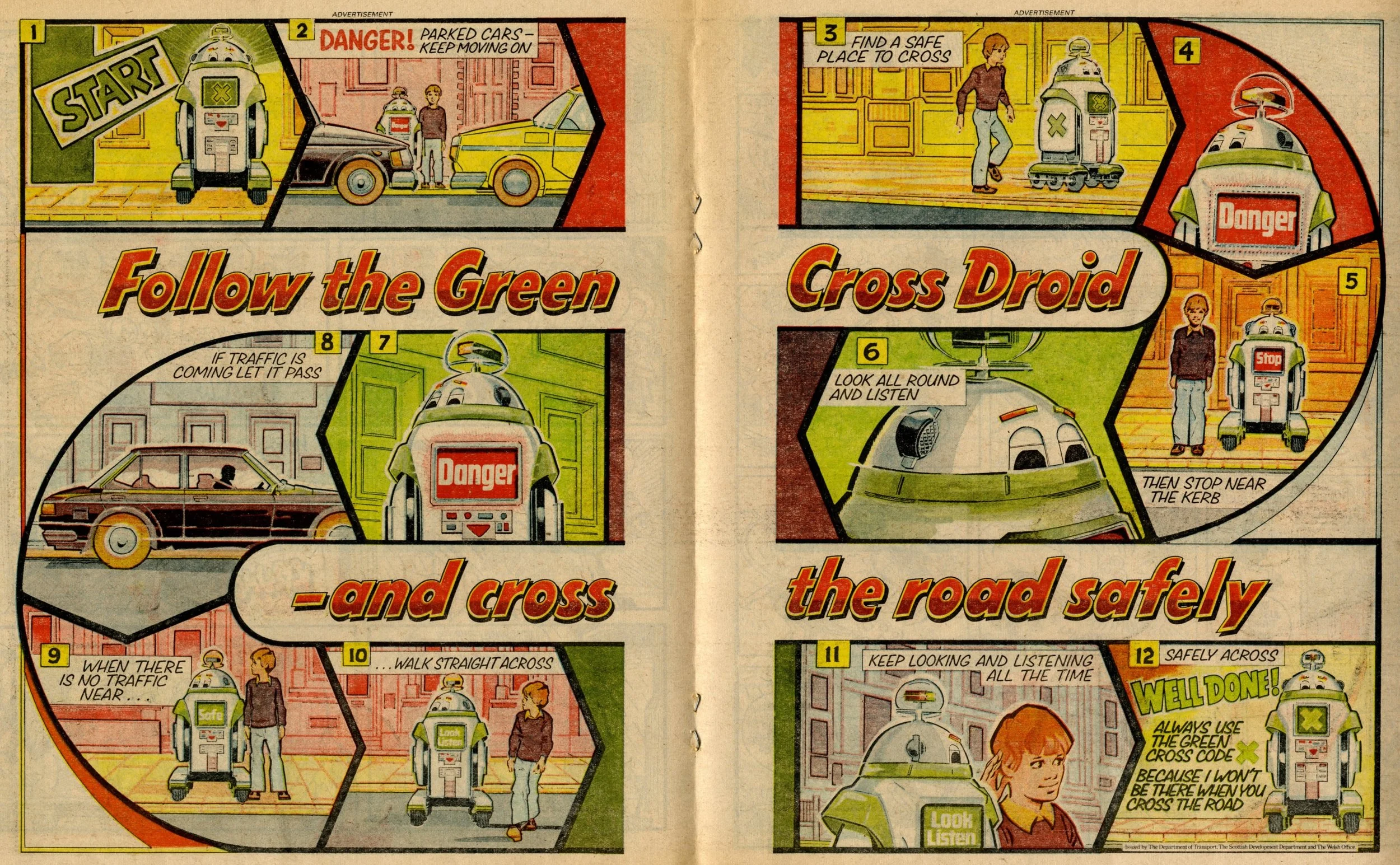 Chillingly delicious, but this Buster’s got a bigger bite than the promotional front cover. As children of the 70s and 80s we were blessed, were really were. This is a kids’ comic, of course, and a fairly run-of-the-mill issue, but as adults there’s still so much to enjoy some thirty-five years later. The astonishing talent of the artists, for a start. Reg Parlett, Mike Lacey, Martin Baxendale, Jack Edward Oliver, John Geering, Ian Knox, Ken Reid, Trevor Metcalfe, Rob Lee, Jim Crocker, Brian Walker, Norman Mansbridge, Dick Millington … Mike Western on The Leopard from Lime Street, and a gorgeous Green Cross Code ad from the wonderful Ron Smith … pure genius, every one of them. That they managed to produce such sterling quality of work week after week – some of them on three or four different strips across the IPC range – leaves me awestruck.